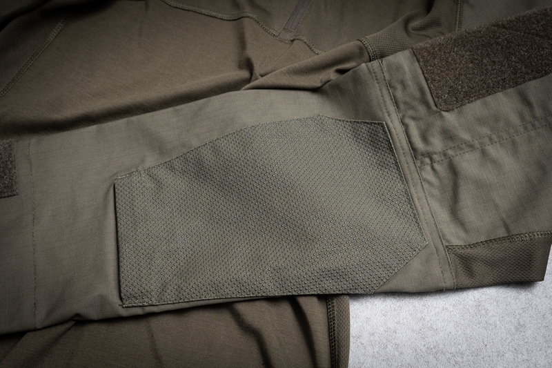 两臂有魔术贴、方便粘贴各种章。肘部可以插护肘。