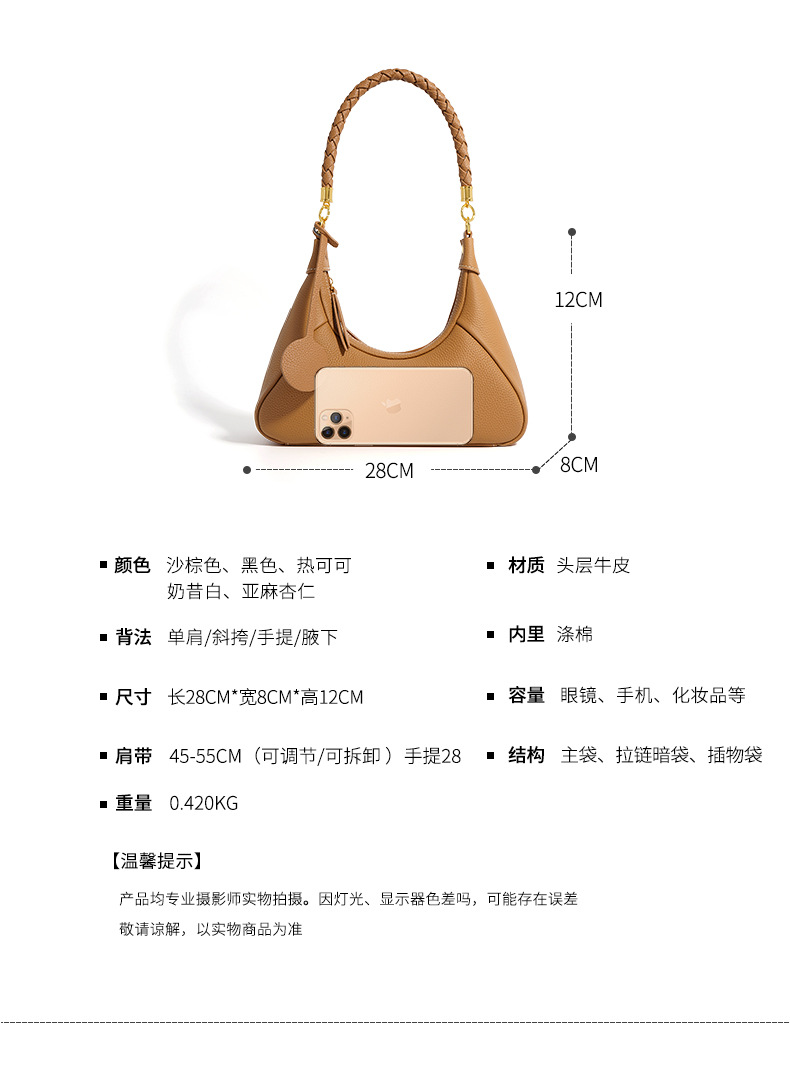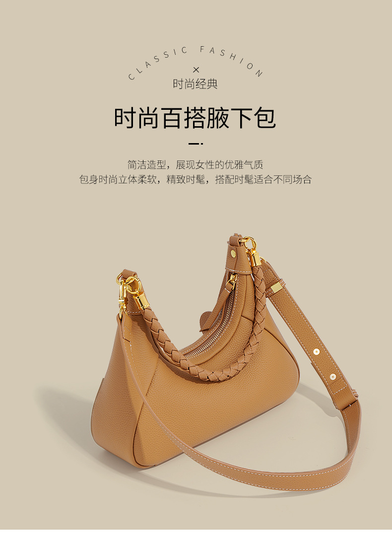 新款编织牛皮新月包2024春夏时尚休闲单肩腋下斜挎包手提手挽包