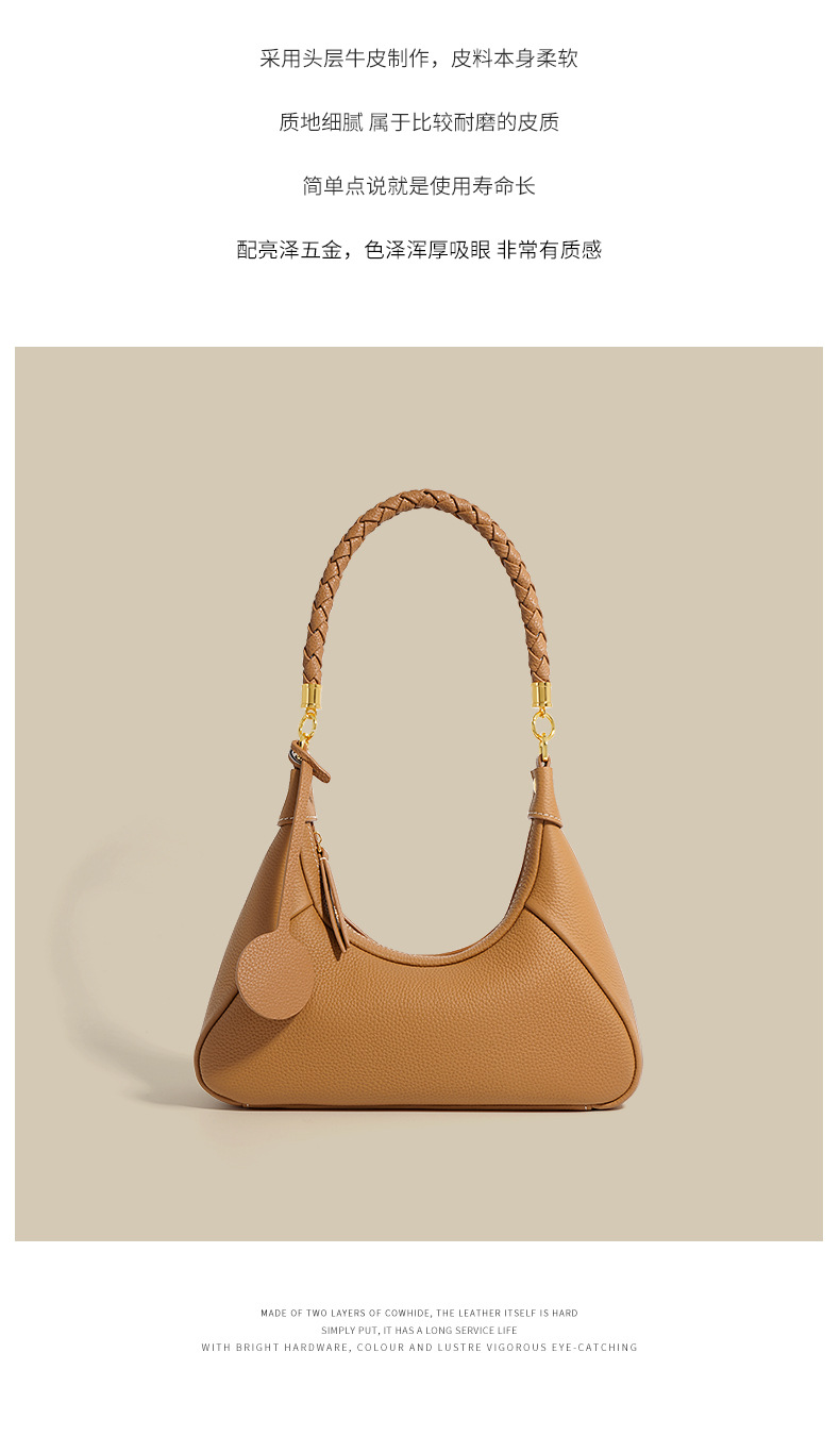 高级感牛皮斜挎包2024新款时尚百搭手提包女小众通勤单肩饺子包女