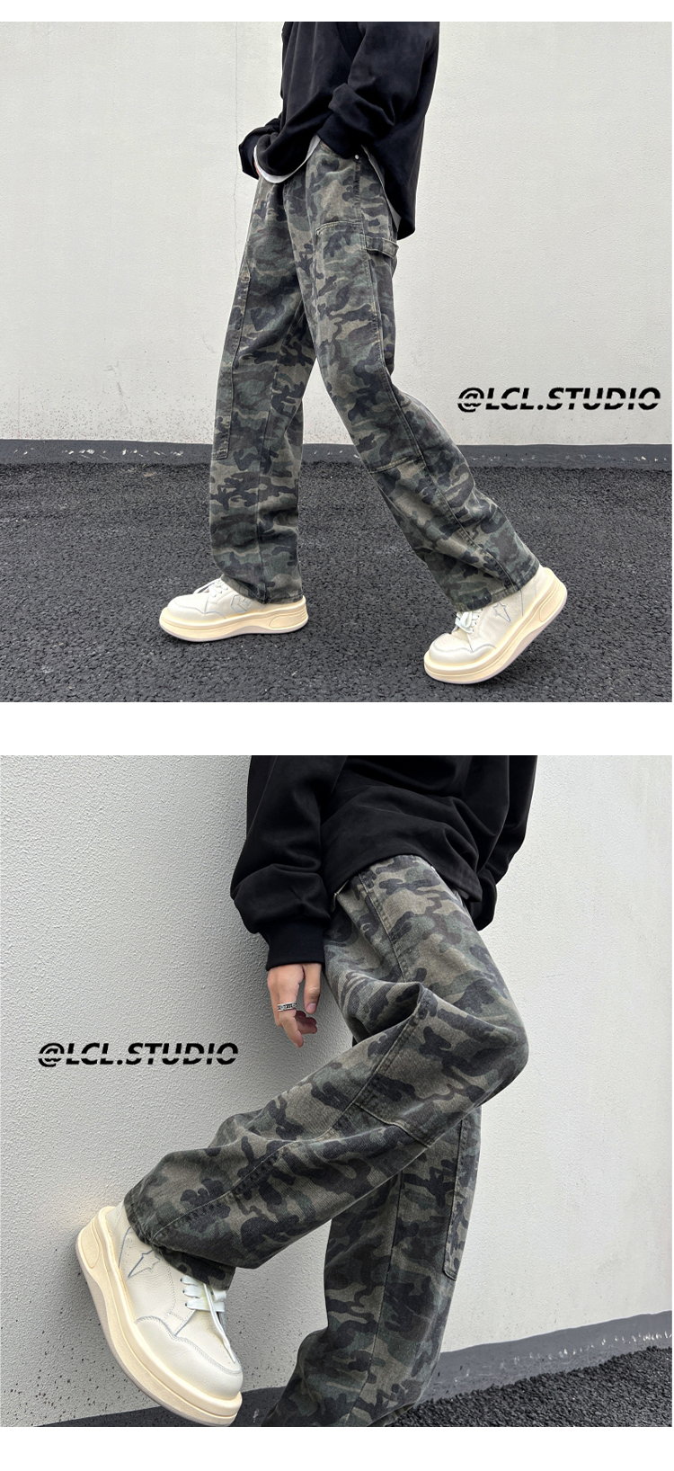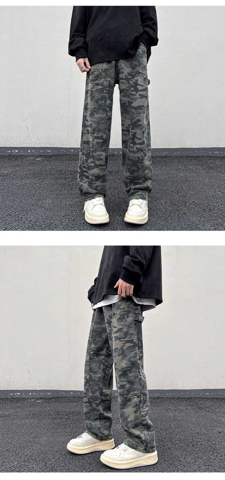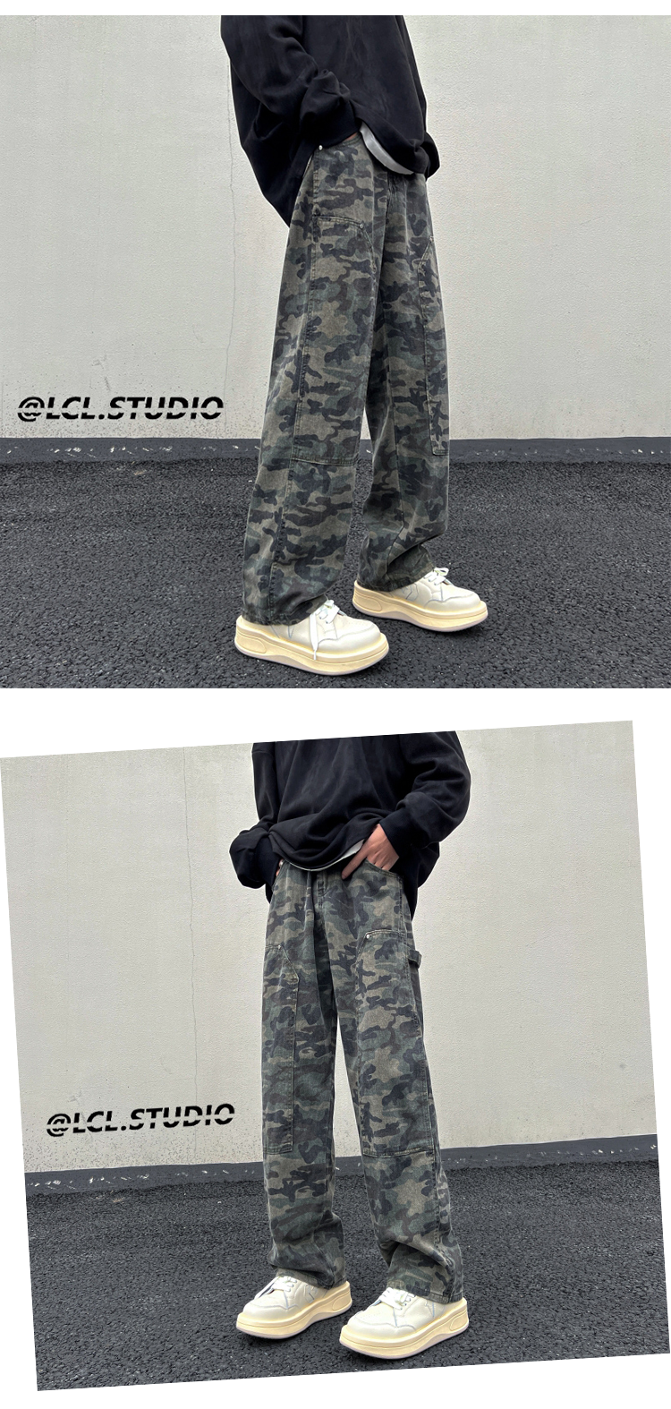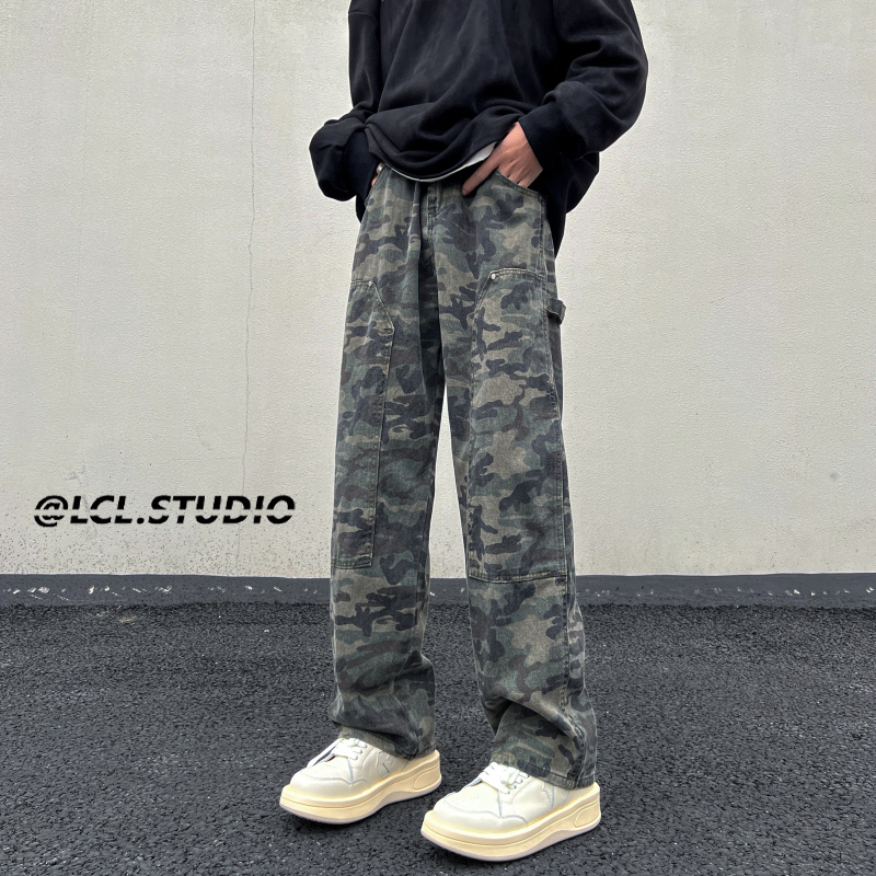 高街迷彩牛仔褲vibe風美式復古潮牌長褲男hiphopins潮炸街直筒褲