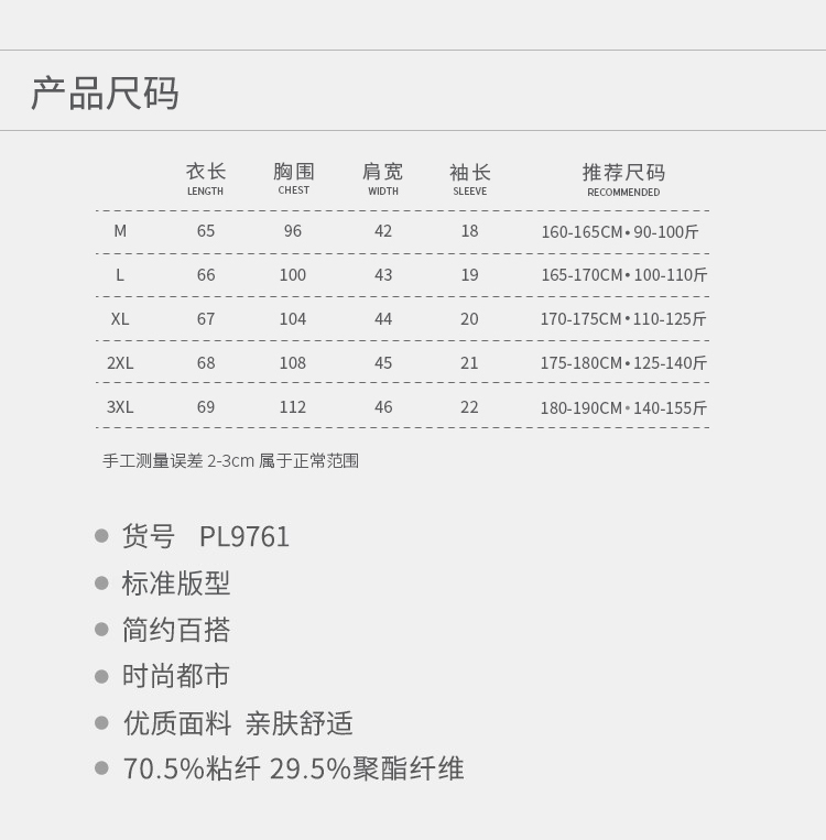 尺碼 M,L,XL,2XL,3XL,尺碼偏小,建議根據推薦尺碼下單