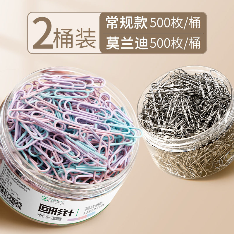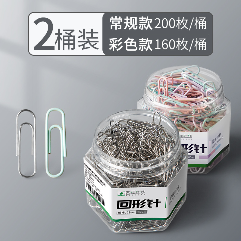 超大桶彩色回形针办公用品曲别针大号文件书签回型针收纳盒文