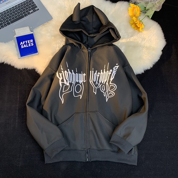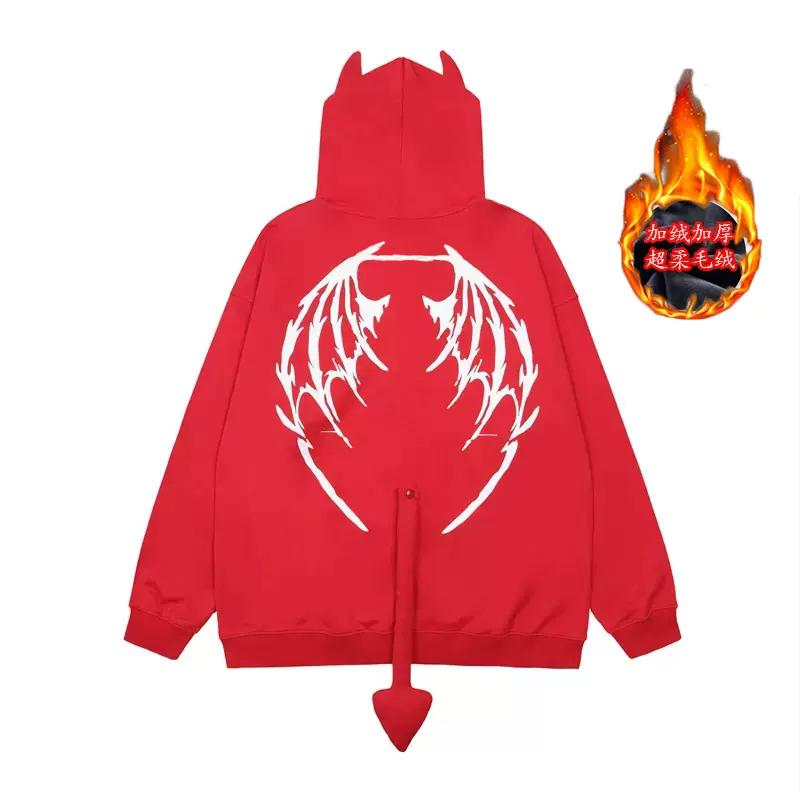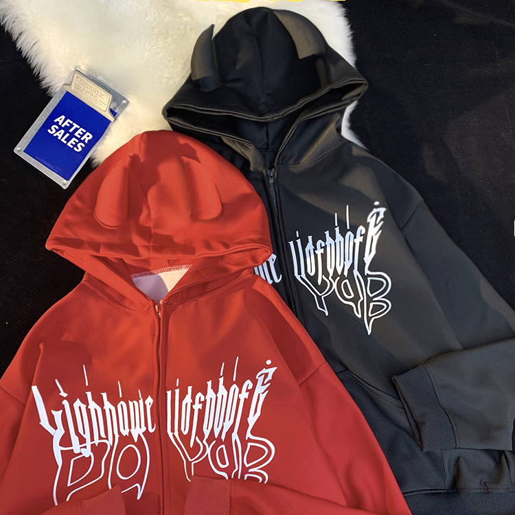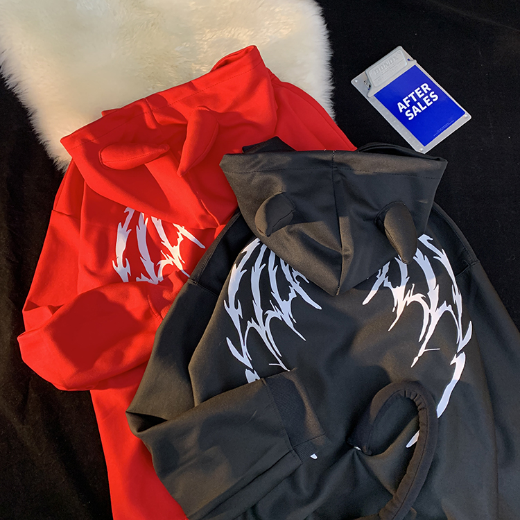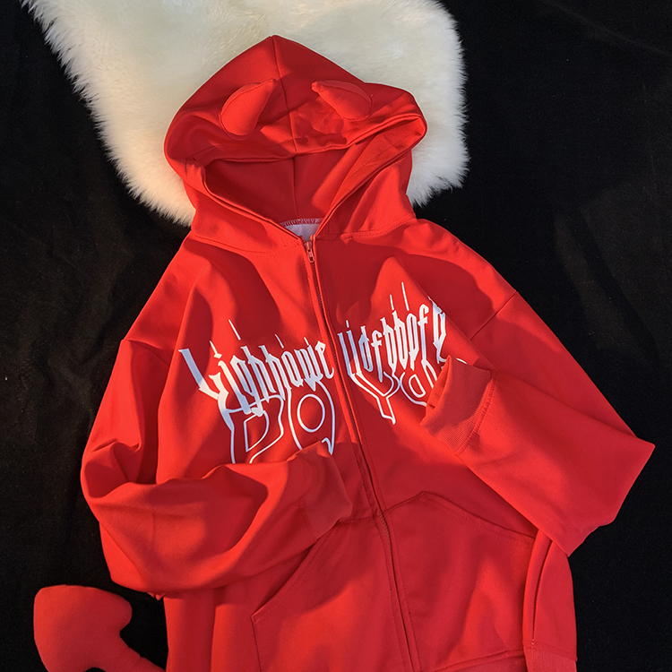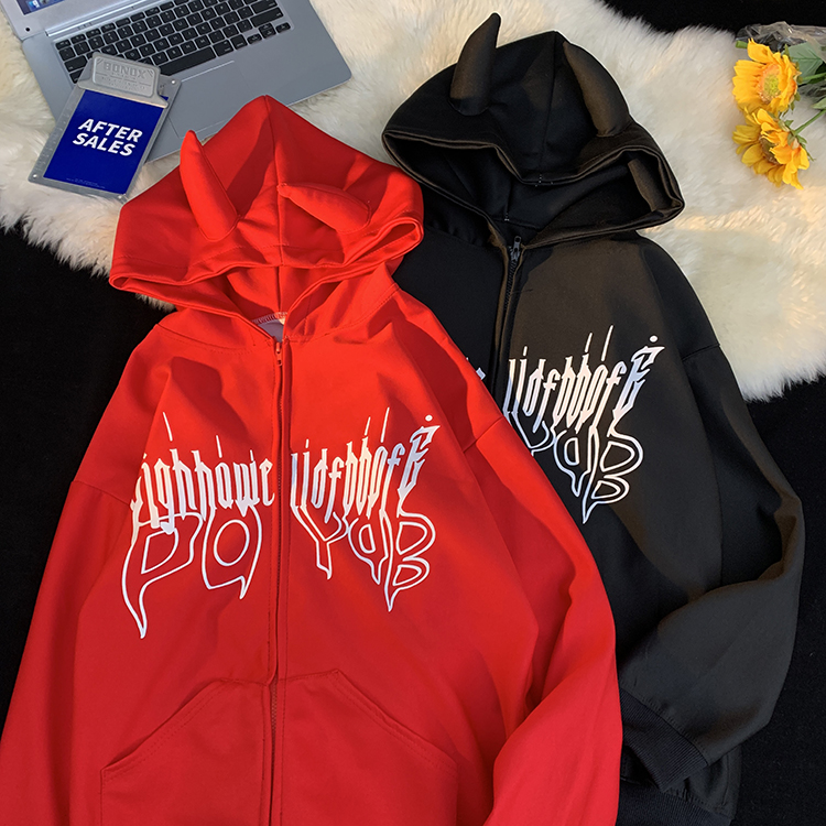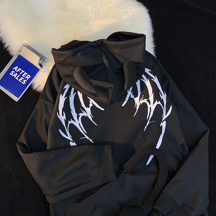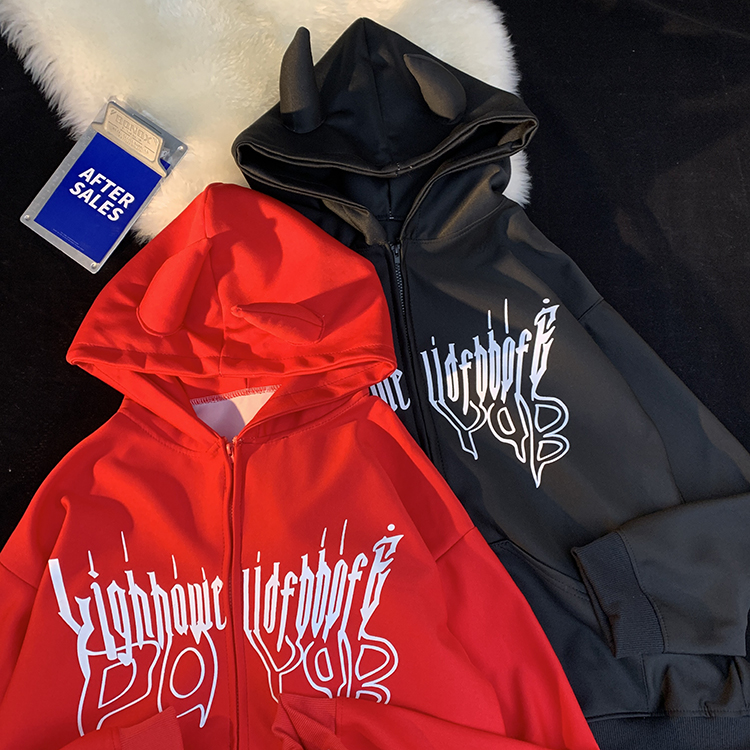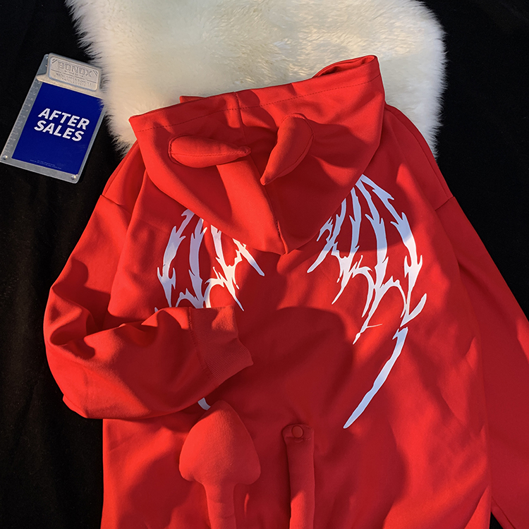 BOO原創高街百搭惡魔衛衣2023新款ins情侶裝甜酷帶角尾巴拉鍊外套