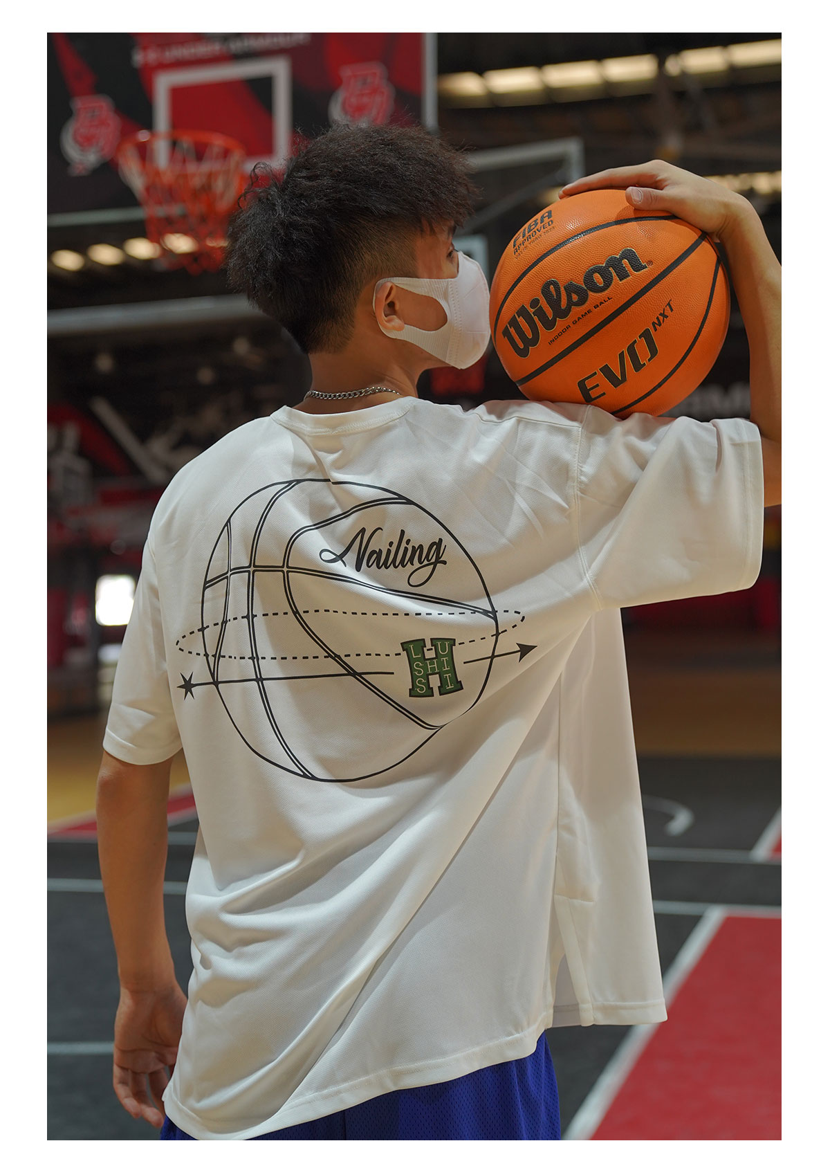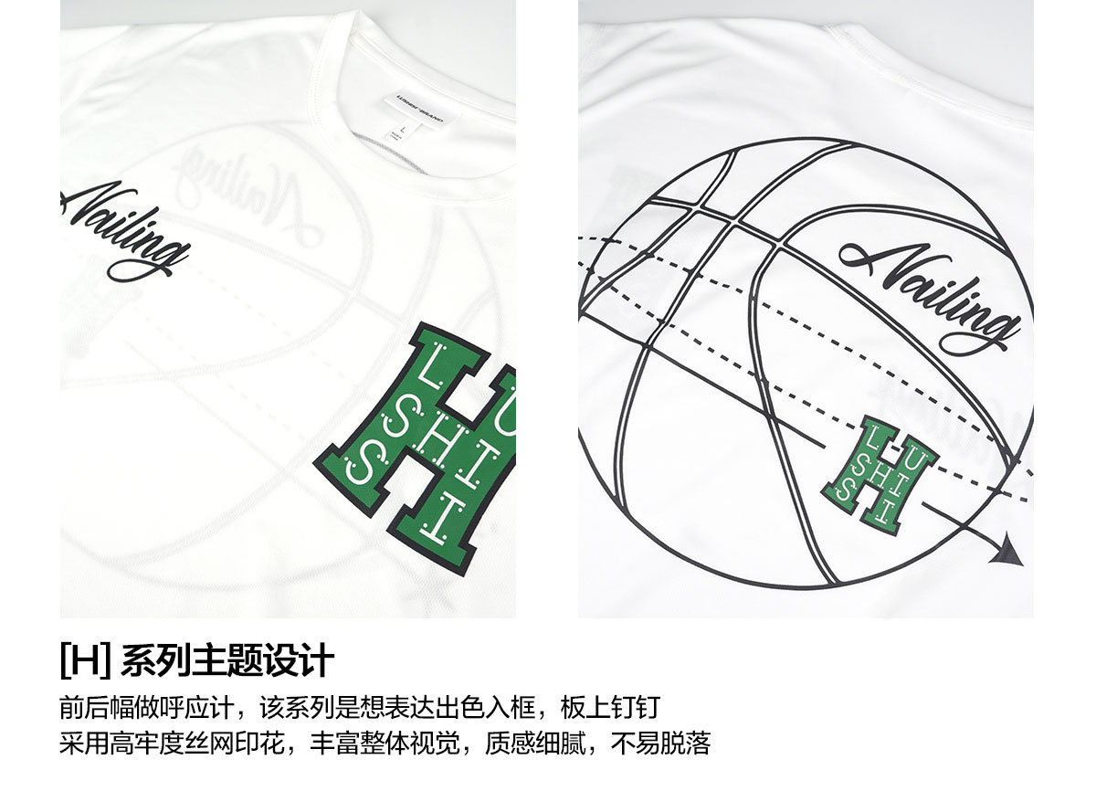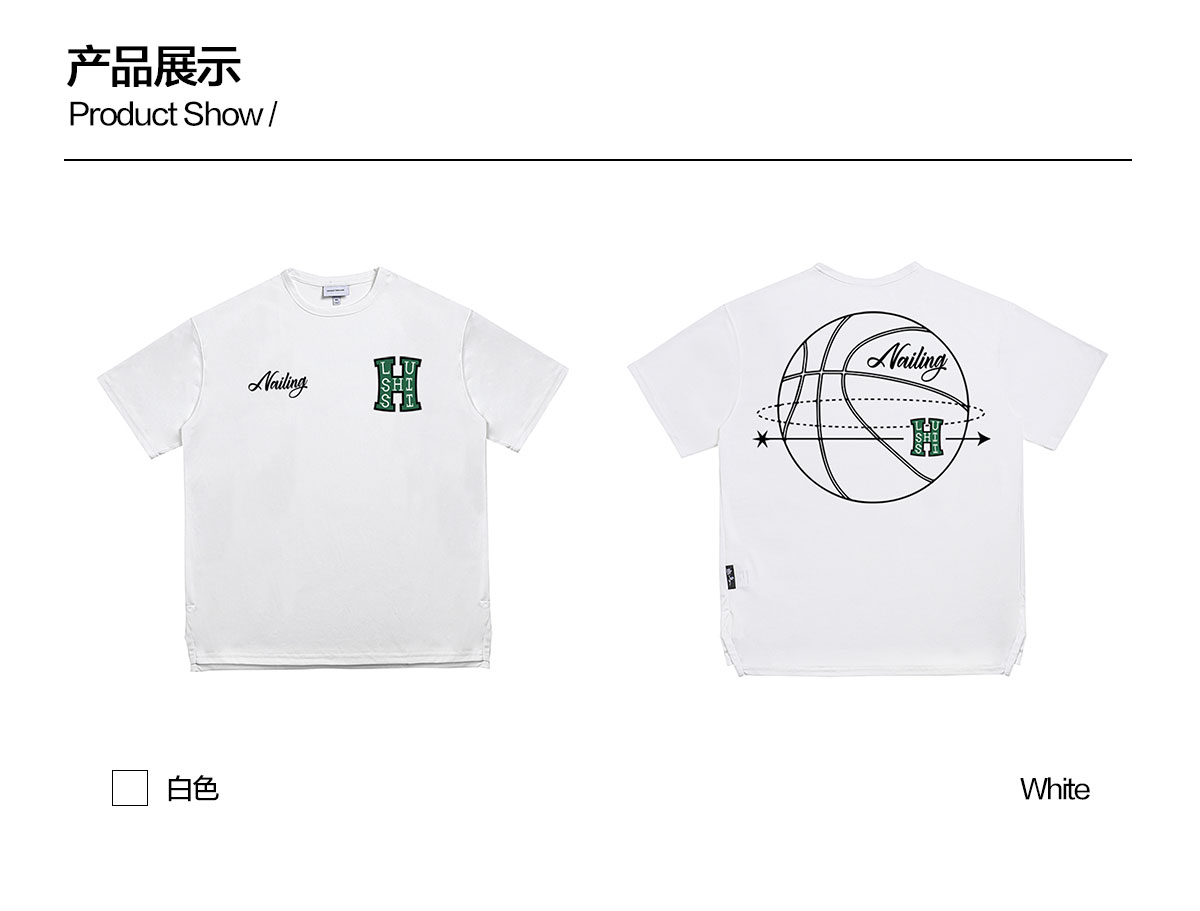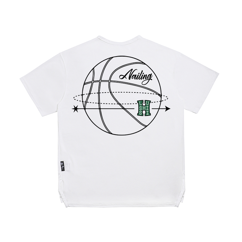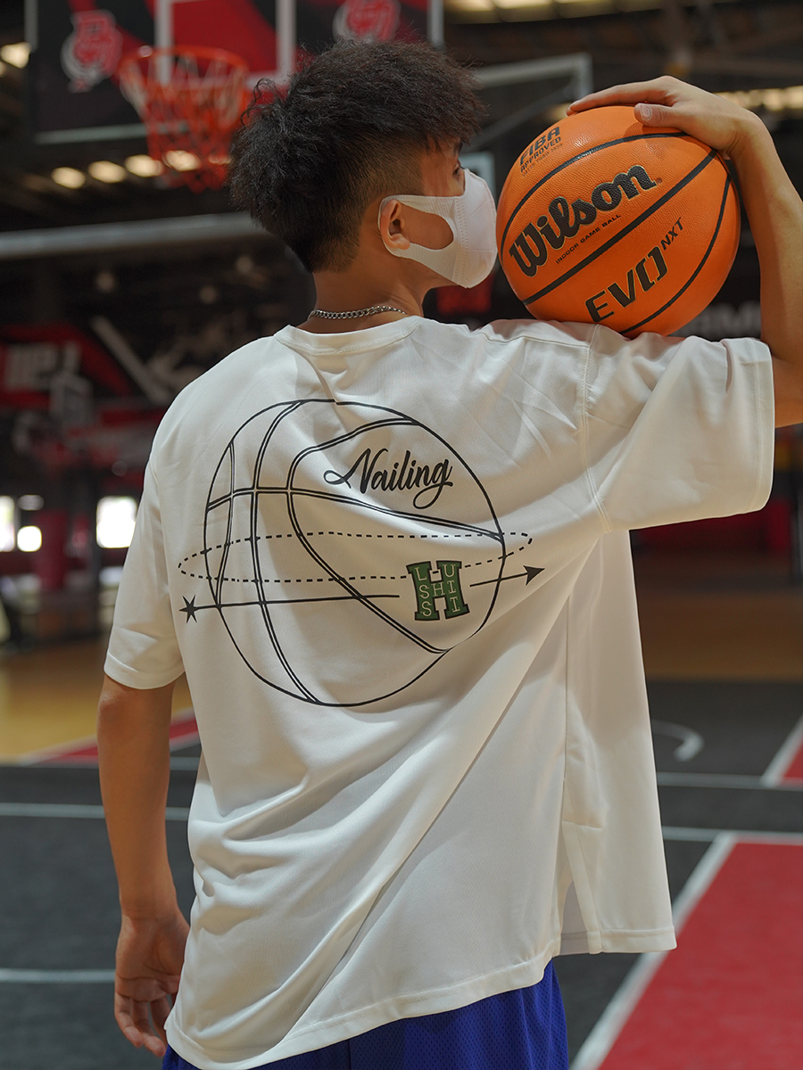 LUSHISI白色背面地球[H系列]美式籃球短袖投籃服速乾吸汗T恤街頭