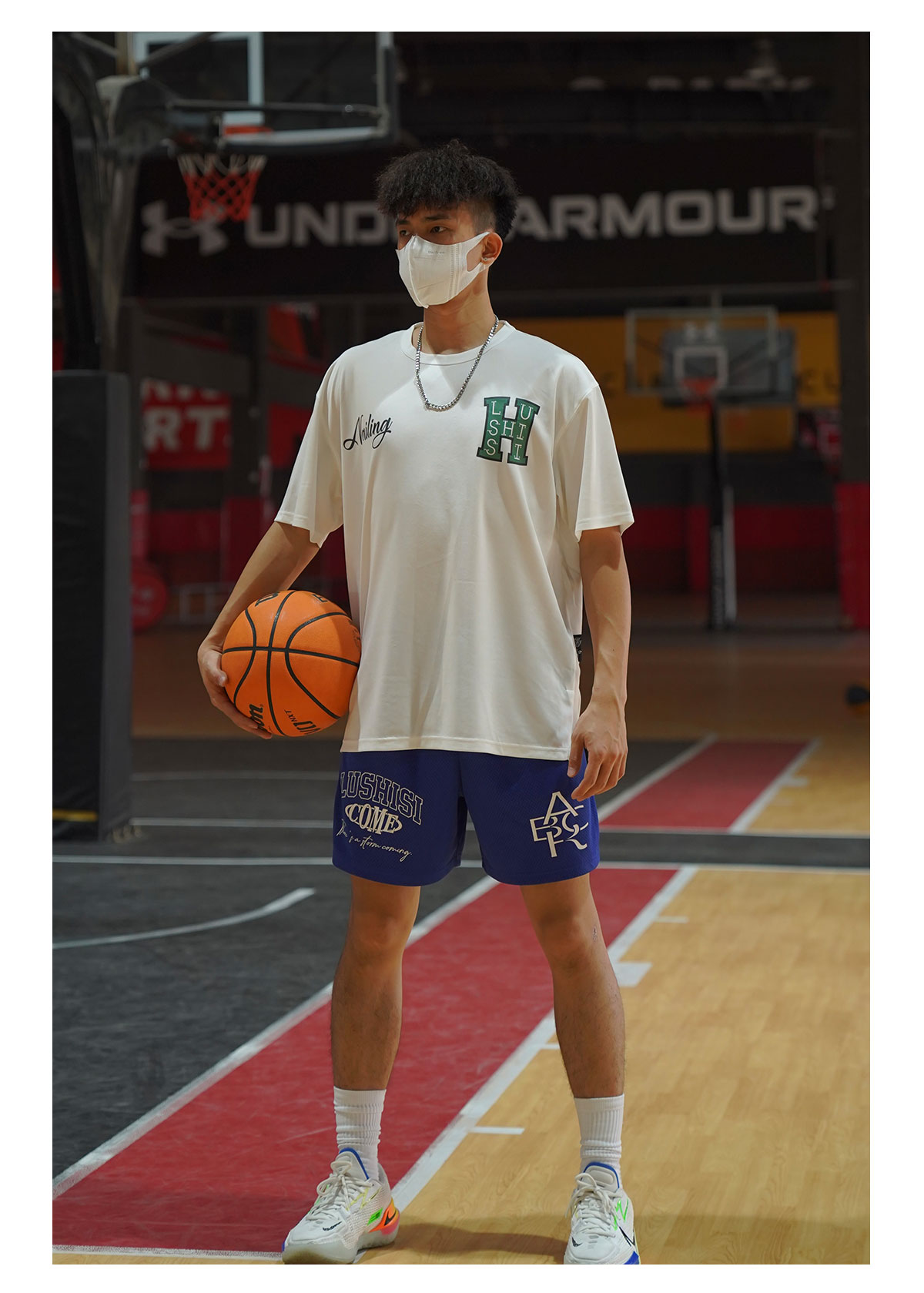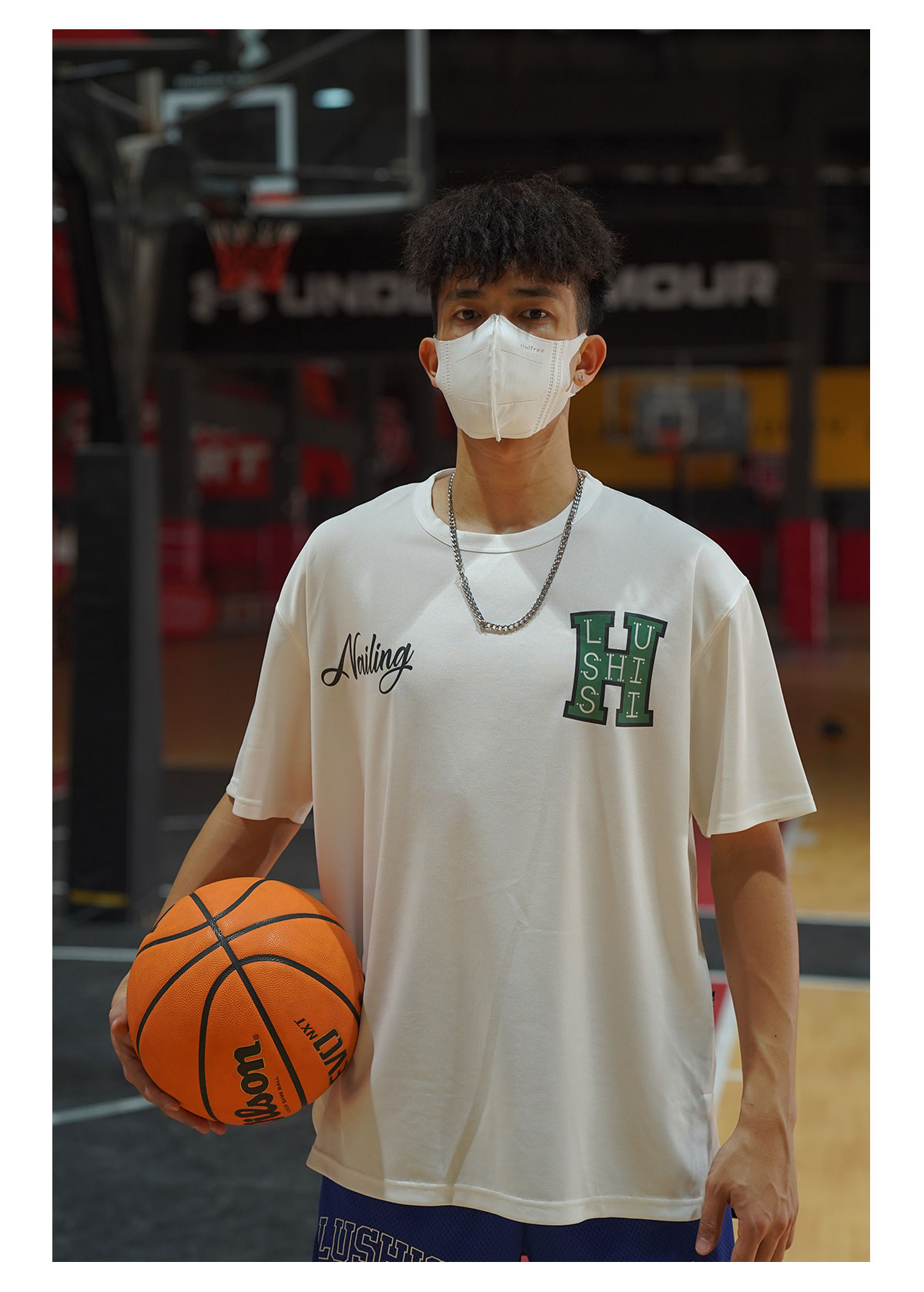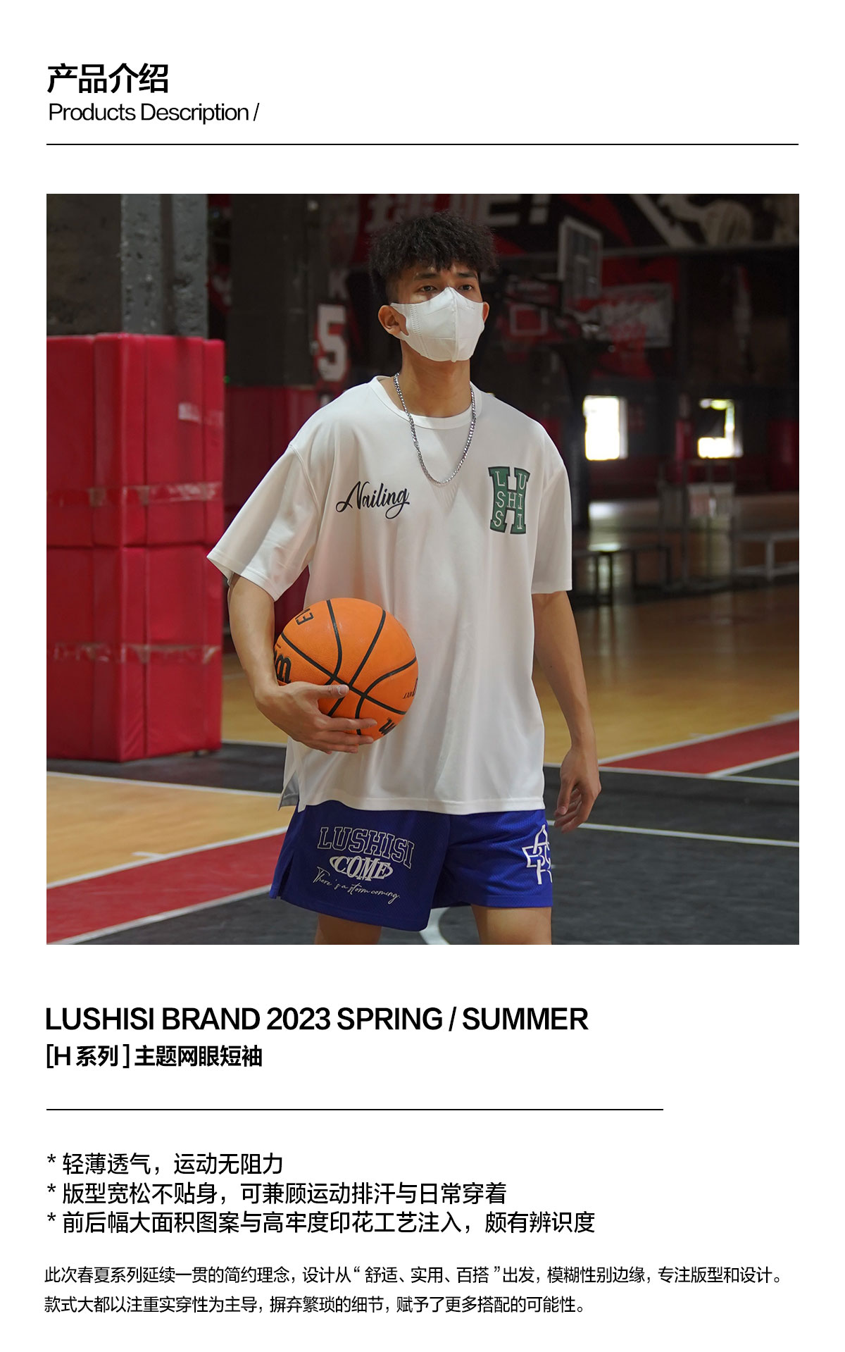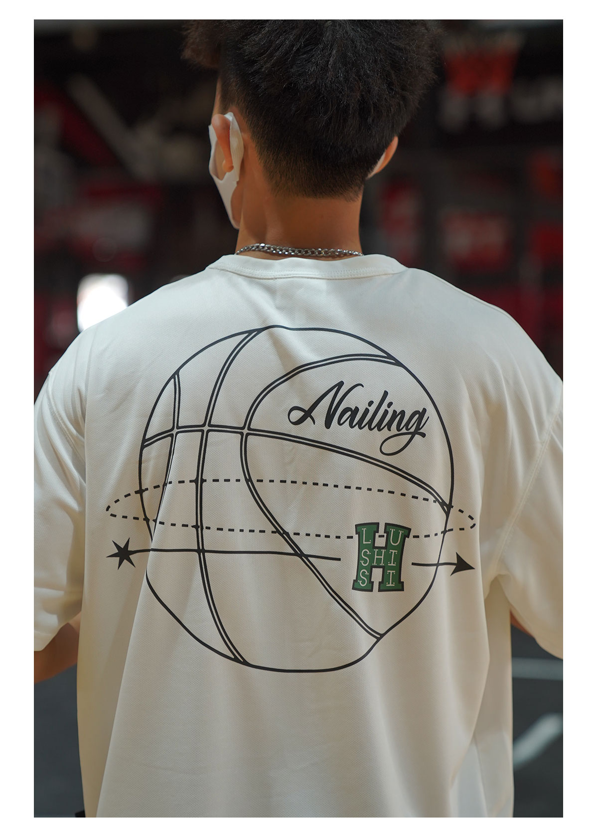LUSHISI白色背面地球[H系列]美式籃球短袖投籃服速乾吸汗T恤街頭