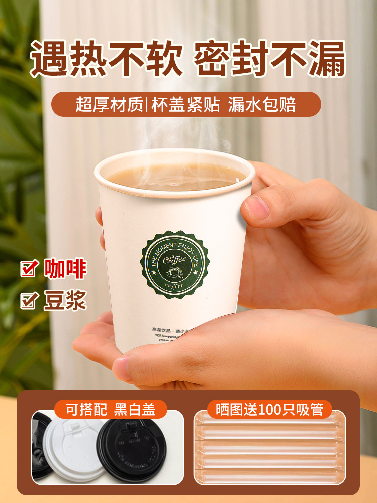 纸杯一次性咖啡杯奶茶豆浆纸杯加厚带盖外卖冷热饮杯外带家用