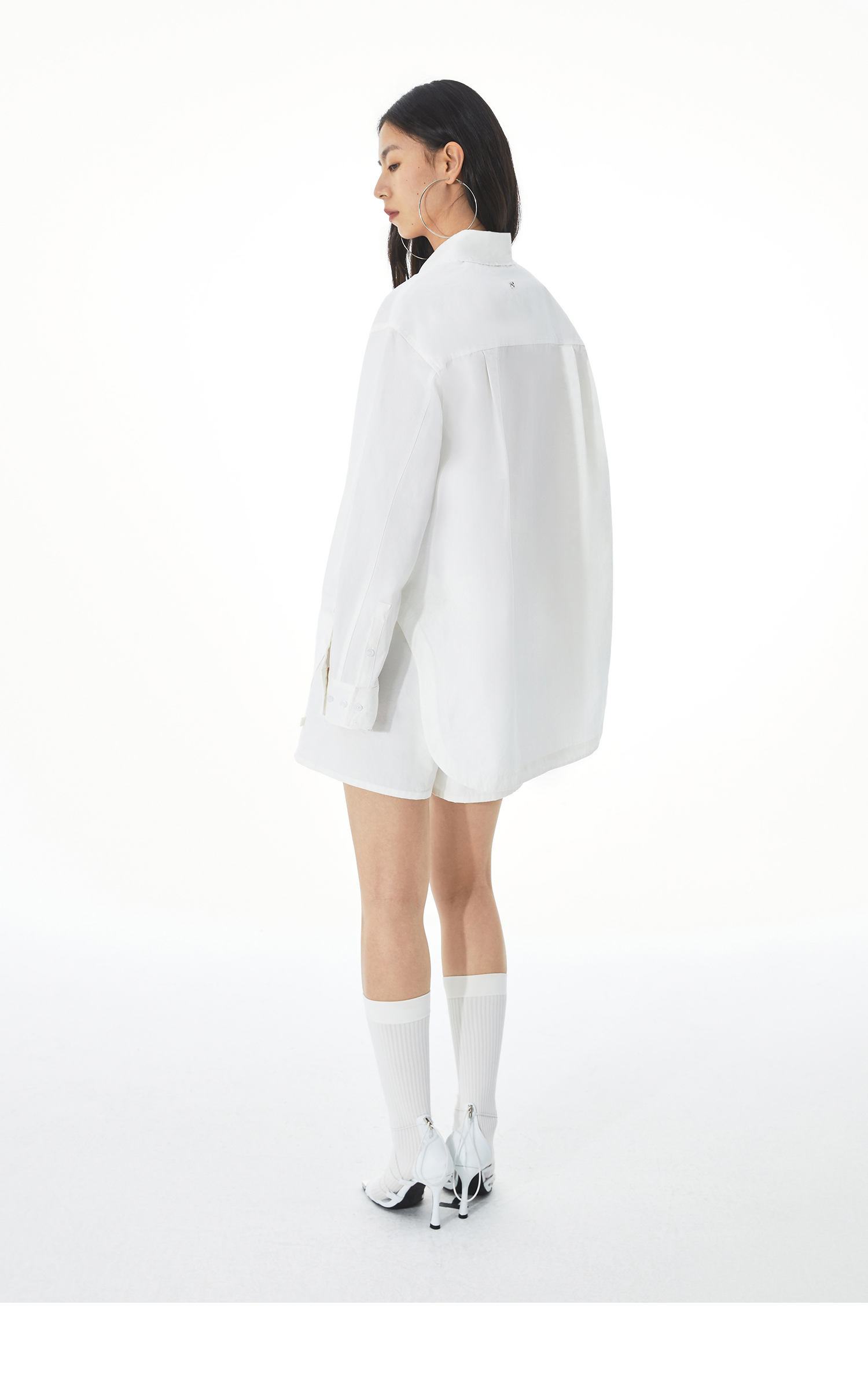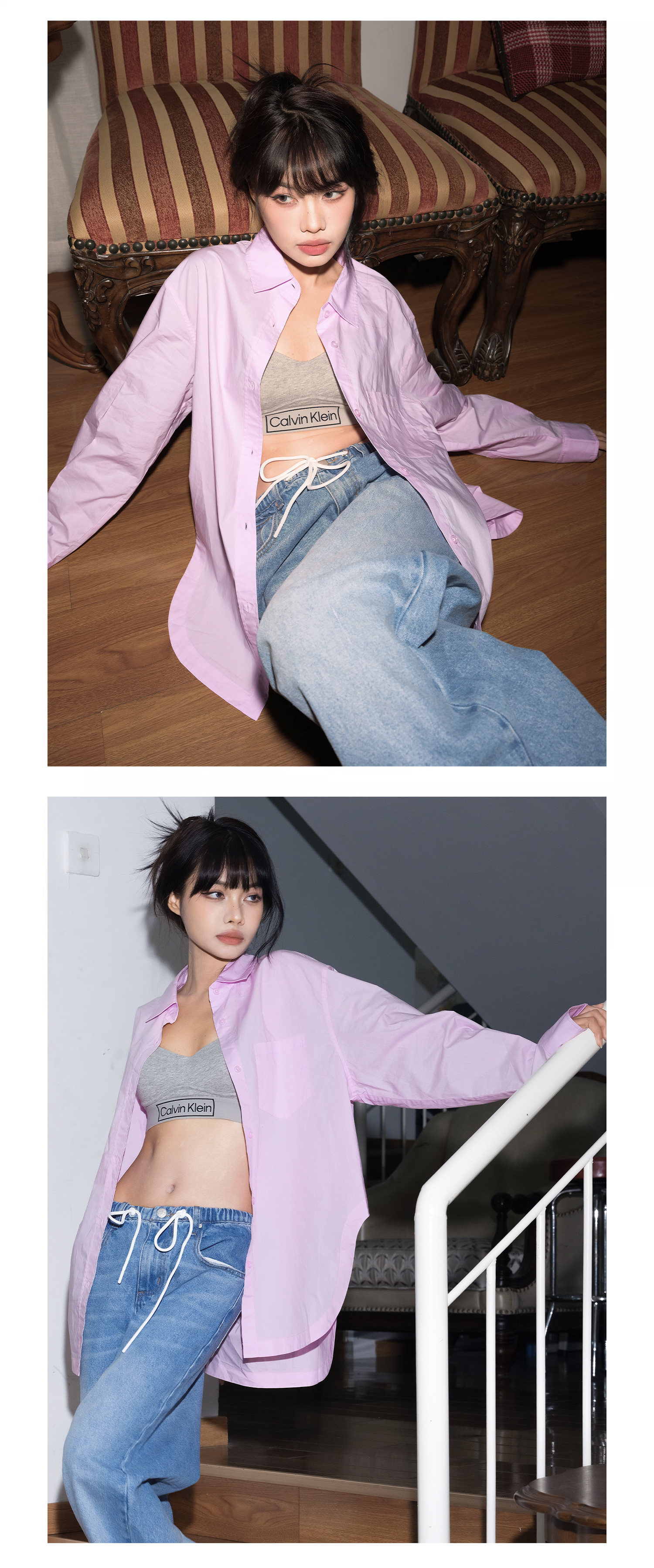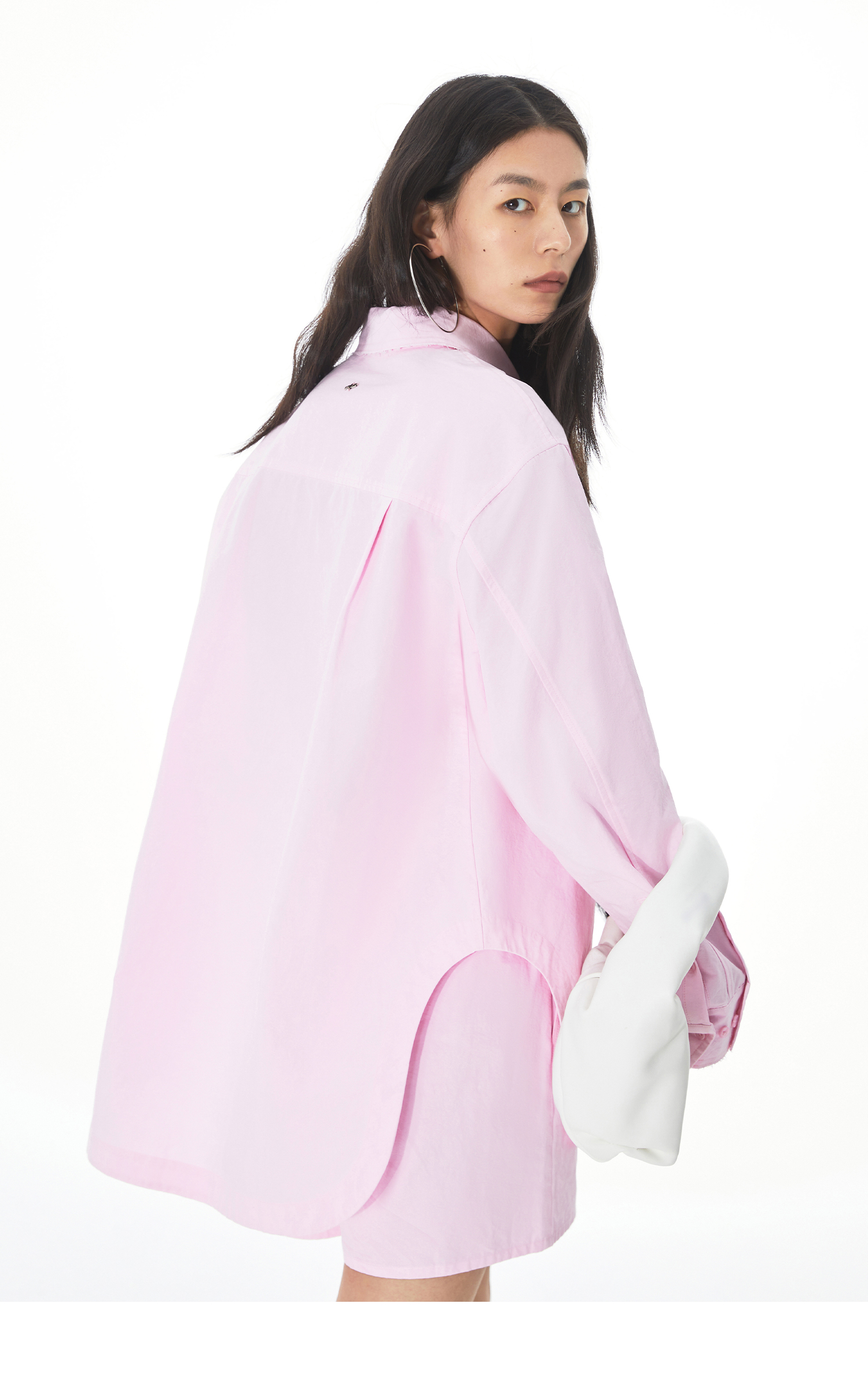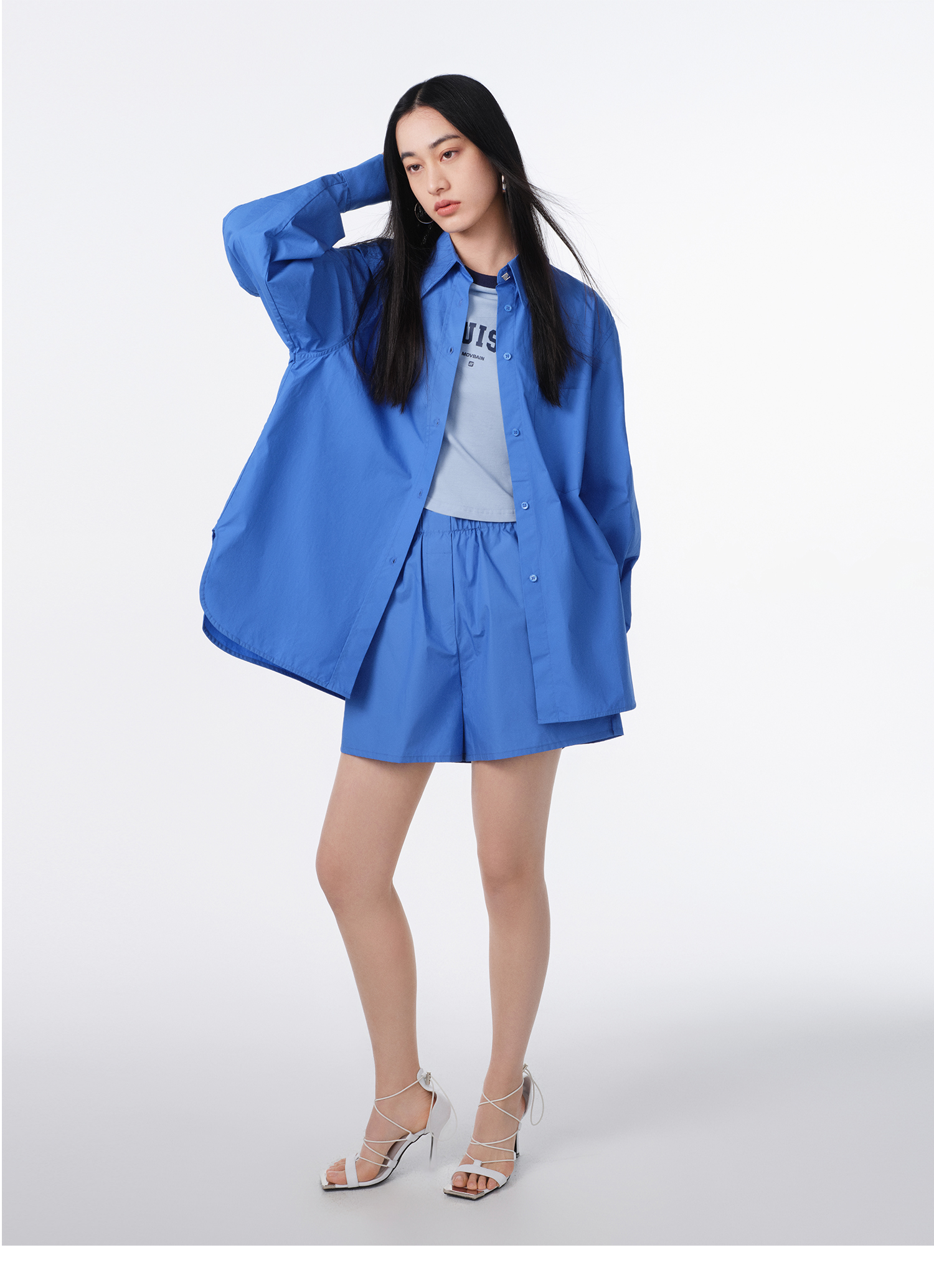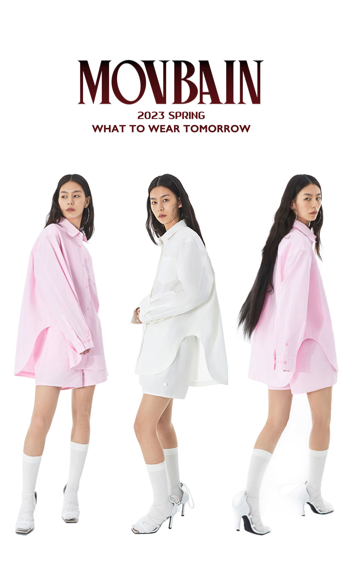 MOVBAIN2023春季新品拼縫純棉粉色襯衫套裝 寬鬆休閒短褲白色上衣