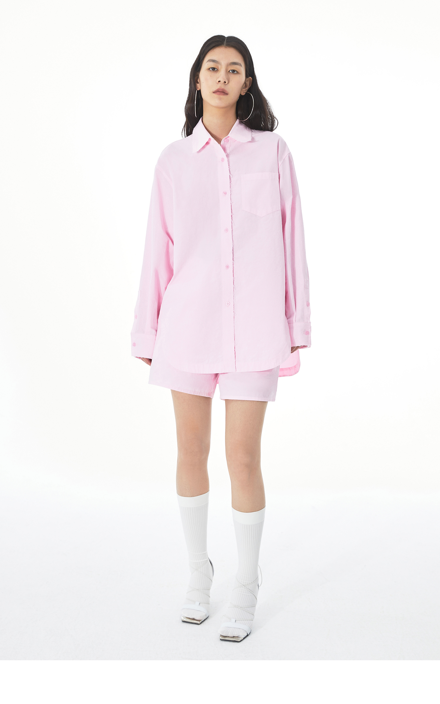 顏色分類 糖果粉襯衫 糖果粉短褲 象牙白襯衫 象牙白短褲 夏季輕薄款 糖果粉襯衫