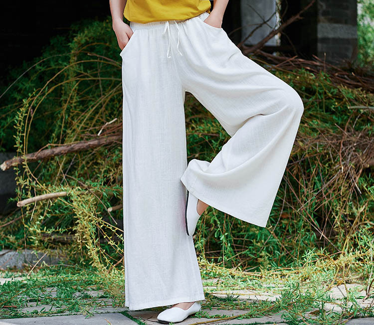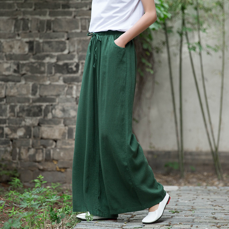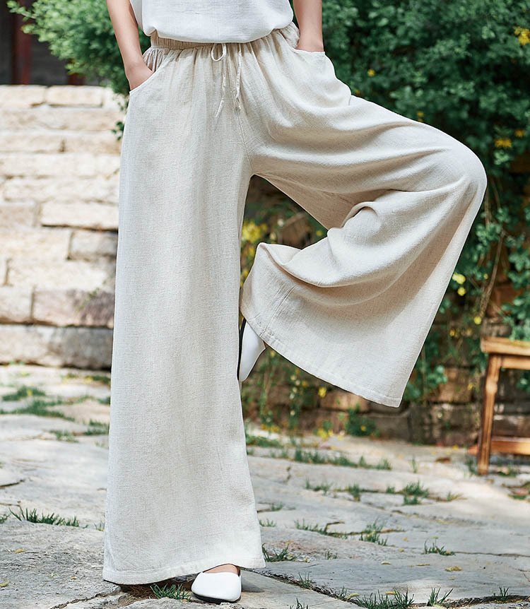 2023春夏薄款棉麻寬鬆新款輕國風復古亞麻禪意女裝闊腿長褲子穿搭