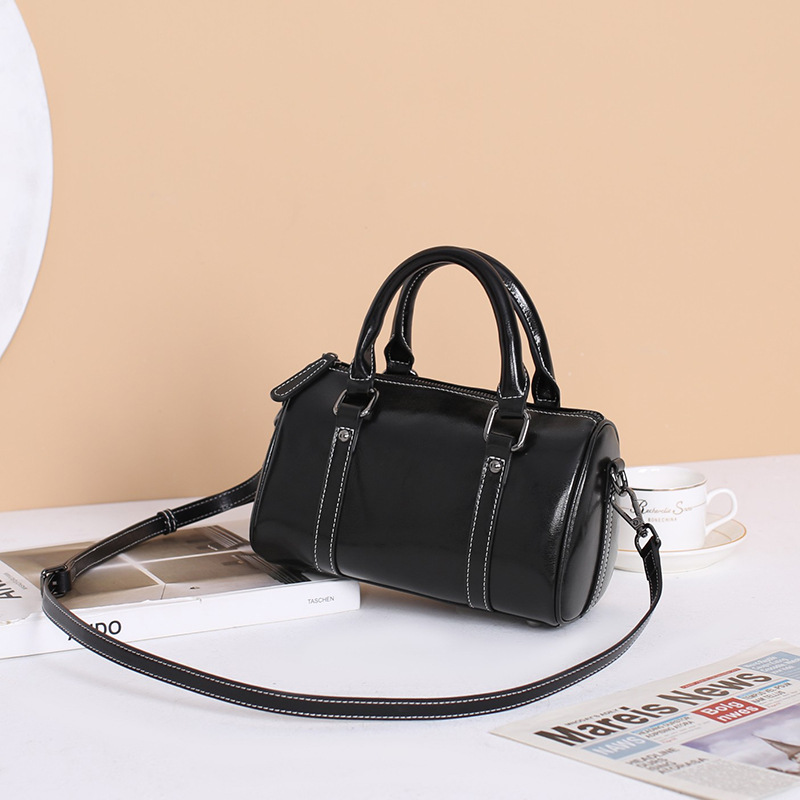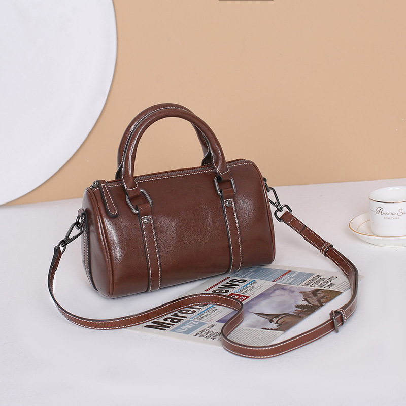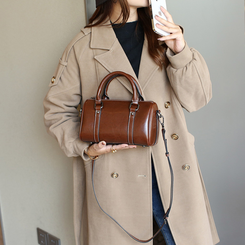 真皮手提包女2024新款潮油蜡牛皮斜挎包女包经典质感波士顿枕头包