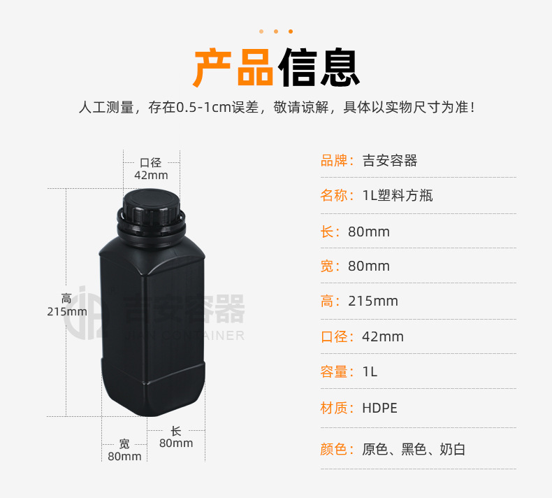 规格 1L塑料方瓶 原色,1L塑料方瓶 奶白色,1L塑料方瓶 黑色