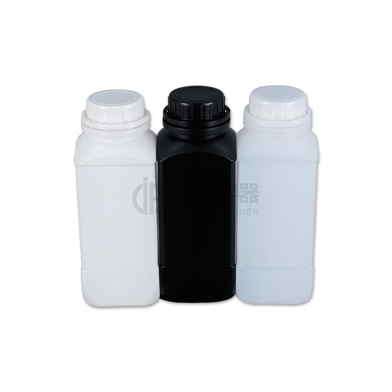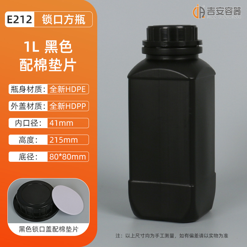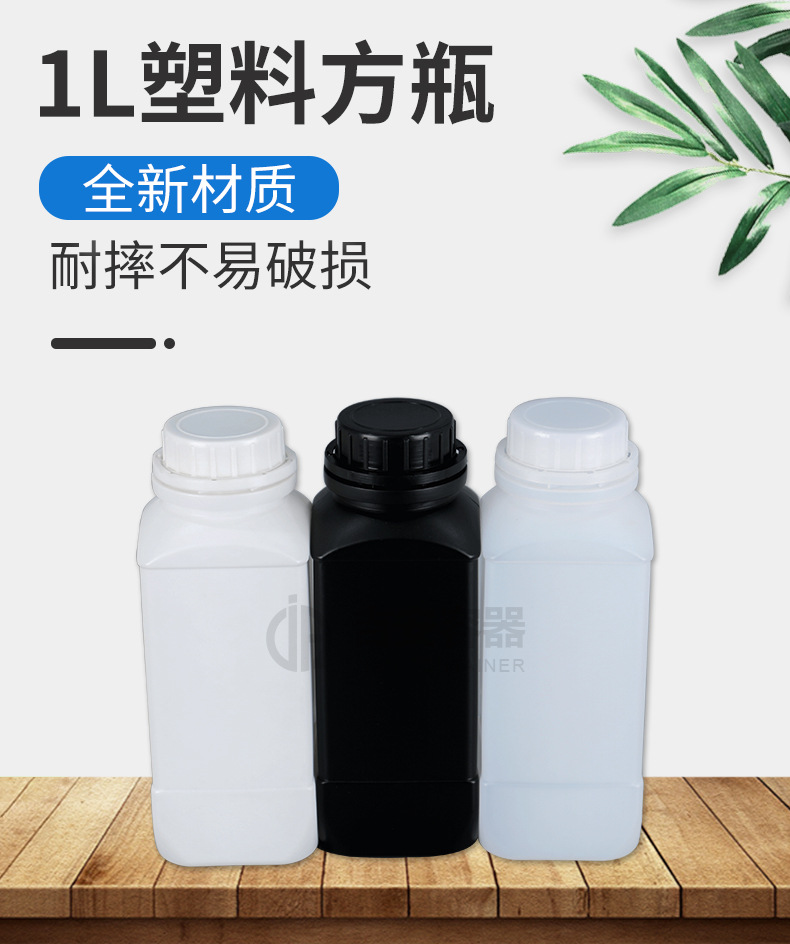 厂家直供1L方形塑料瓶1000毫升化工液体瓶中口试剂瓶黑白色防盗盖