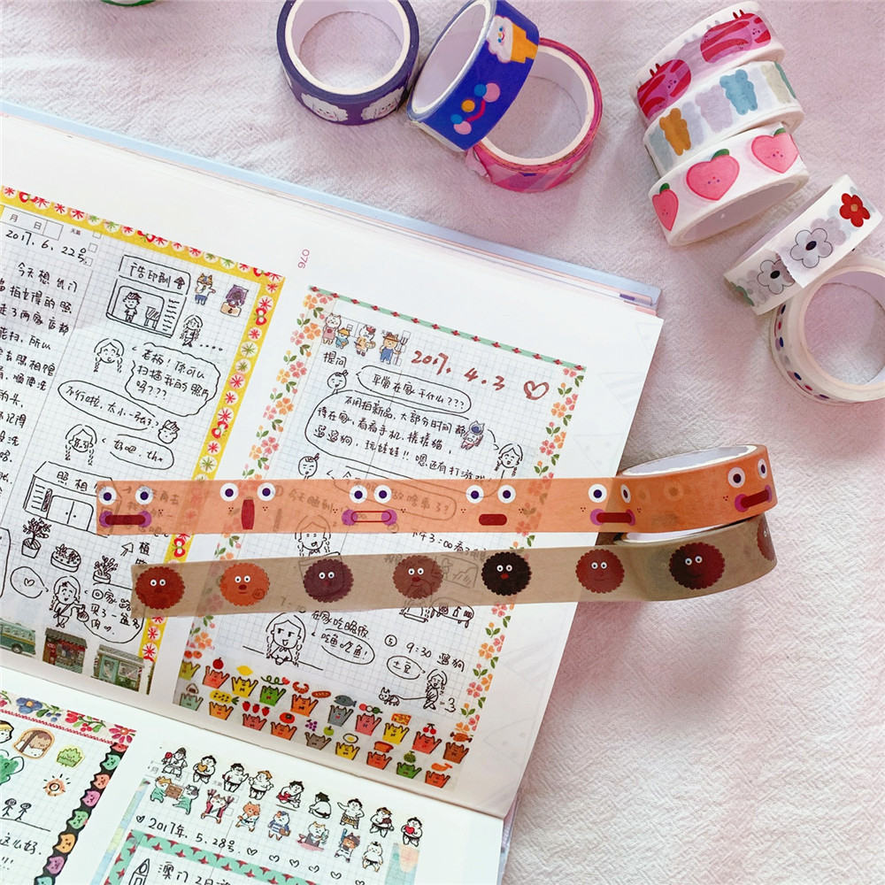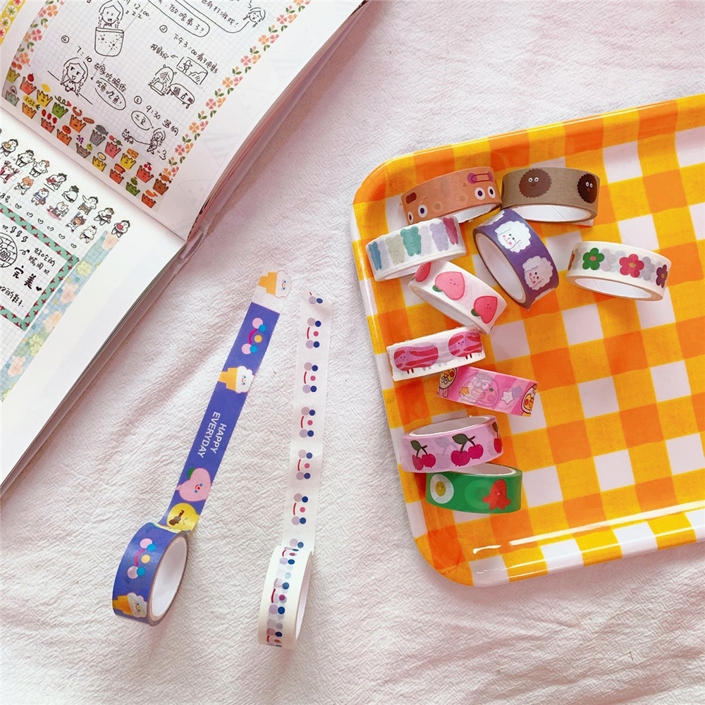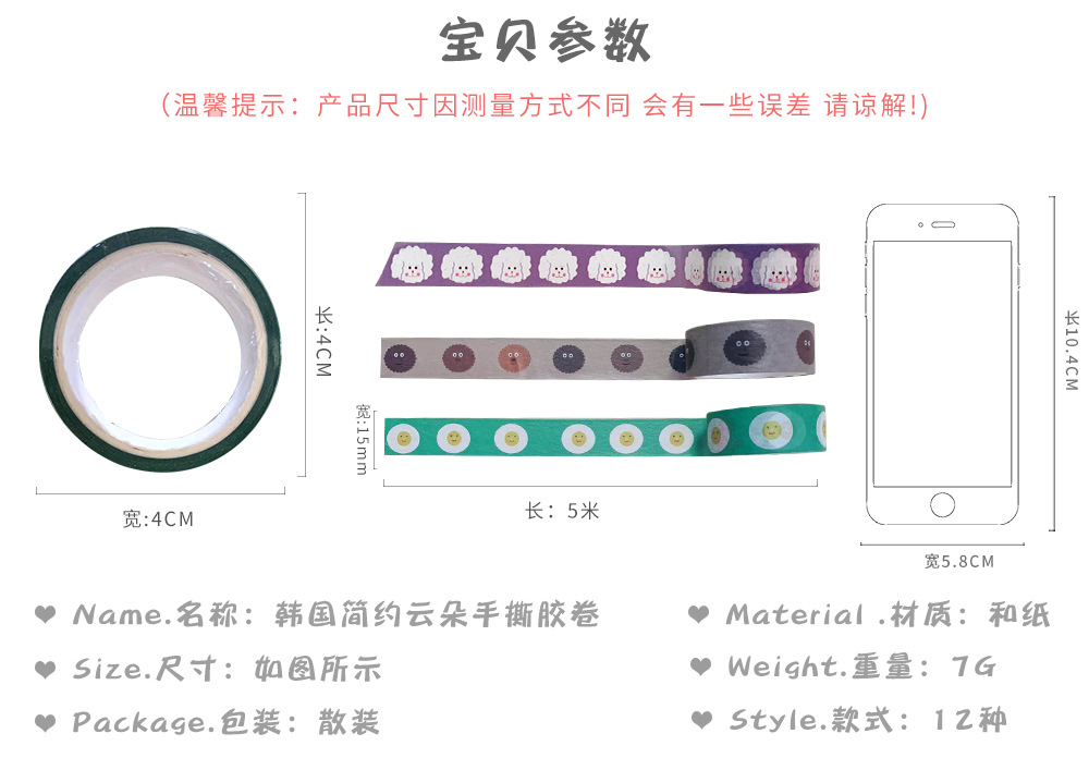 ins韩国简约云朵笑脸和纸胶带可爱小熊爱心花朵手撕贴纸胶纸胶卷