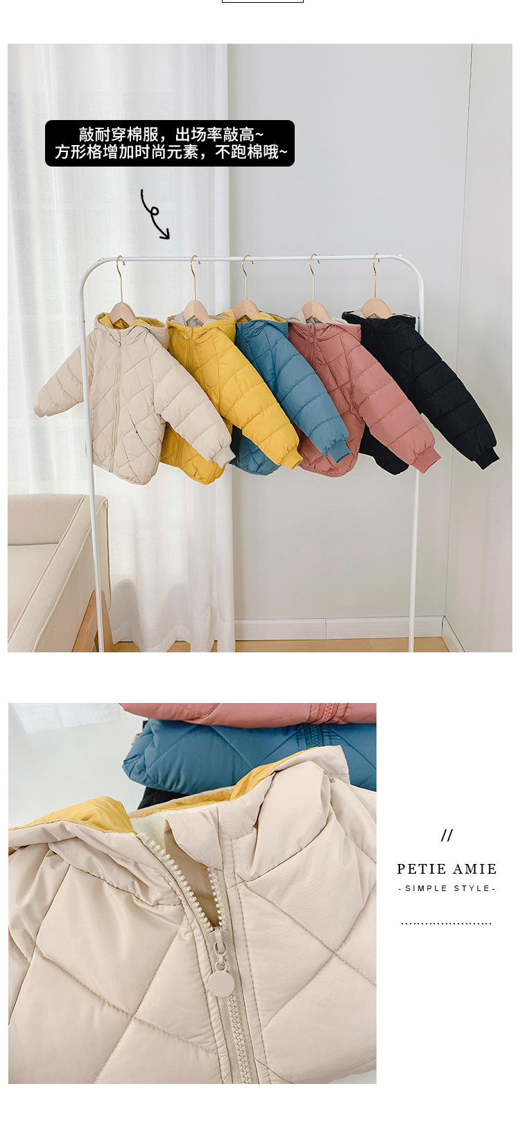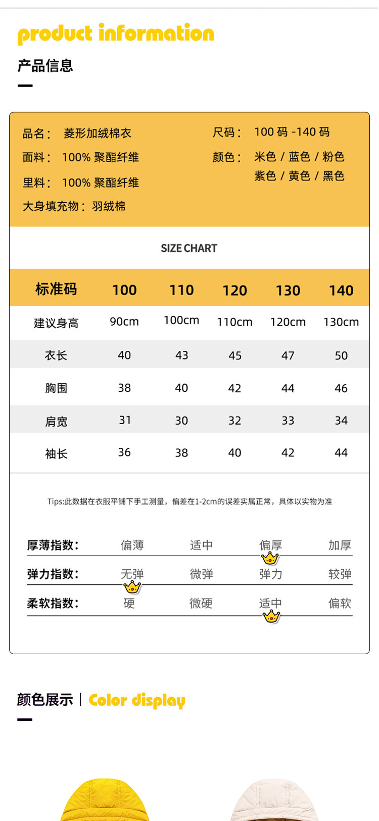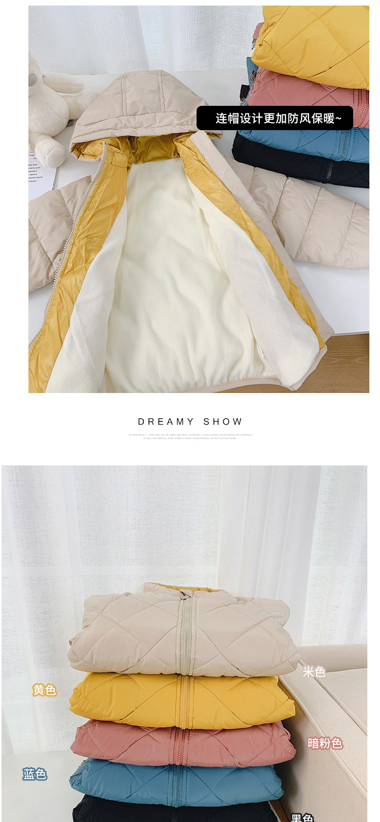 颜色 菱形加绒棉衣-米色,菱形加绒棉衣-黄色,菱形加绒棉衣-粉色,菱形加绒棉衣-黑色,菱形加绒棉衣-蓝色