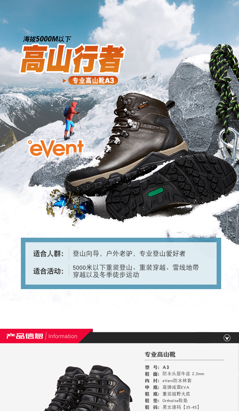HOTPOTATO/戶外特工 高海拔登山靴攀冰鞋EVENT防水保暖高山靴A3