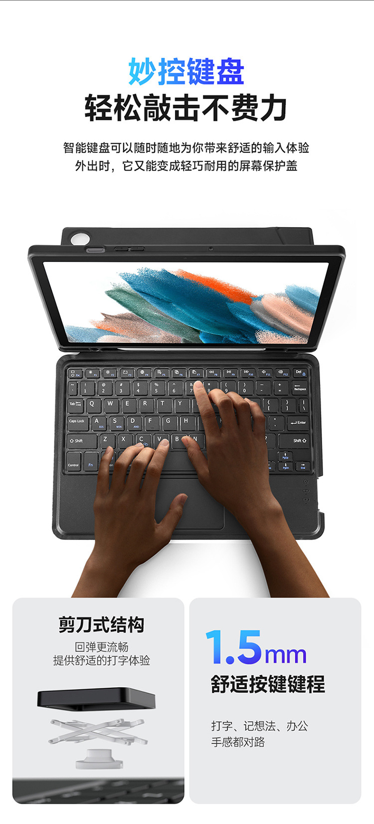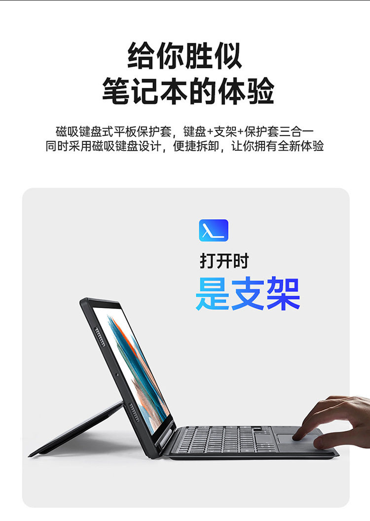 Keyboard适用三星TabS6lite蓝牙键盘 A8平板磁吸触控键盘皮套跨境