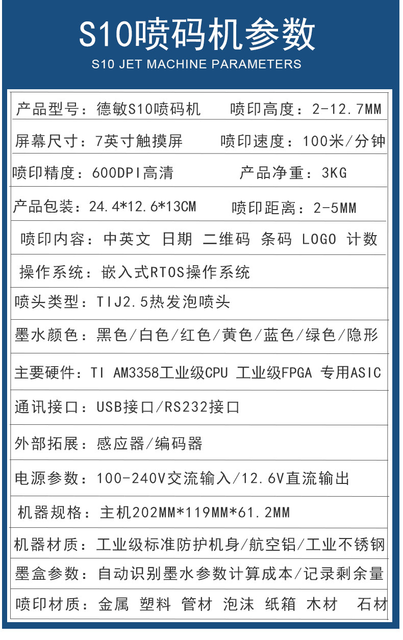 规格 S10在线机,S10在线机+输送机