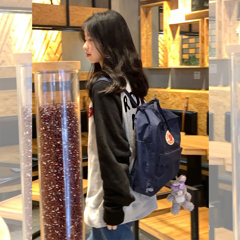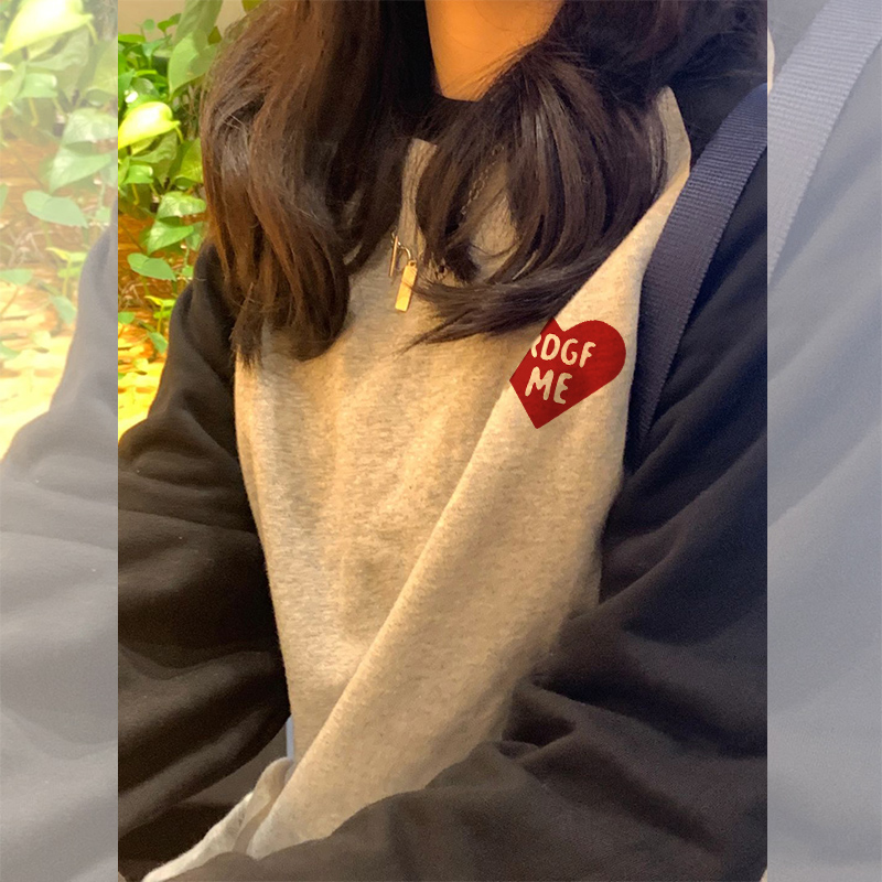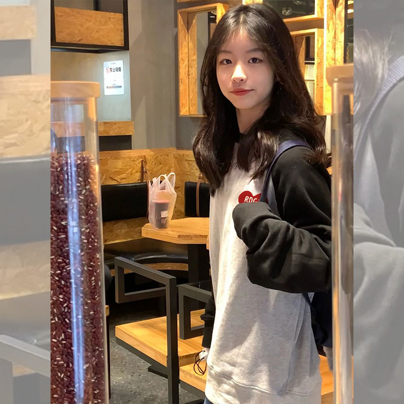 插肩袖衛衣女春秋2023新款復古黑灰色圓領正肩外套設計感上衣ins
