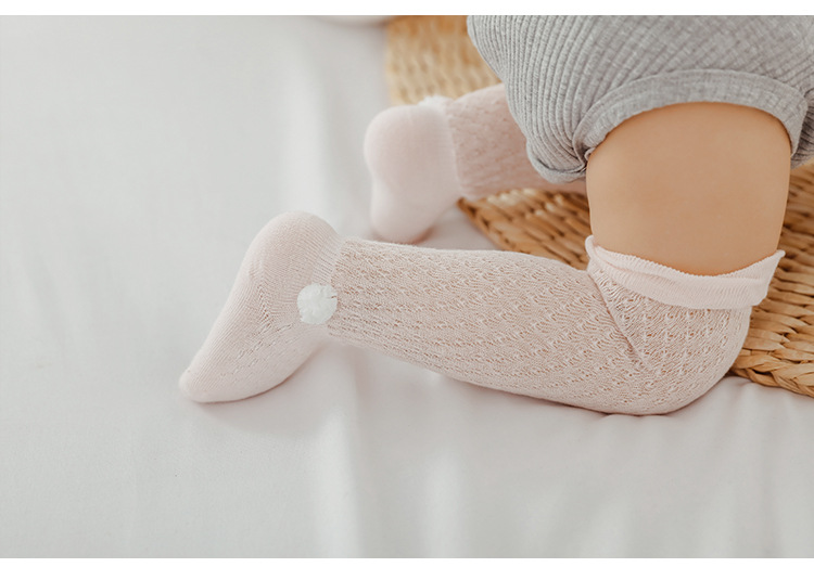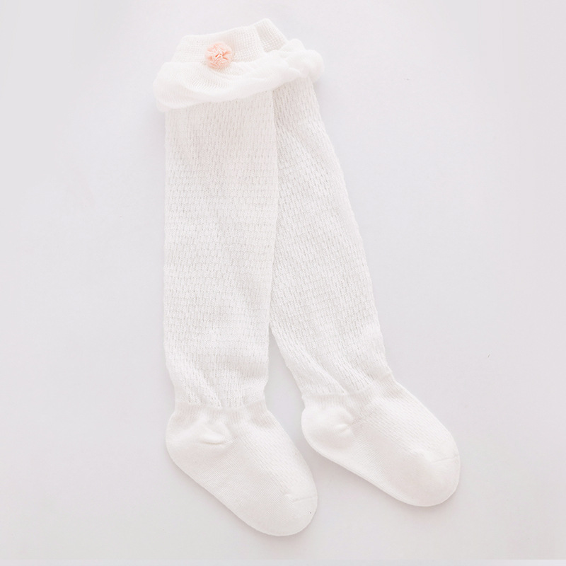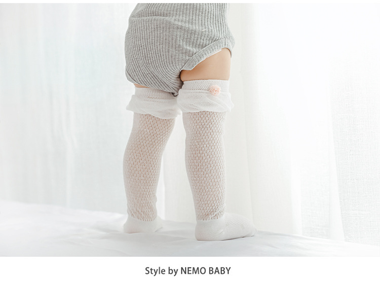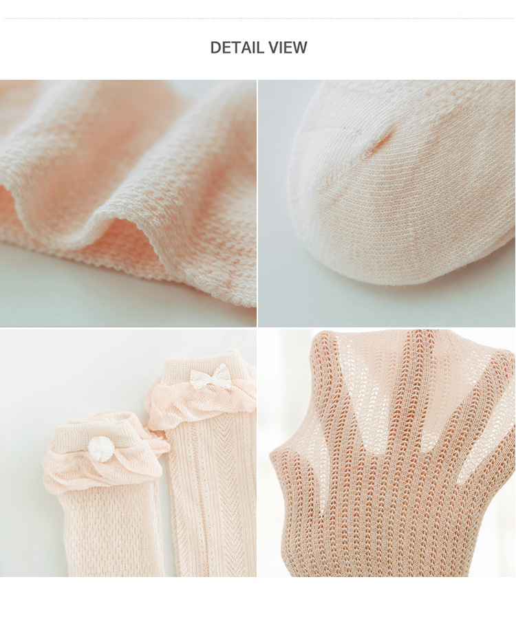 夏季网眼冰丝薄棉宝宝袜子0-1-3岁透气女童蝴蝶结婴儿长筒防蚊袜