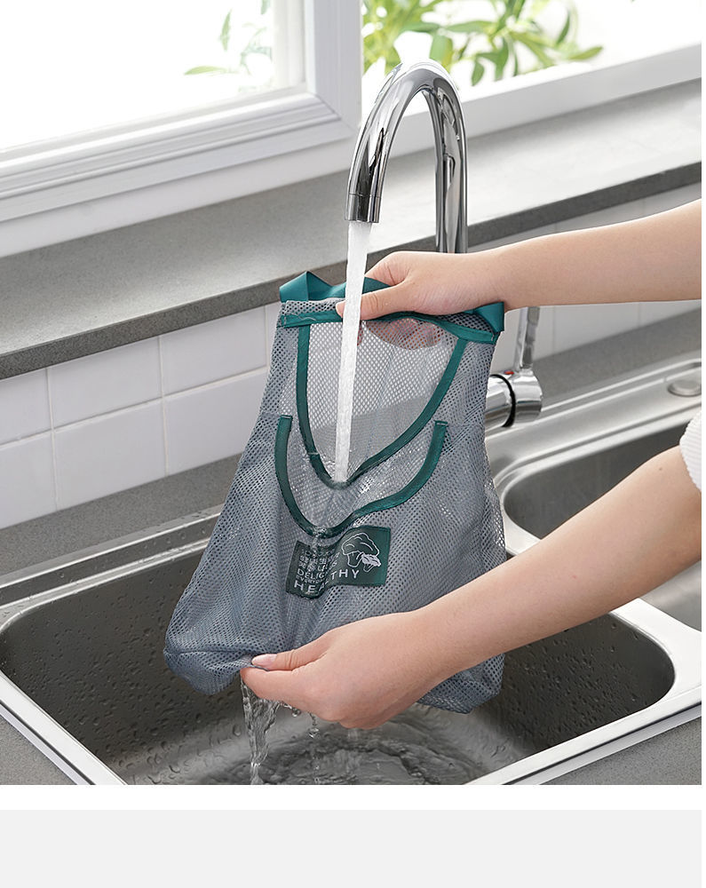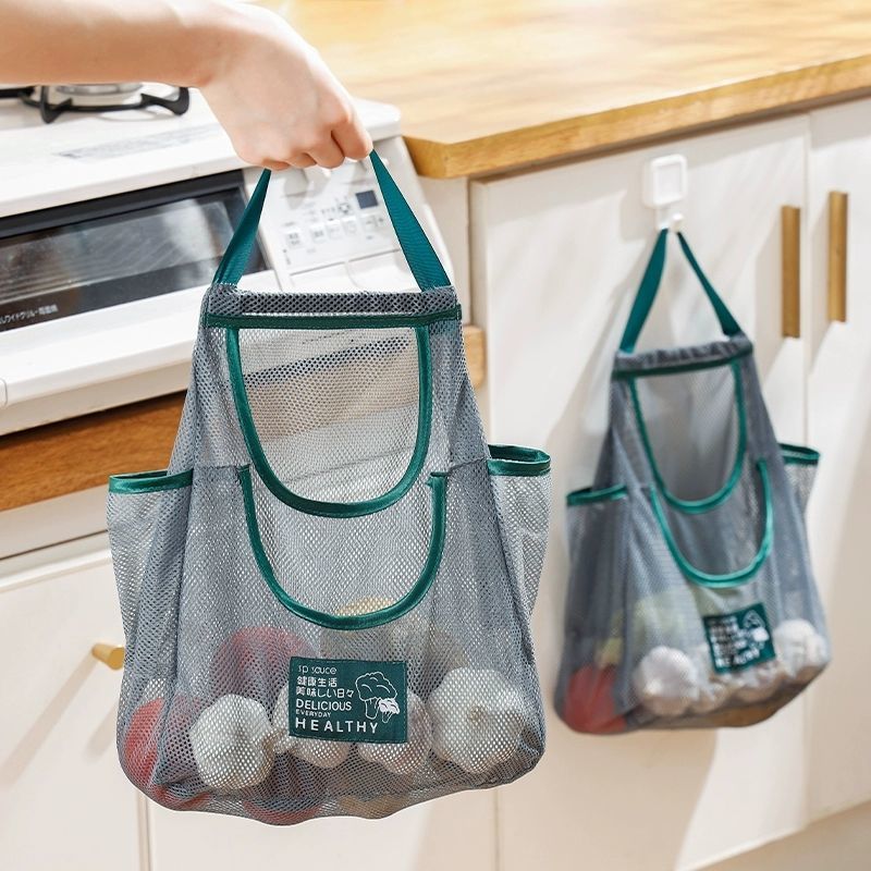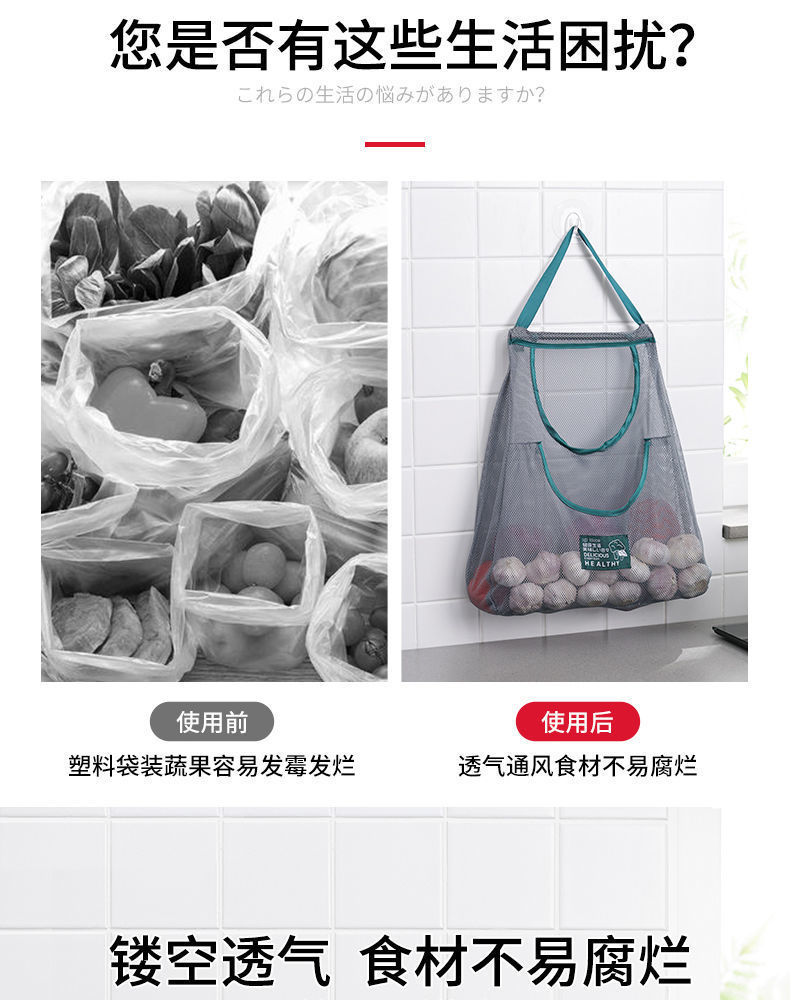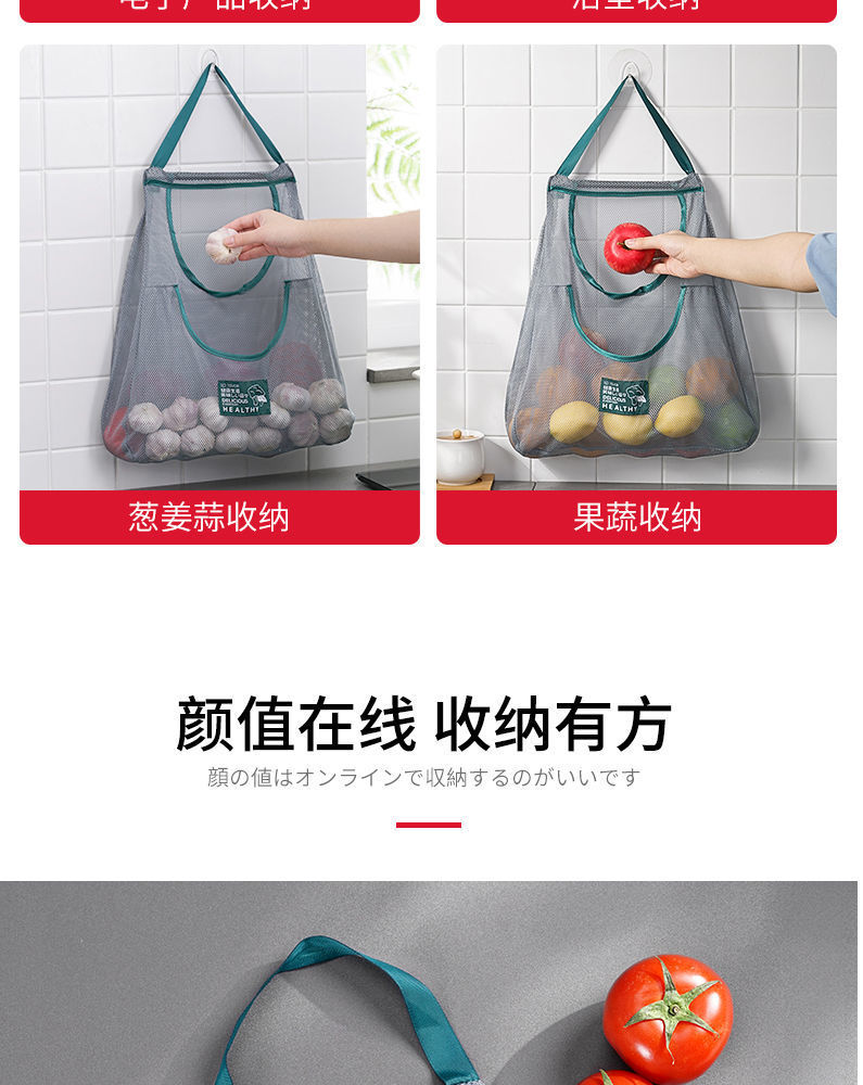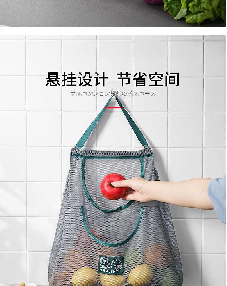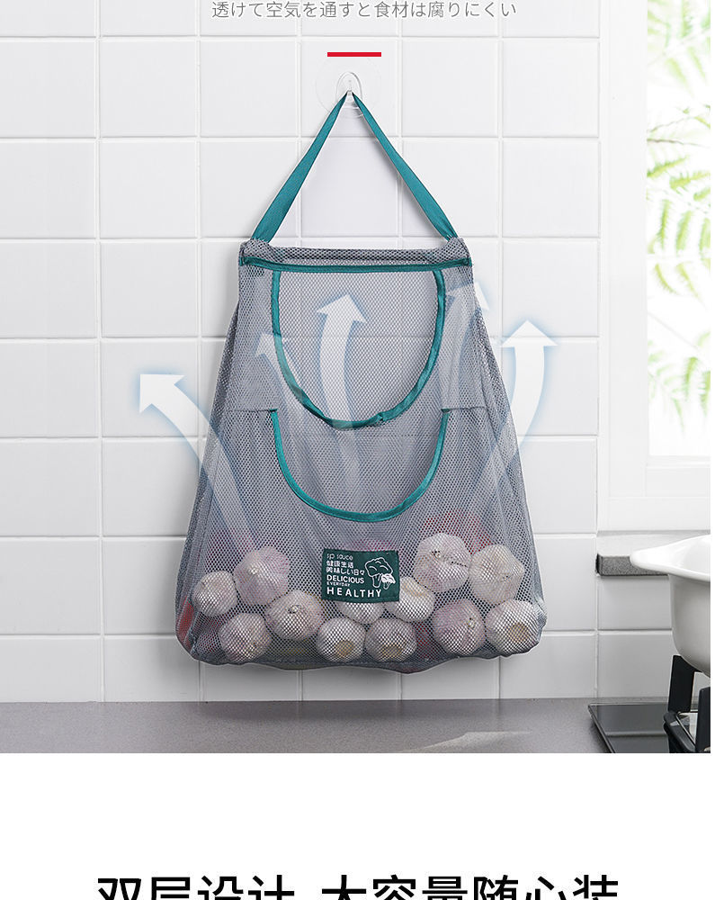 双层厨房可挂式果蔬收纳挂袋便携手拎姜蒜葱干菜镂空透气储物网袋