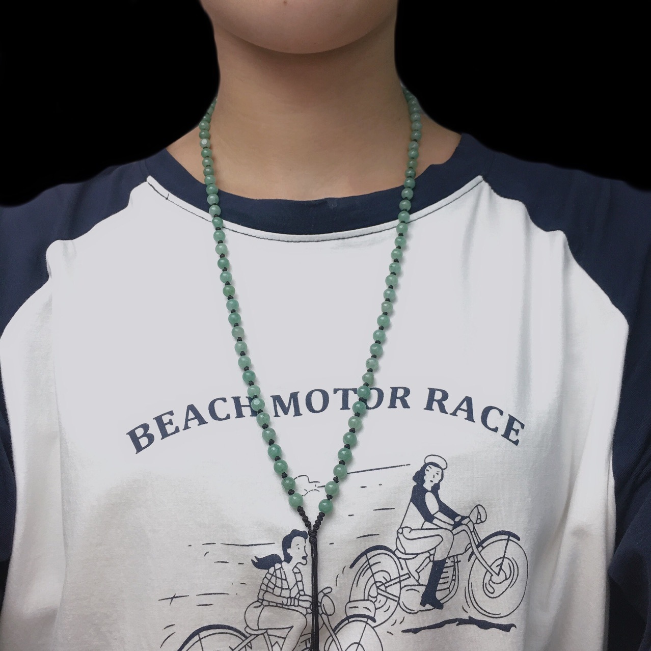 厂家批发玉石东陵玉杂石圆珠挂绳工艺编织6m吊坠珠链石英岩毛衣链