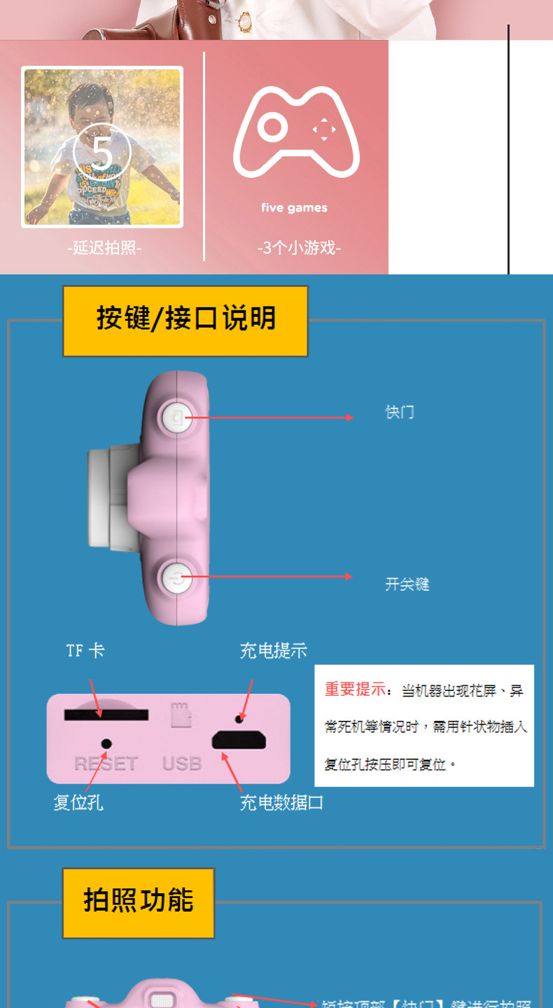 颜色 粉色相机+硅胶套,蓝色相机+硅胶套