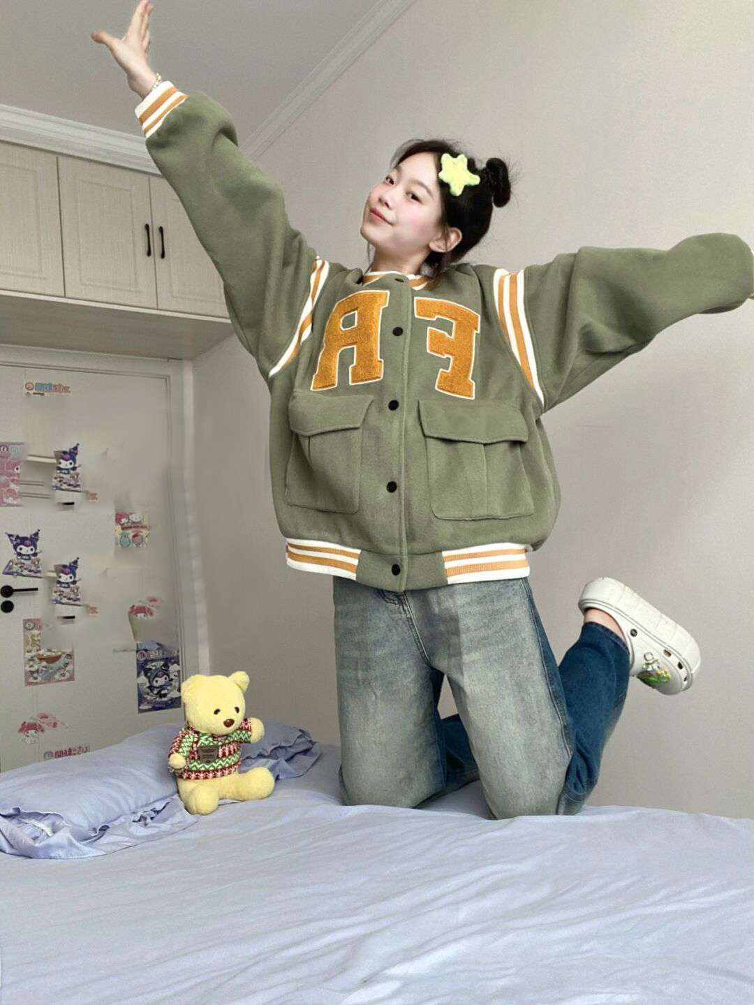 時髦減齡巨好穿!美式復古棒球服外套女高級感小眾寬鬆夾克上衣