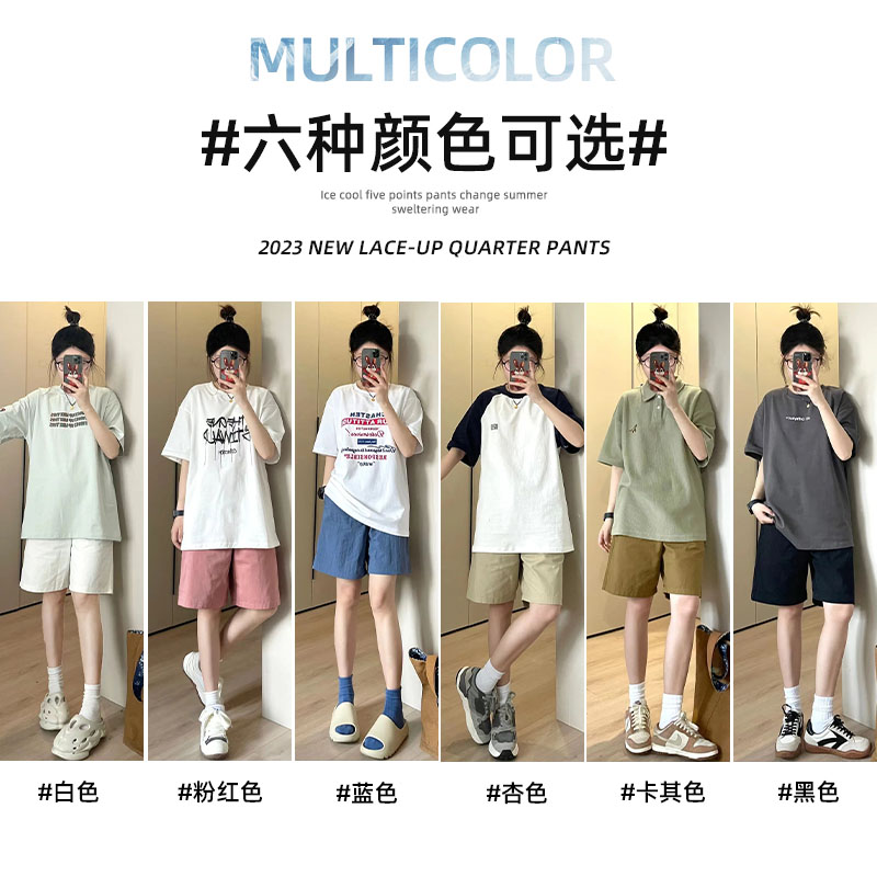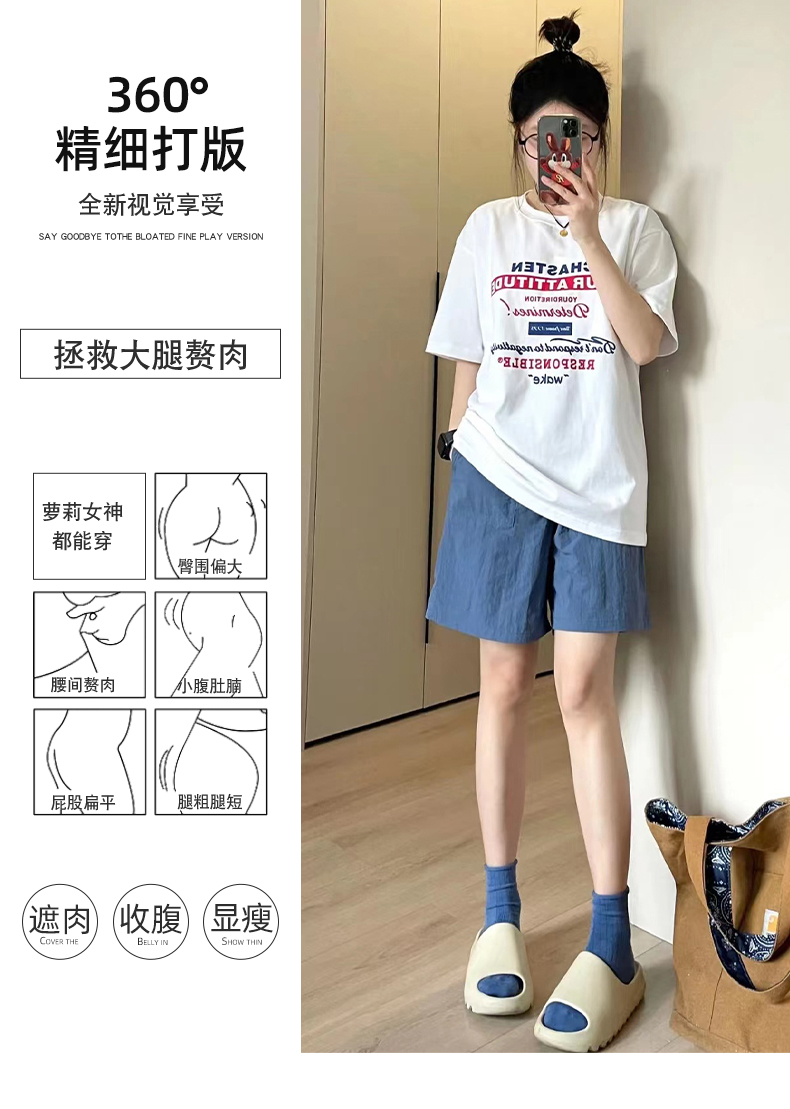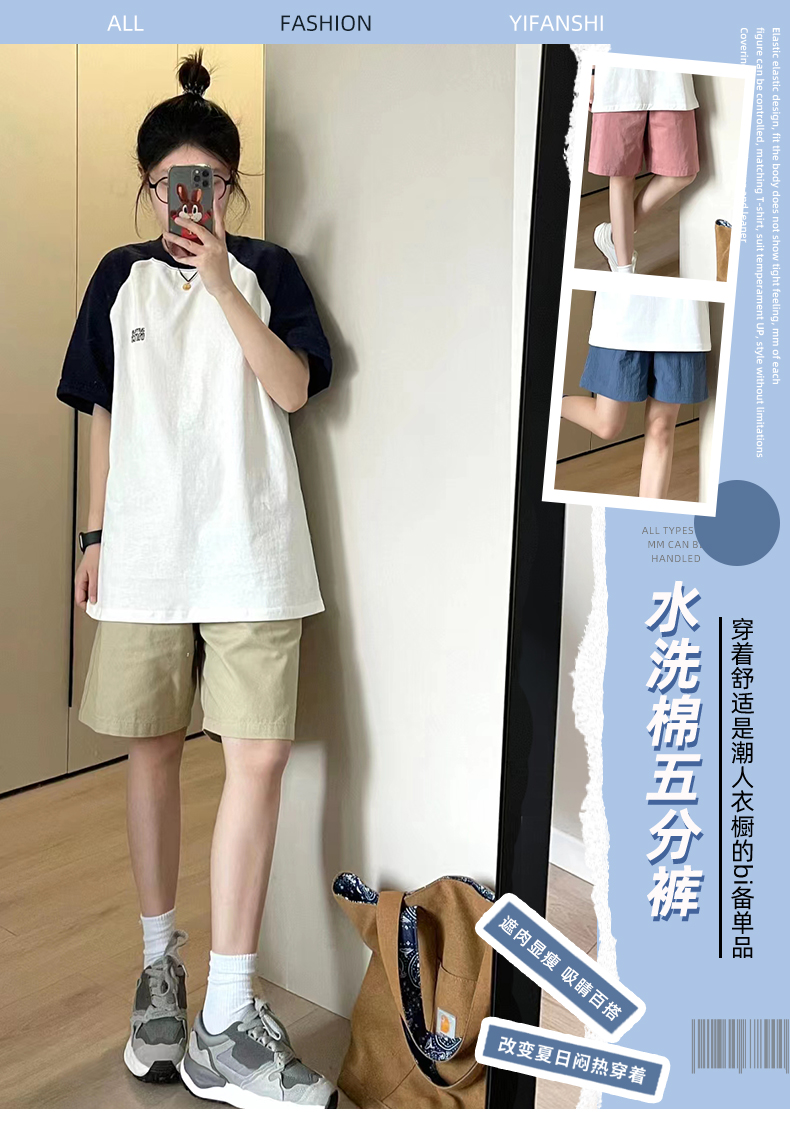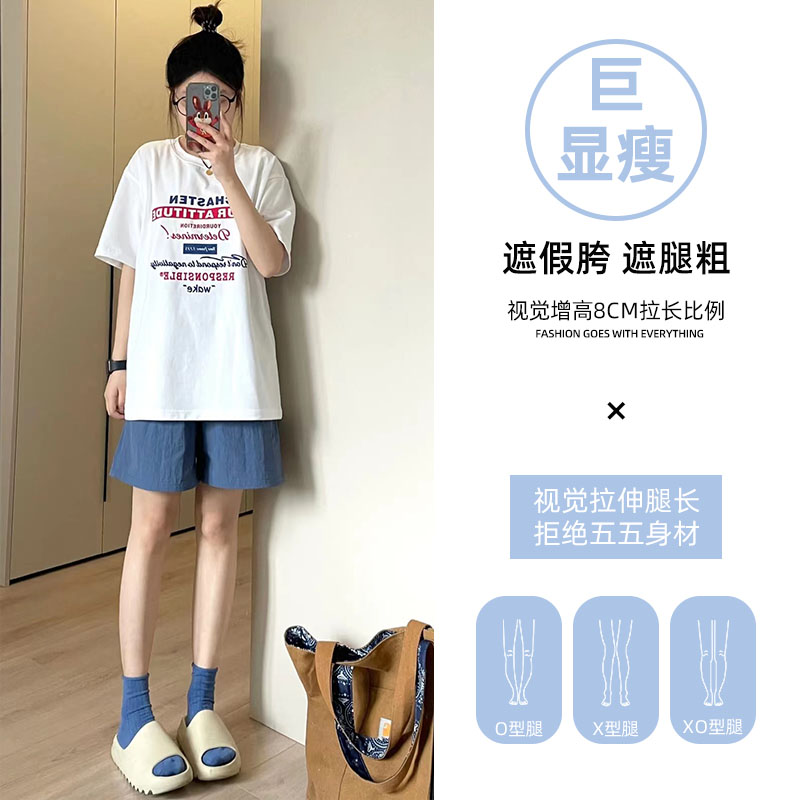 純棉運動短褲女夏薄款高腰小個子休閒中褲寬鬆直筒a字闊腿五分褲