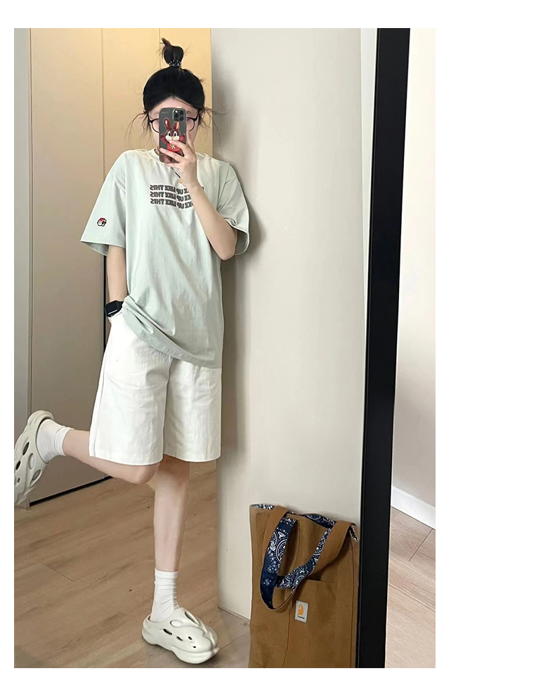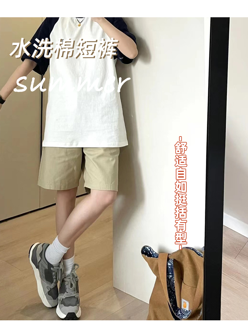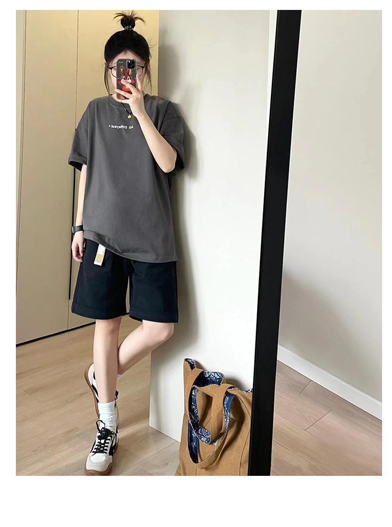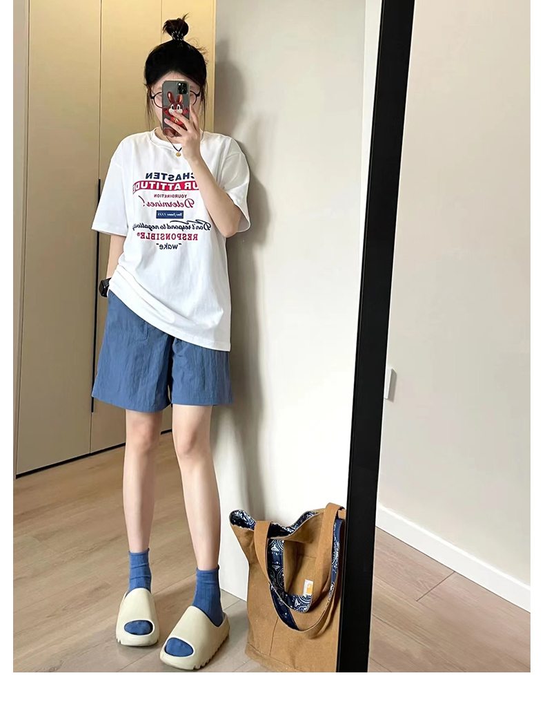 純棉運動短褲女夏薄款高腰小個子休閒中褲寬鬆直筒a字闊腿五分褲