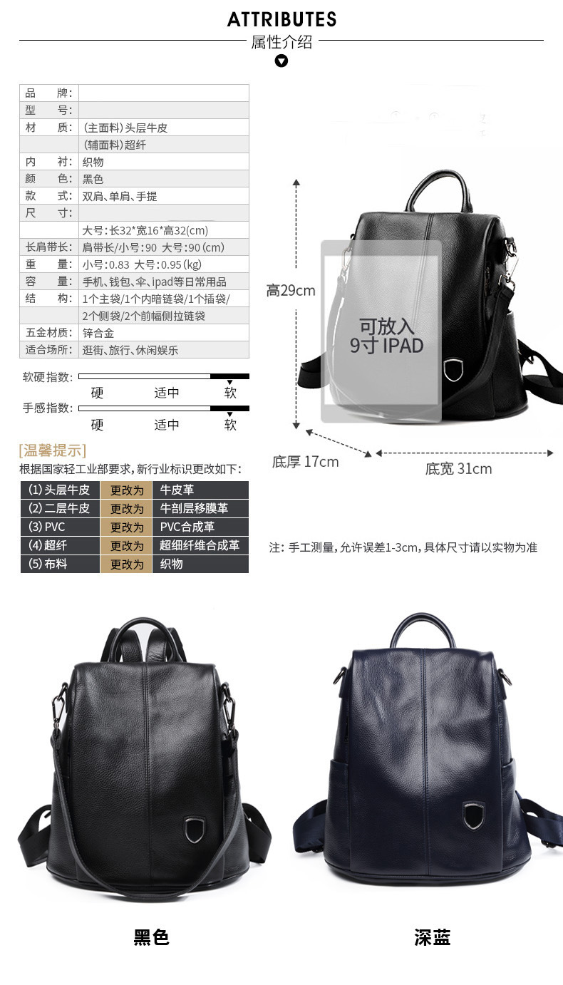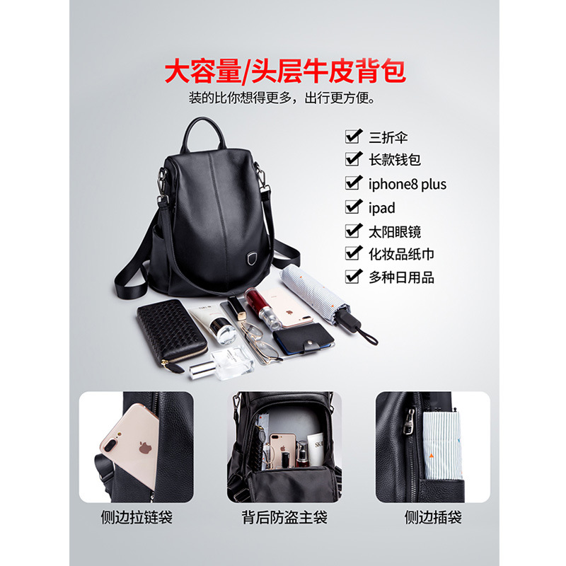 真皮双肩包女2022新款韩版潮时尚百搭头层牛皮软皮大容量女包背包