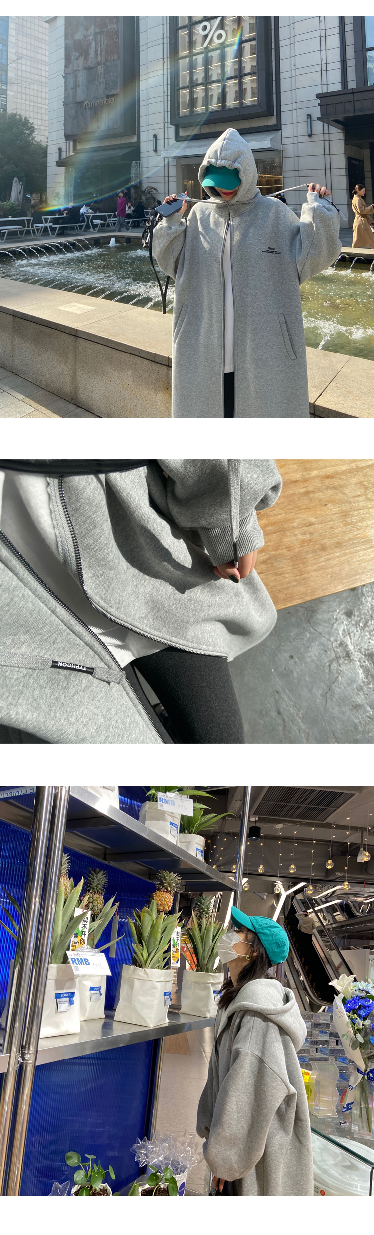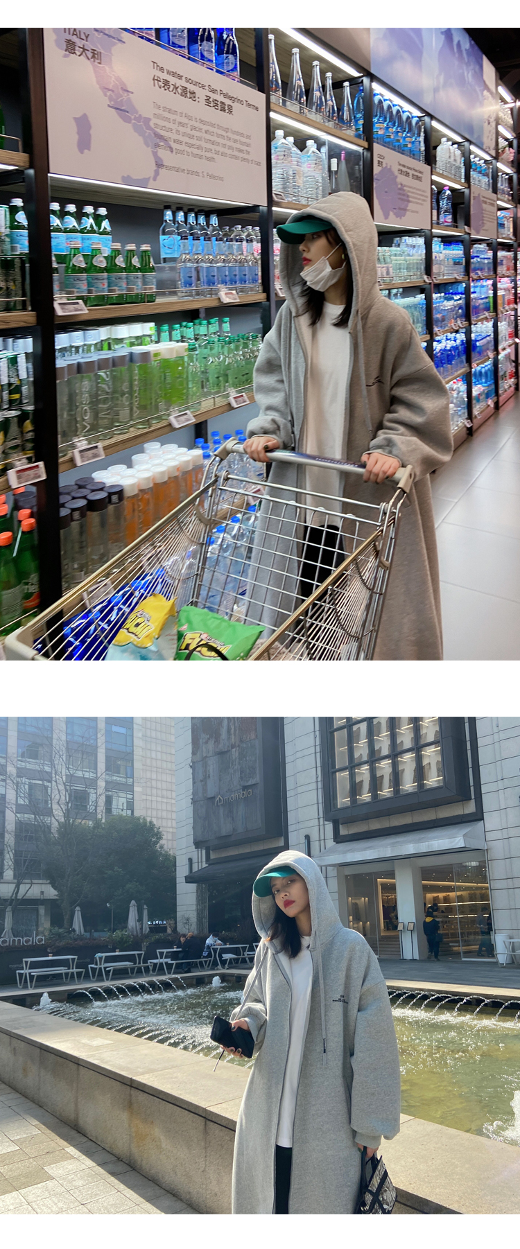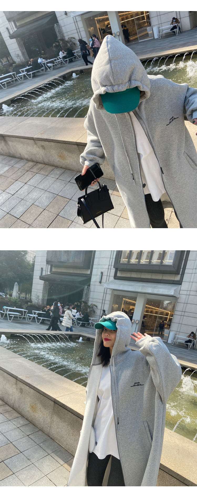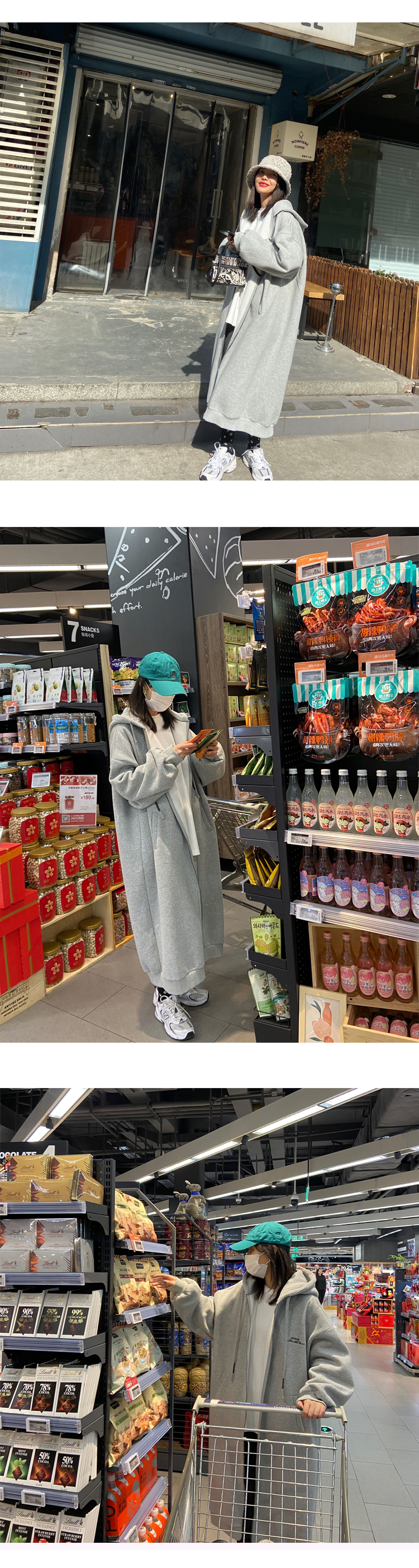灰色長版過膝oversize連帽加絨衛衣女2023新款春秋寬鬆慵懶風外套