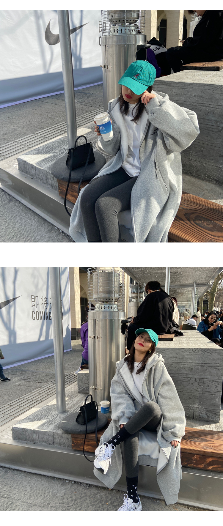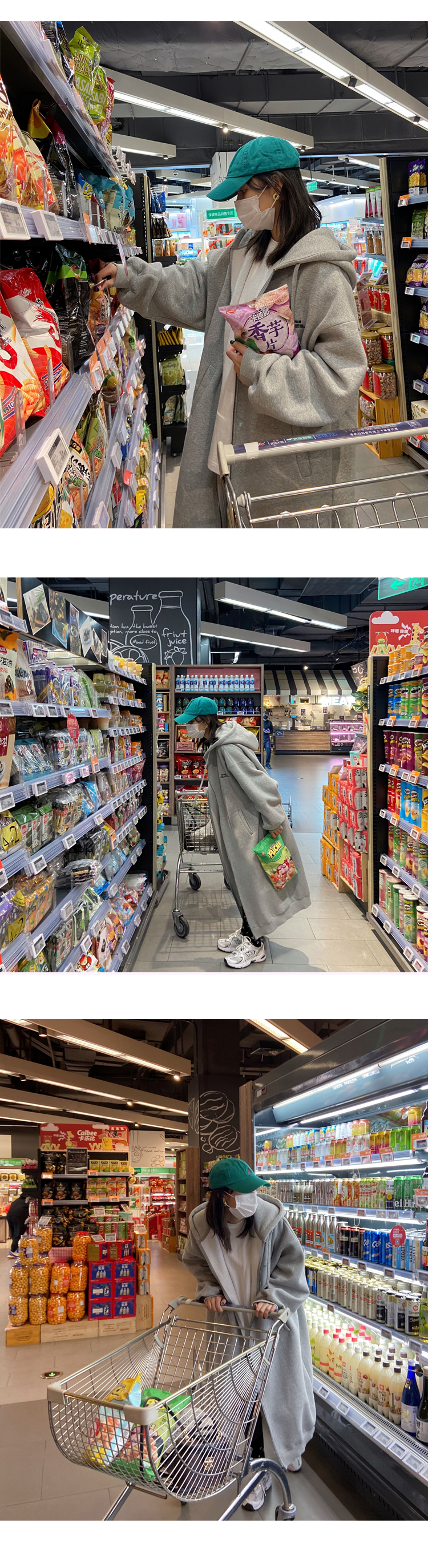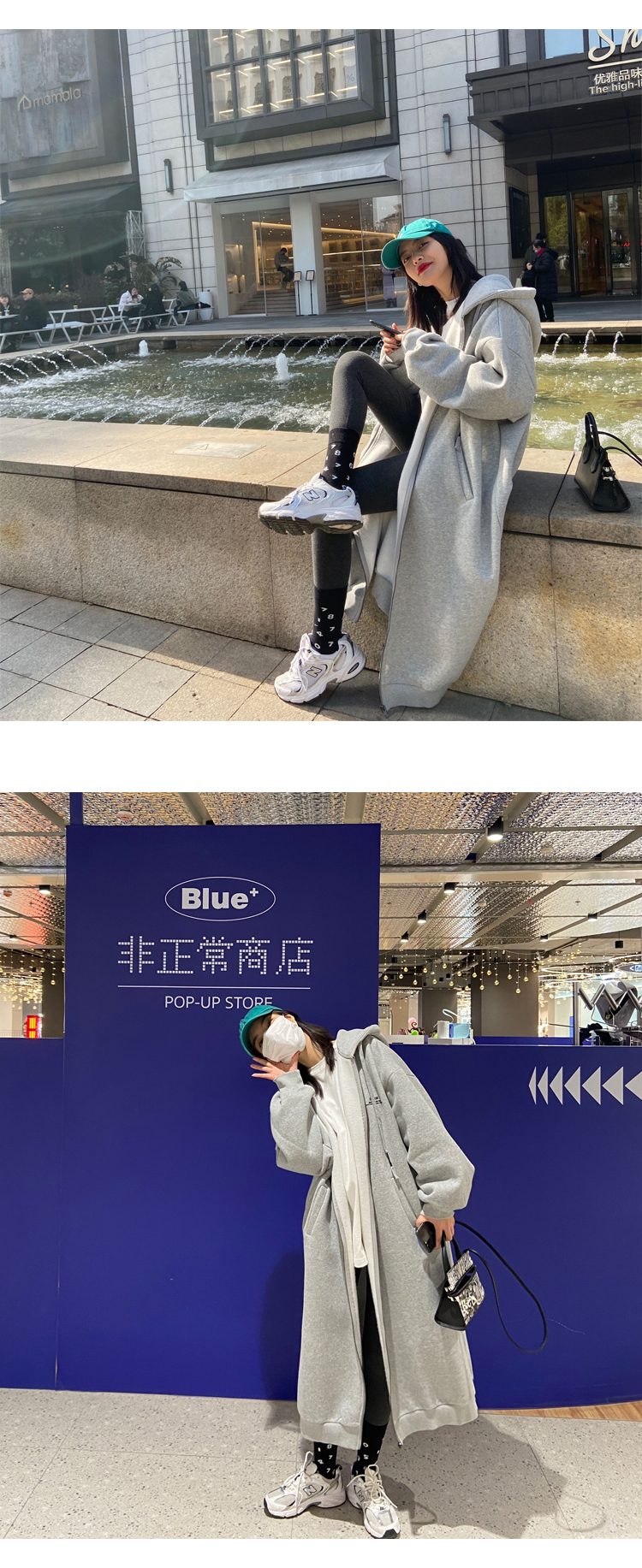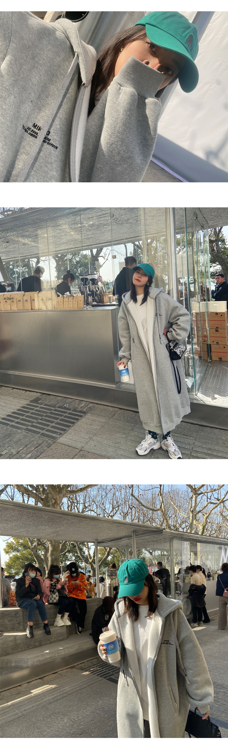灰色長版過膝oversize連帽加絨衛衣女2023新款春秋寬鬆慵懶風外套