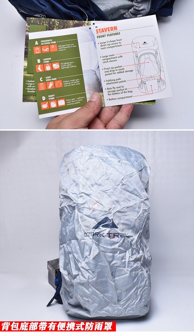 包包大u形前袋直接访问主舱,大主仓隔间有前拉链口袋和dropin网状口袋添加存储徒步旅行极附件雨飞及其贮仓底部的袋子舱底前盖与拉链口袋添加存储,双重水化部分边压缩背带2侧水瓶的口袋舒适的腰带与网状口袋添加存储和组织涂布重型握柄舒适垫后板和肩带胸骨表带水化兼容内部框架重量的支持可调躯干系统尺寸:15Lx6Wx26.4H