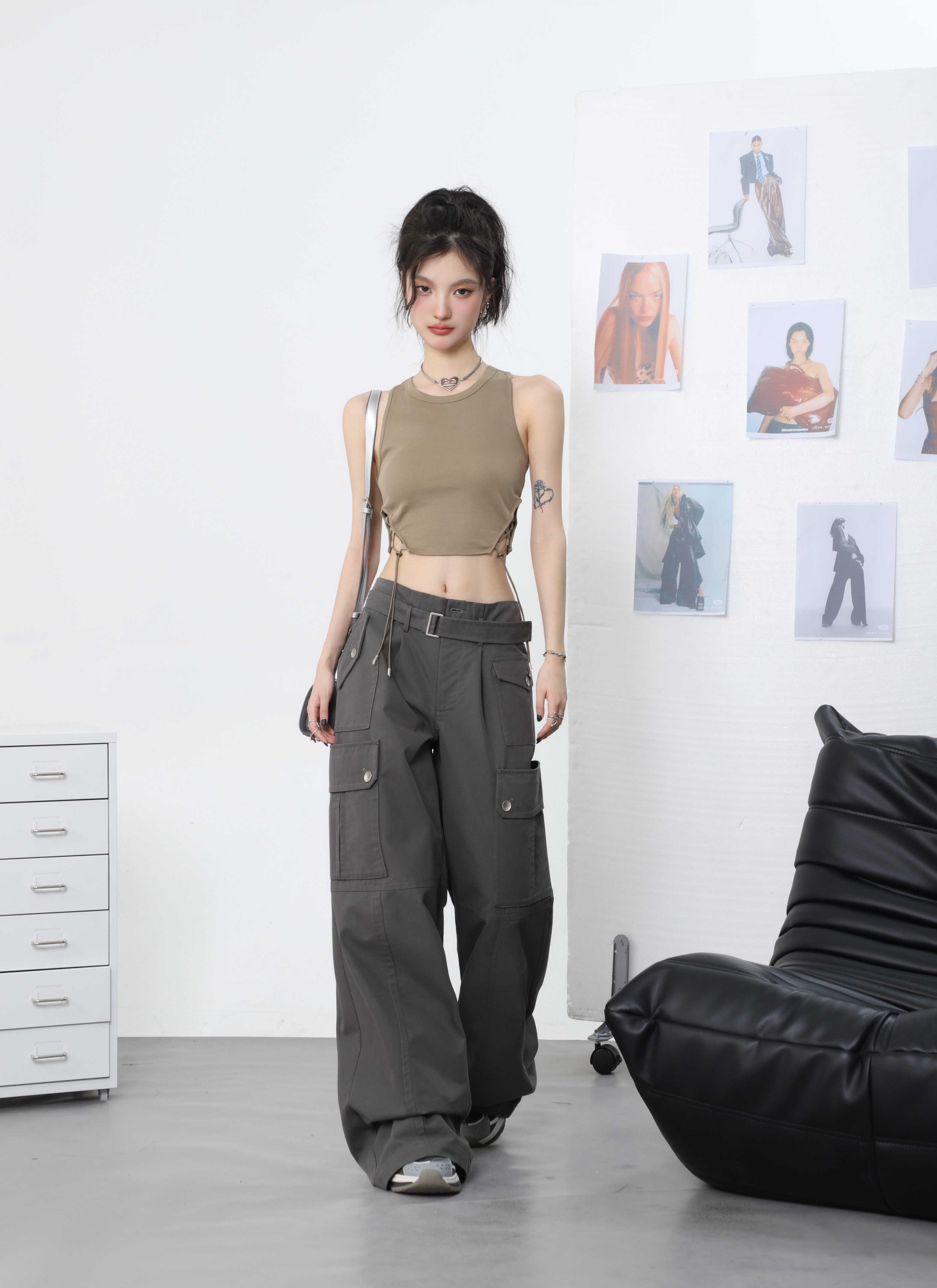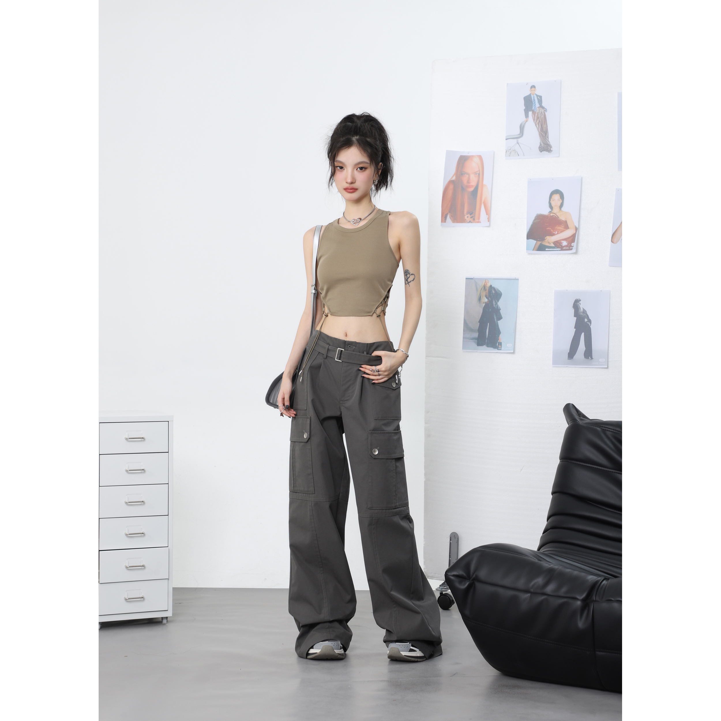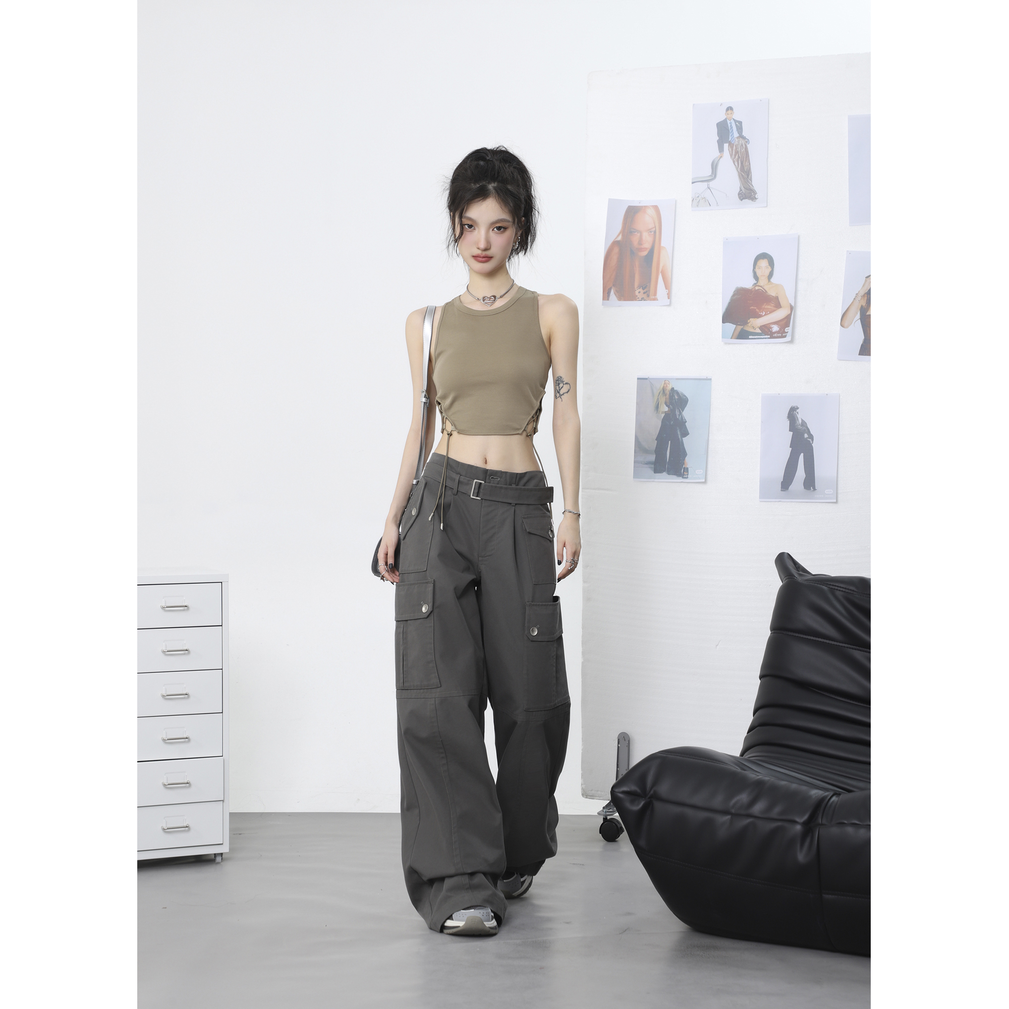 SHIYIYUE美式工裝褲女夏季復古百搭休閒褲寬鬆小個子闊腿拖地長褲