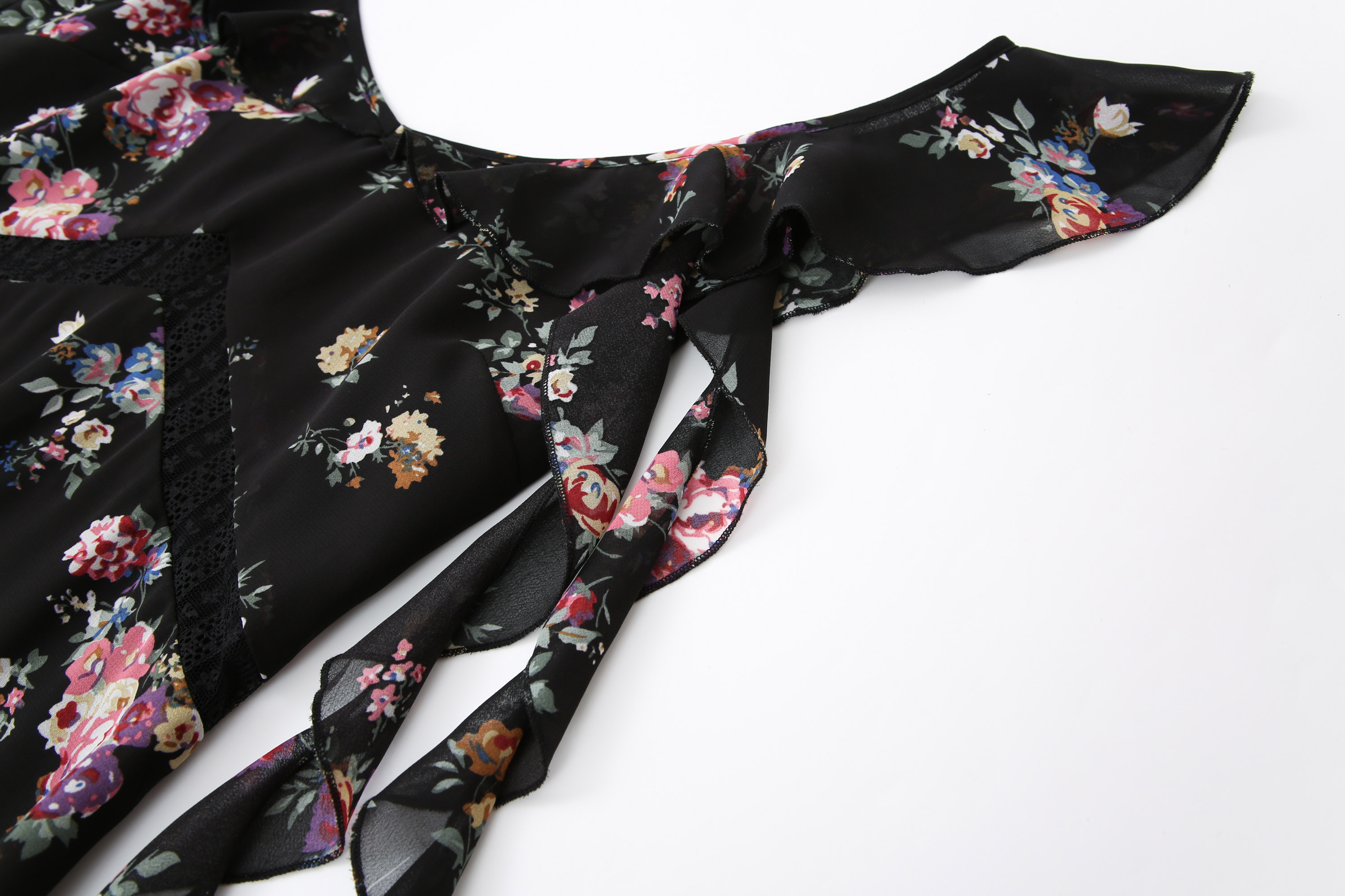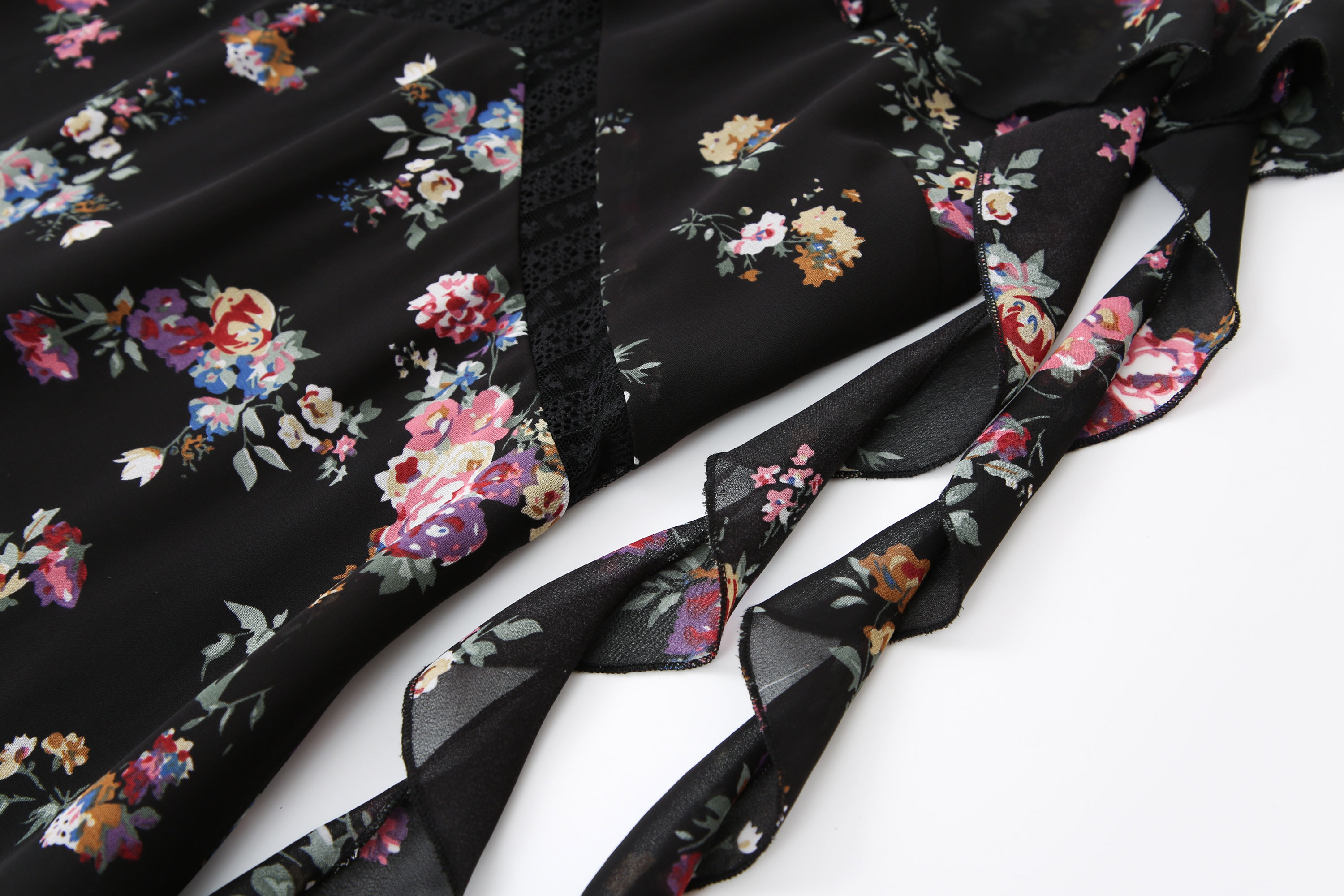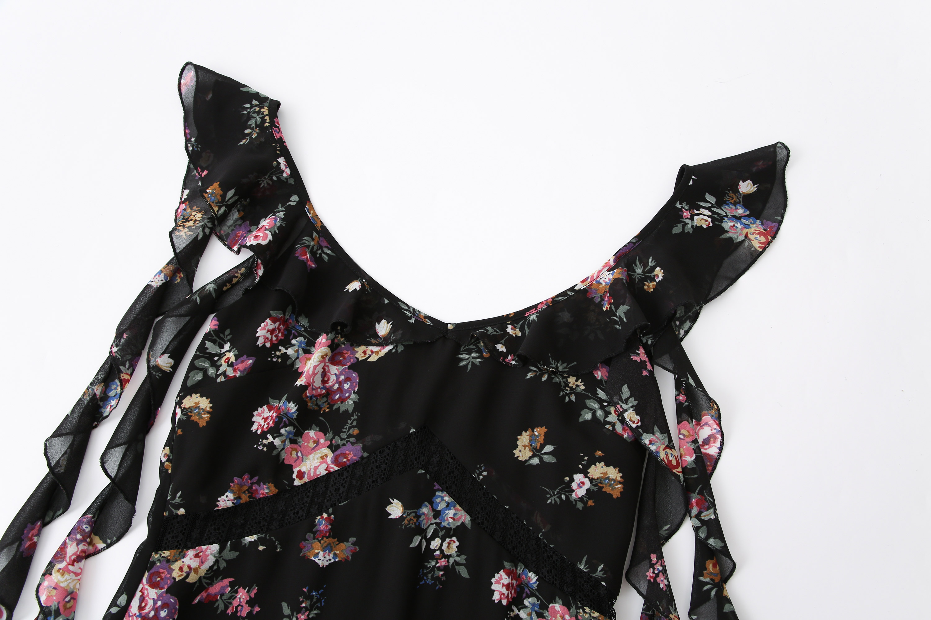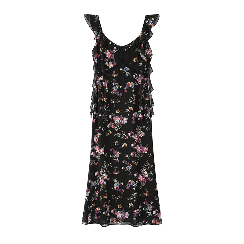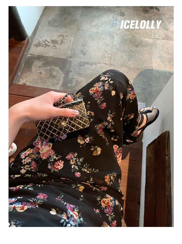 ICELOLLY法式黑色垂墜感獨特碎花吊帶洋裝超好看新款長裙子女夏