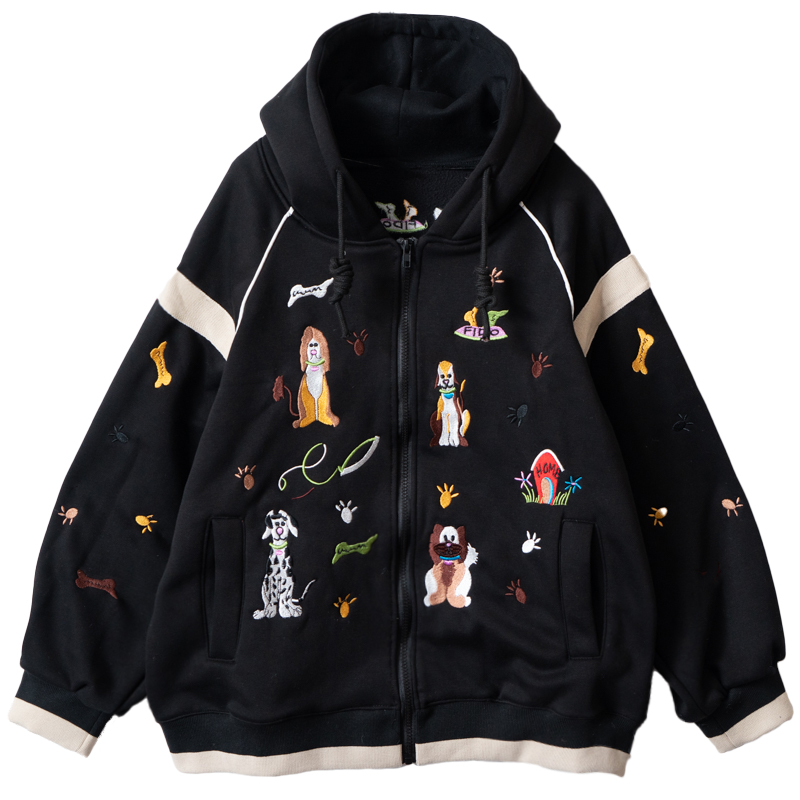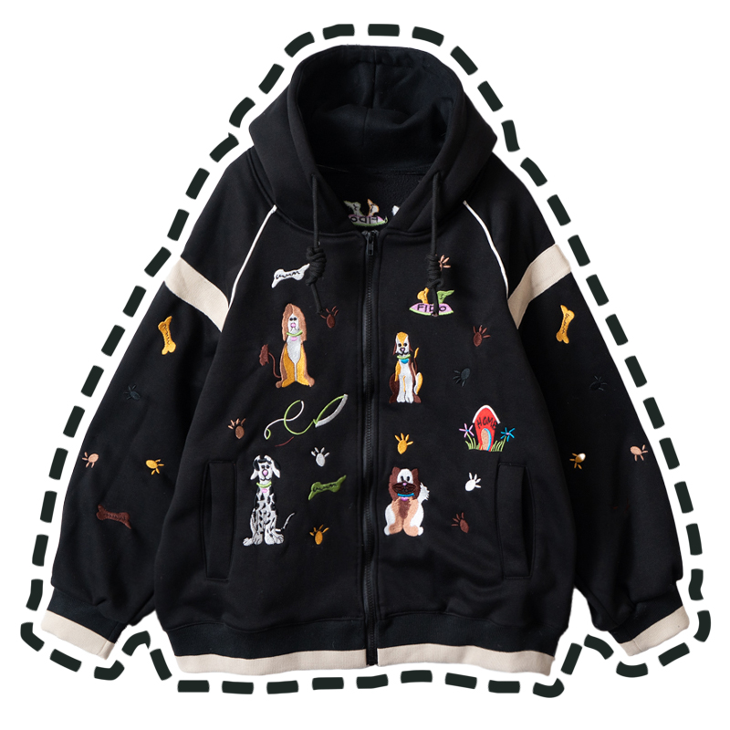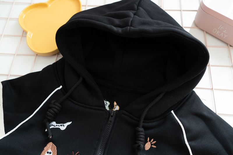 【布偶喵殿】黑色拉鍊連帽運動衫女冬季加絨寬鬆外套少女學生春季