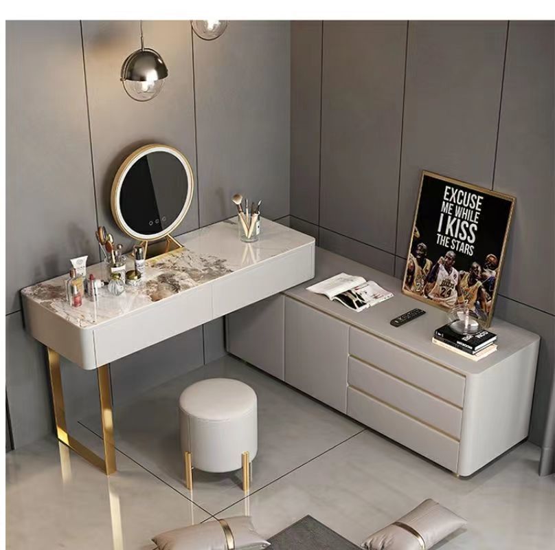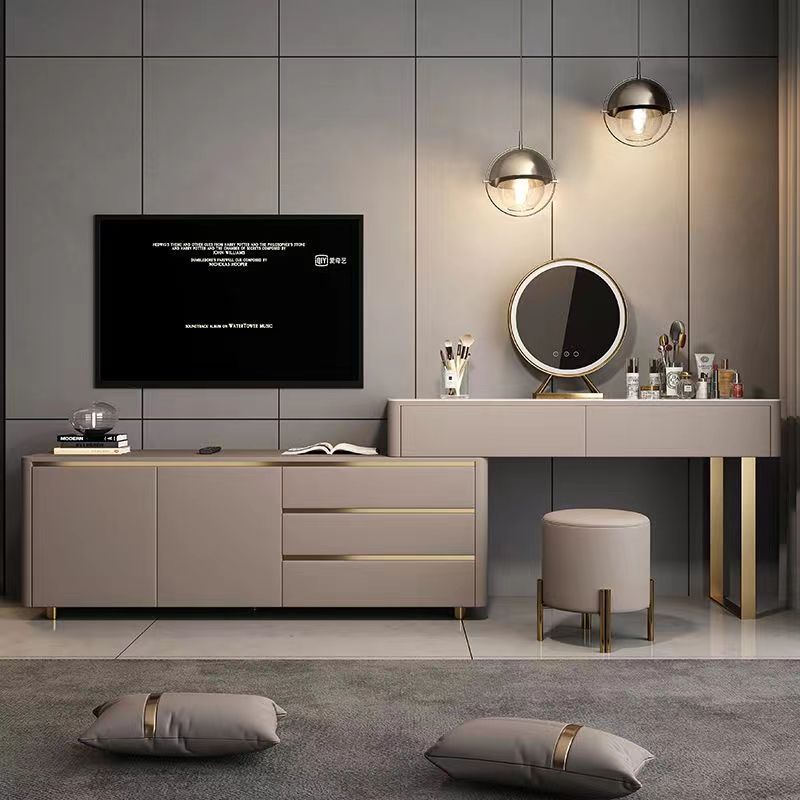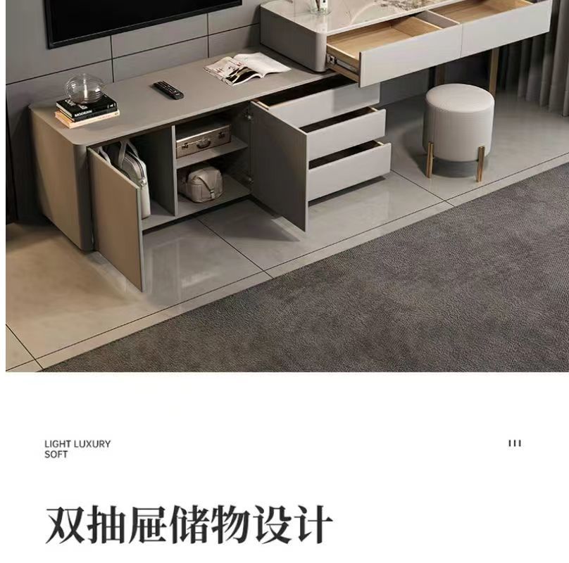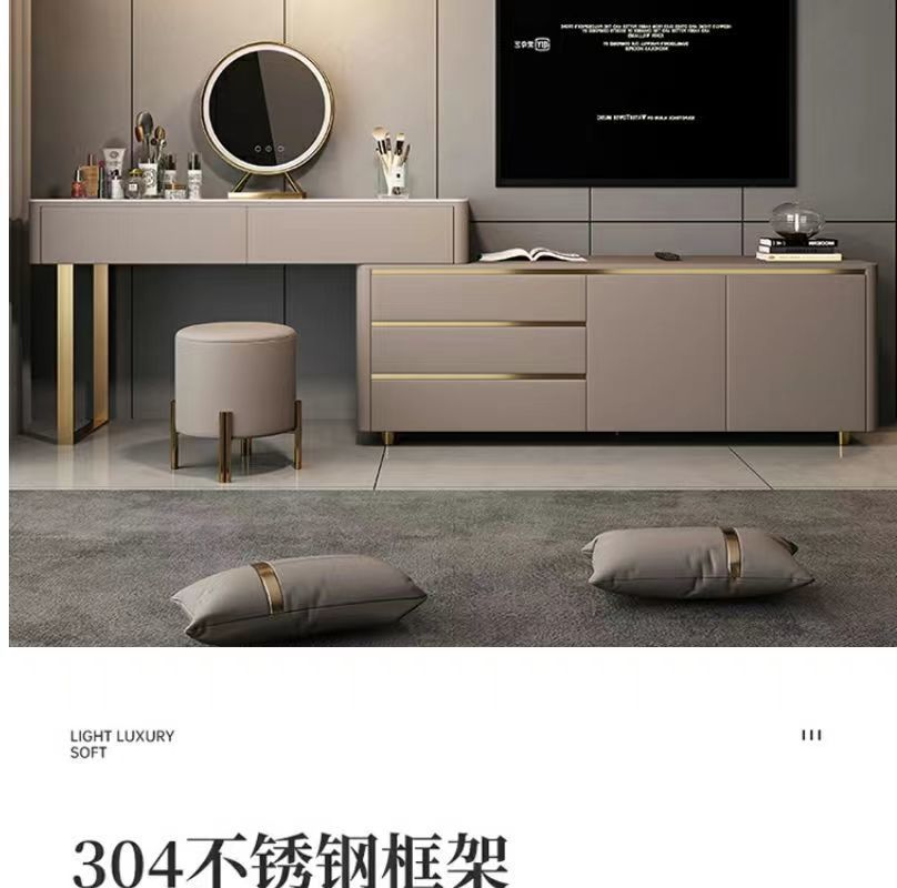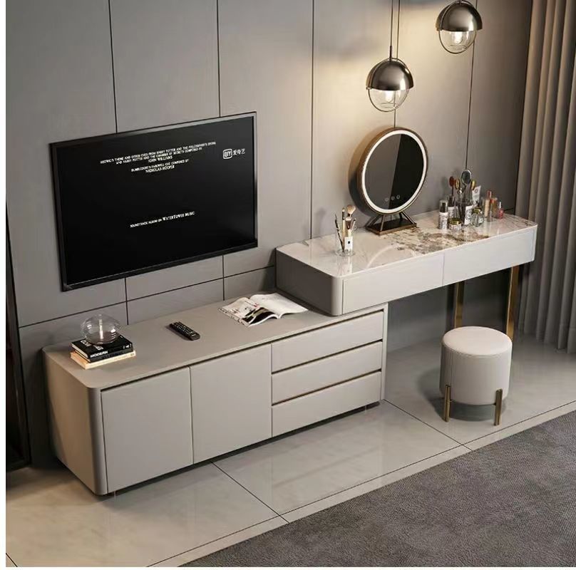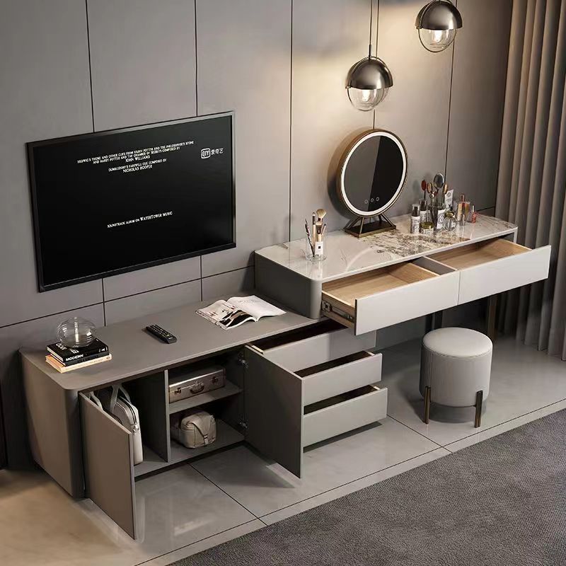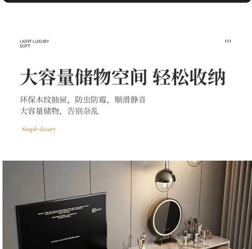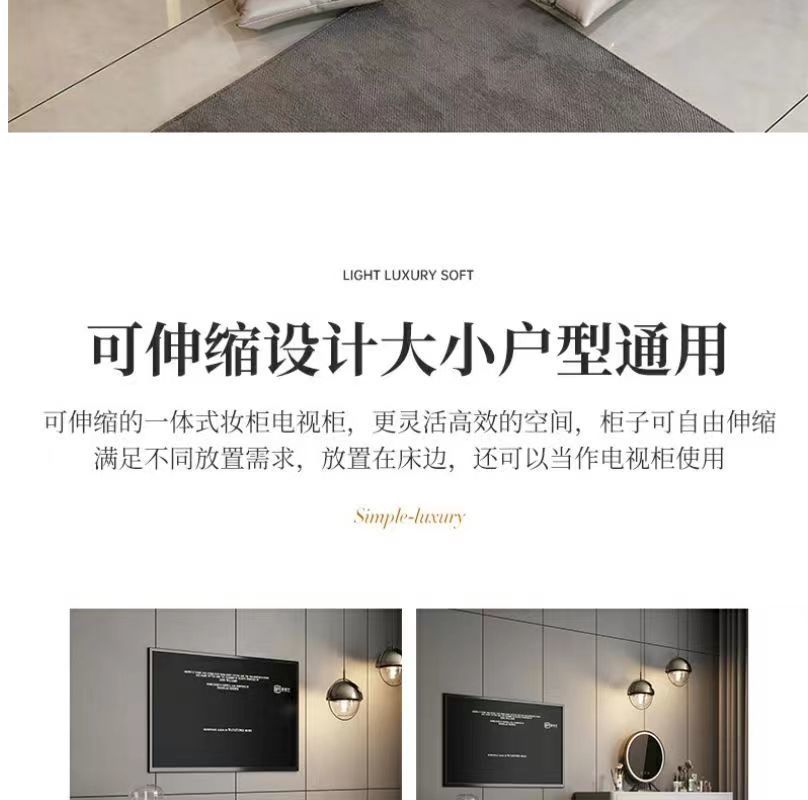卧室化妆台木质多功能梳妆台收纳一体轻奢电视柜风伸缩化妆台电视