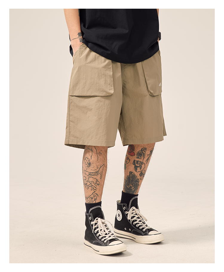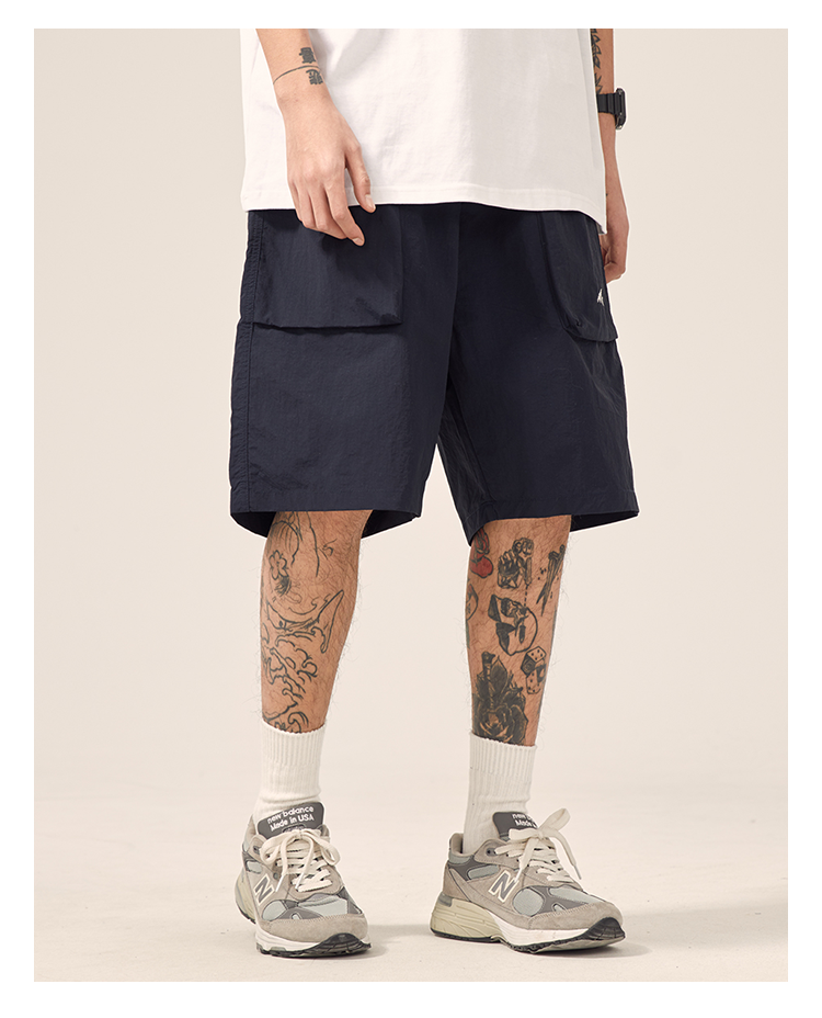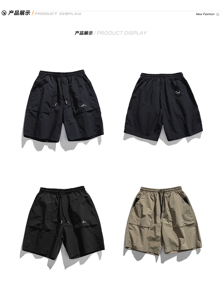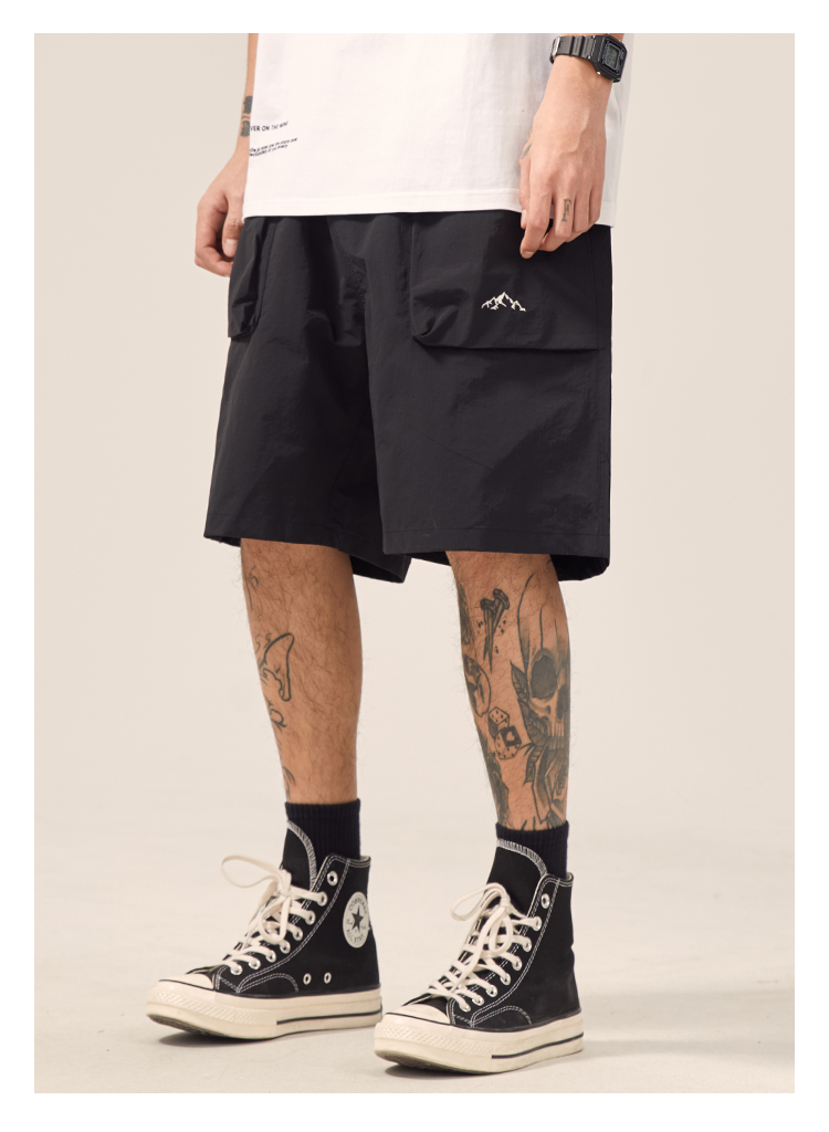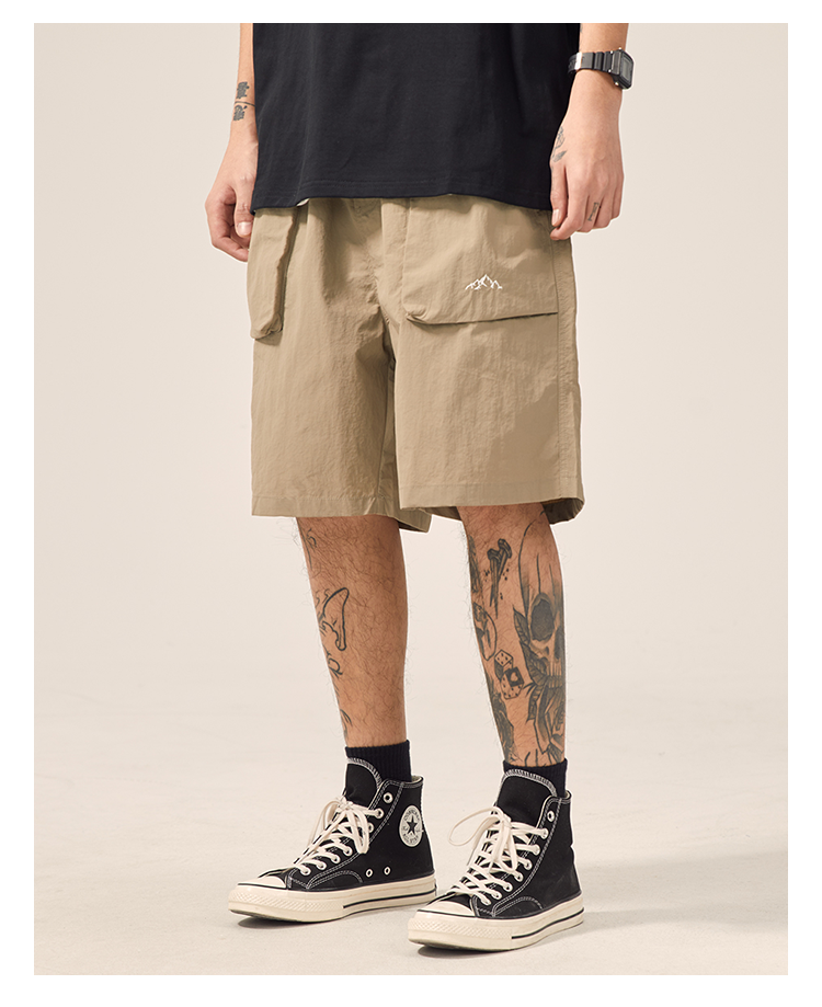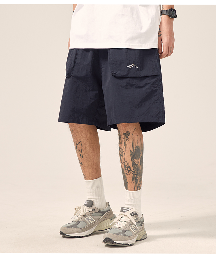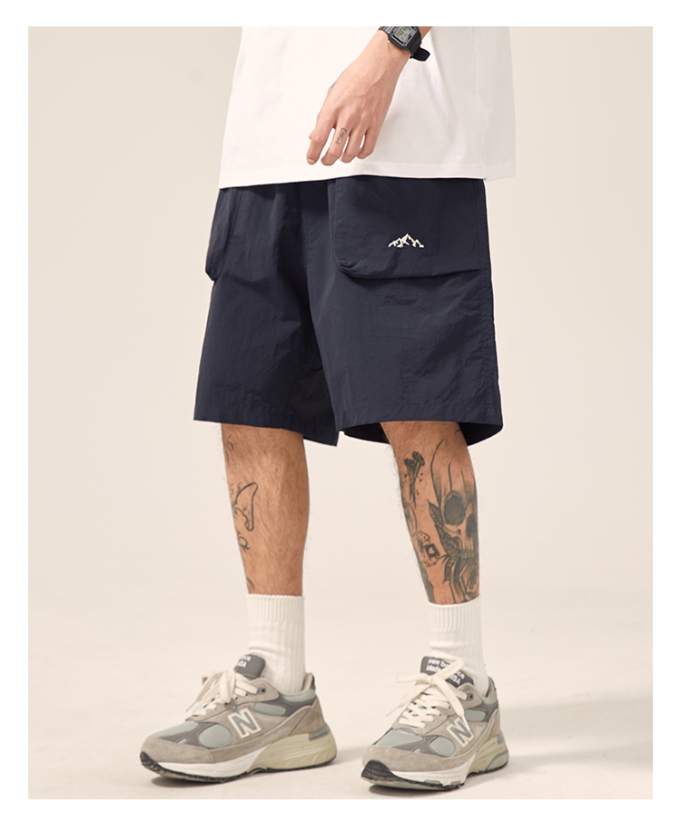 男道日系夏季新款小山峯刺繡工裝短褲男薄款速乾五分休閒運動五分褲