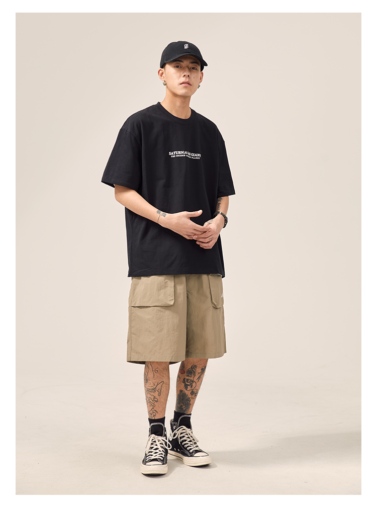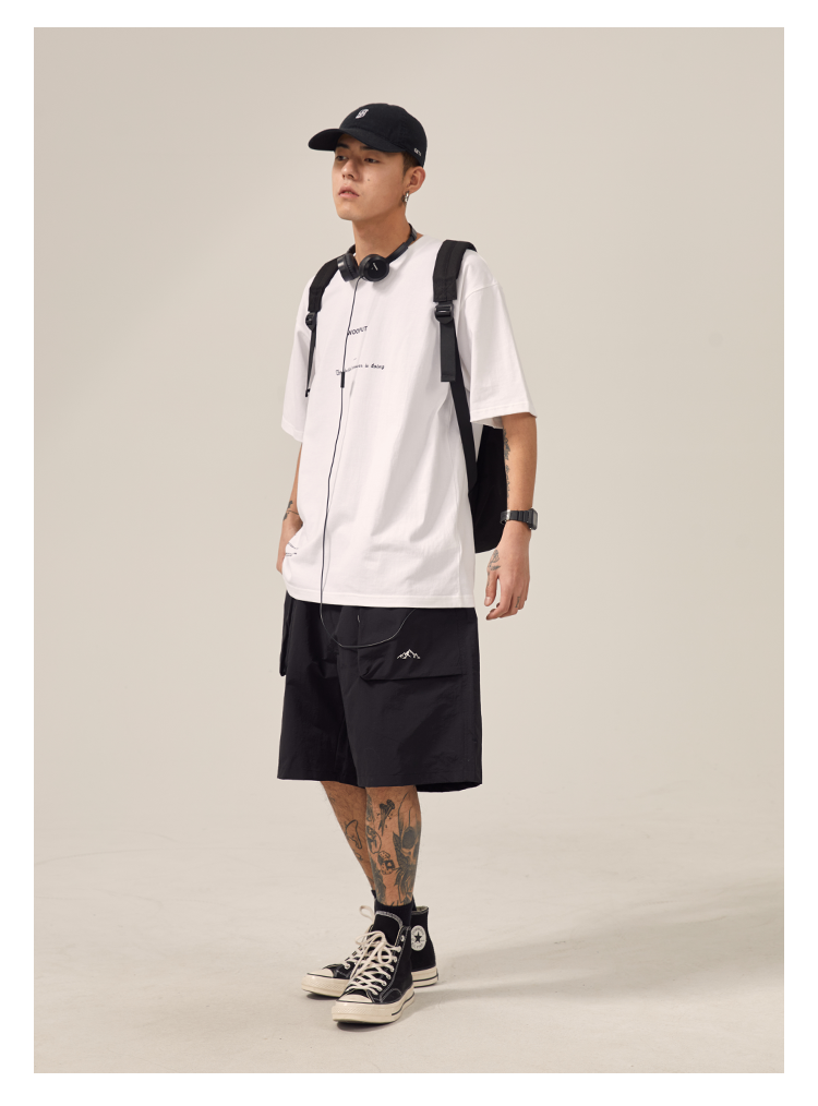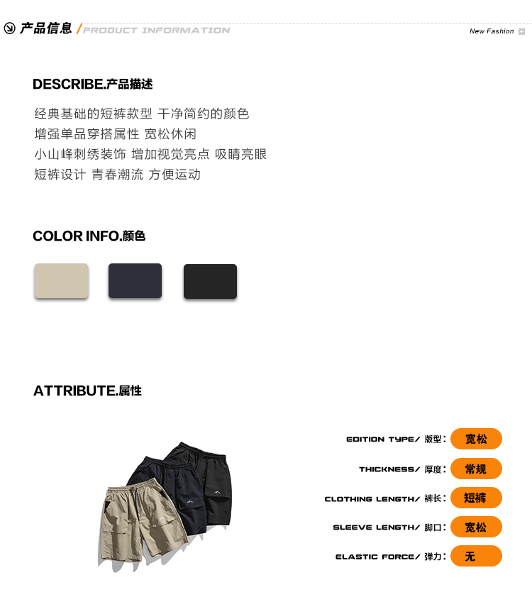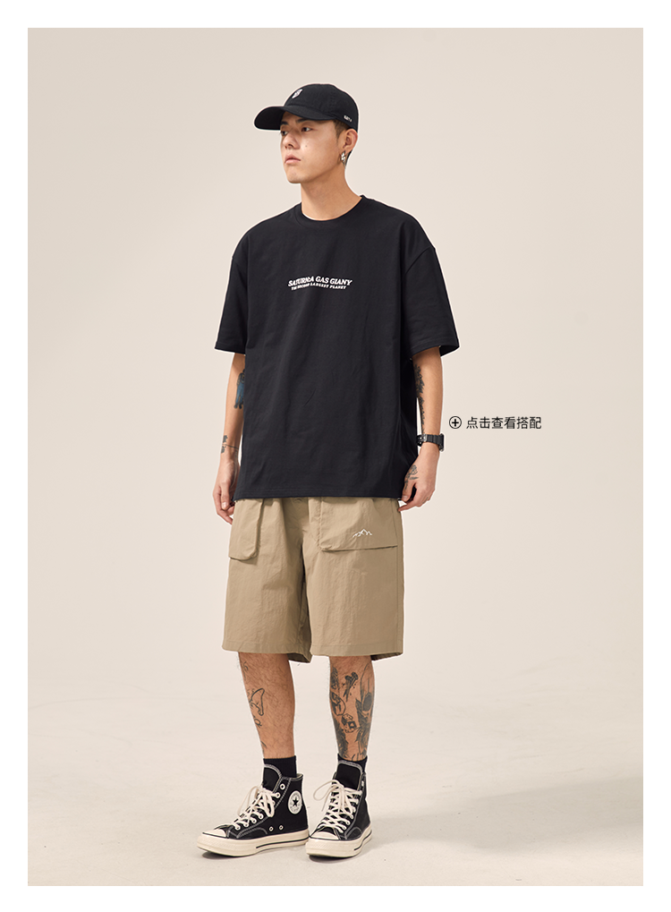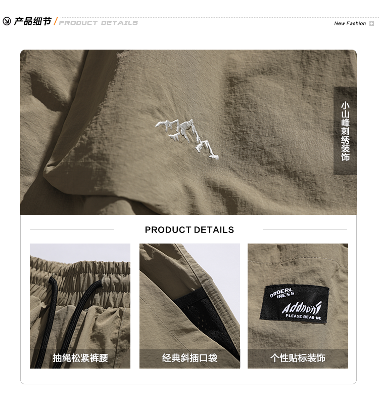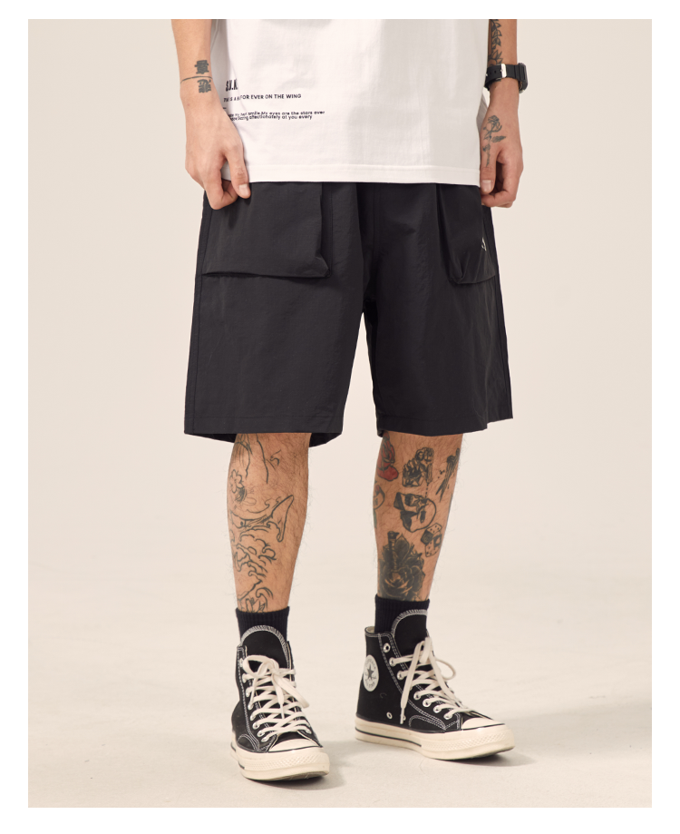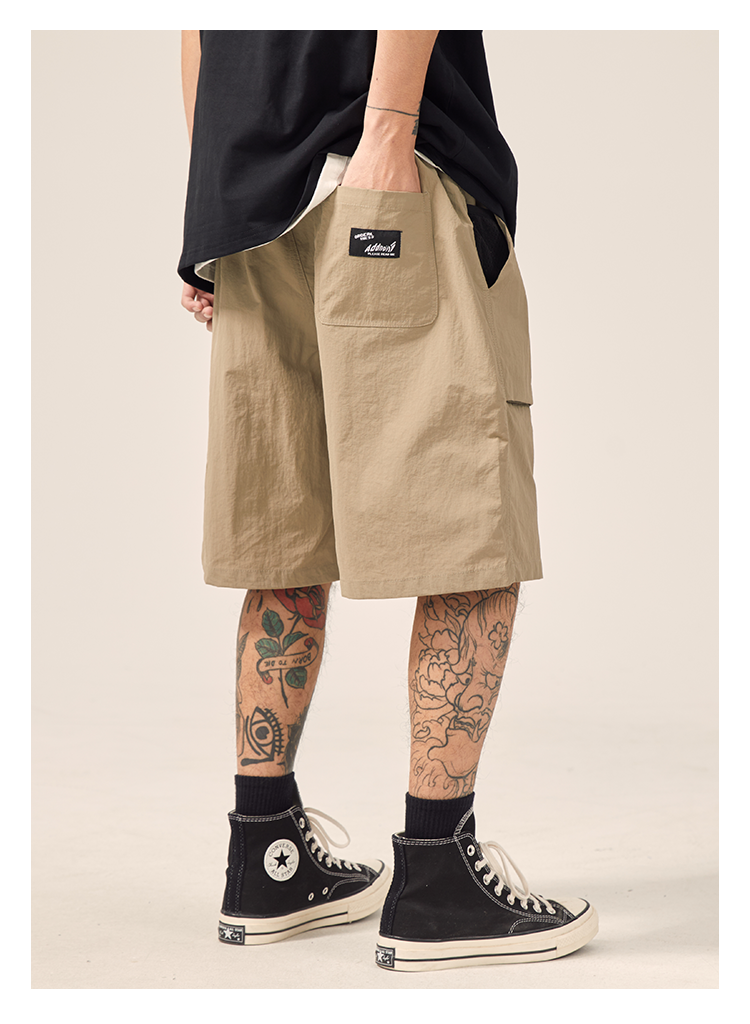男道日系夏季新款小山峯刺繡工裝短褲男薄款速乾五分休閒運動五分褲