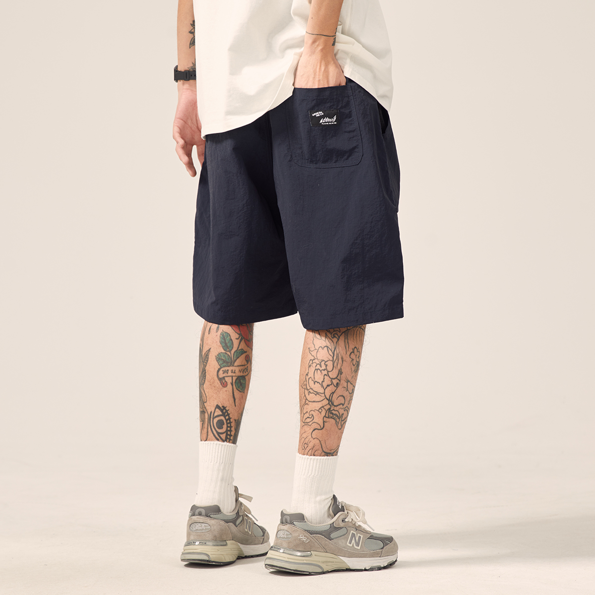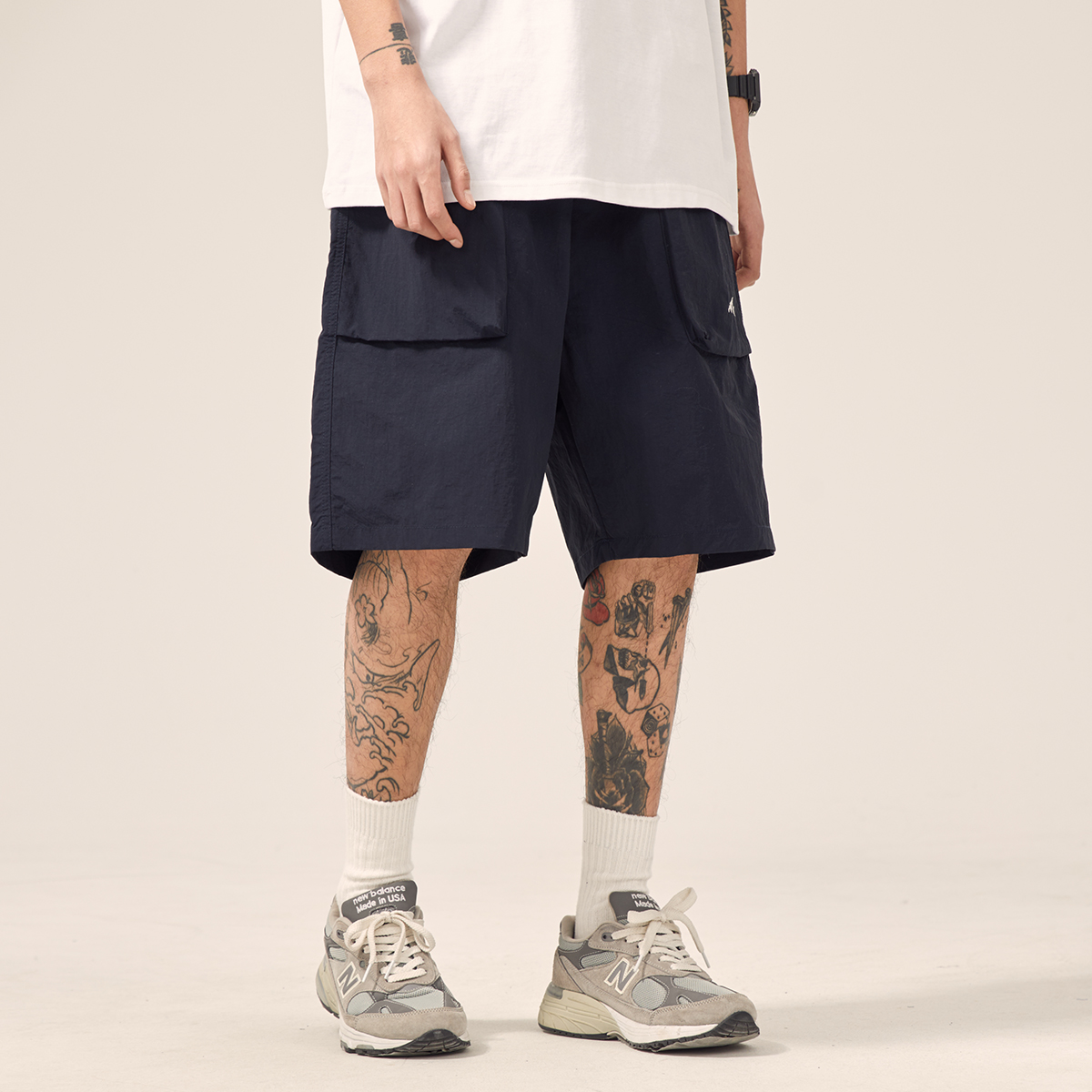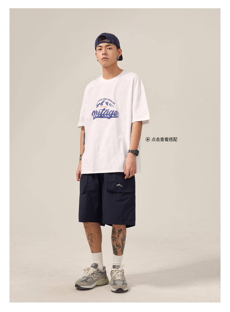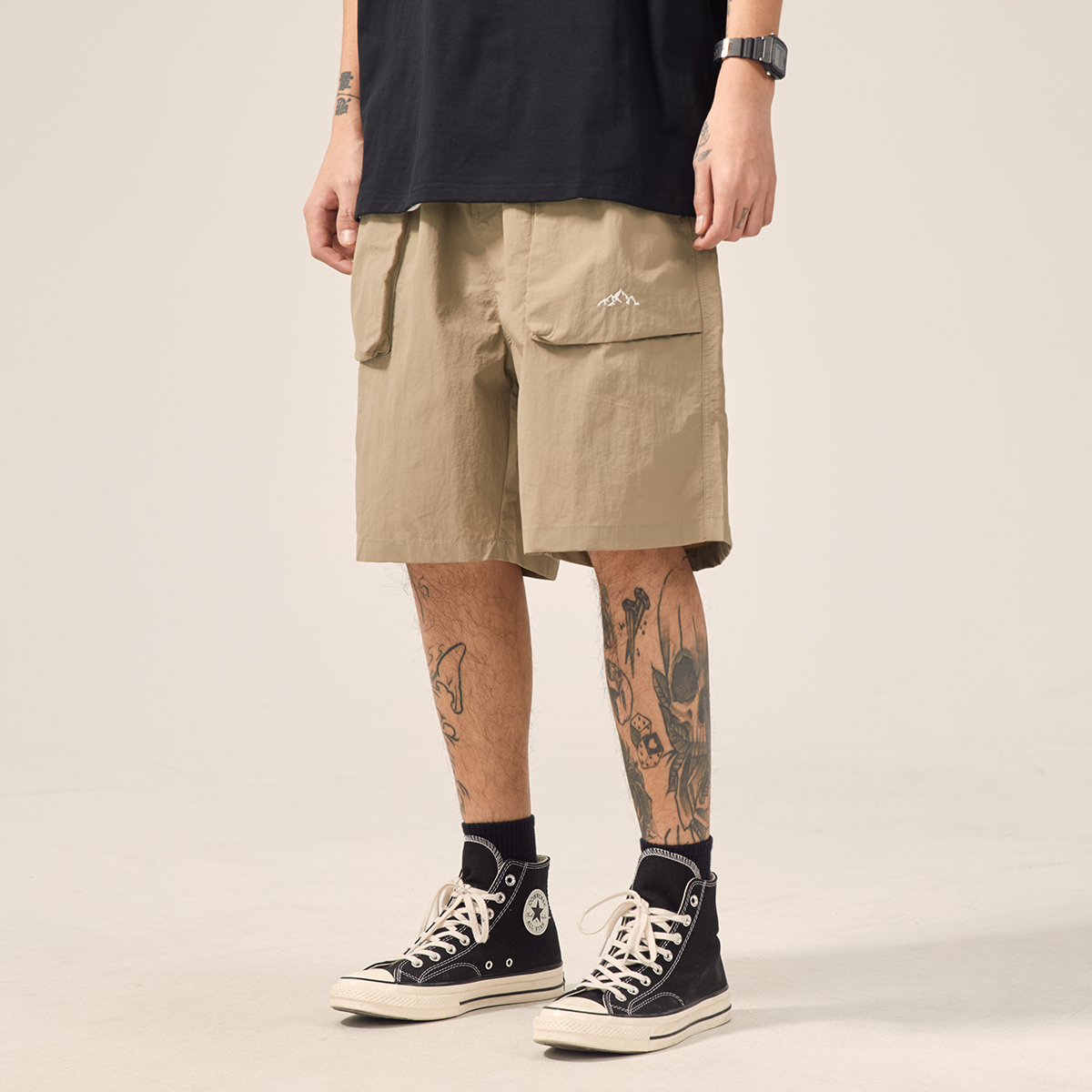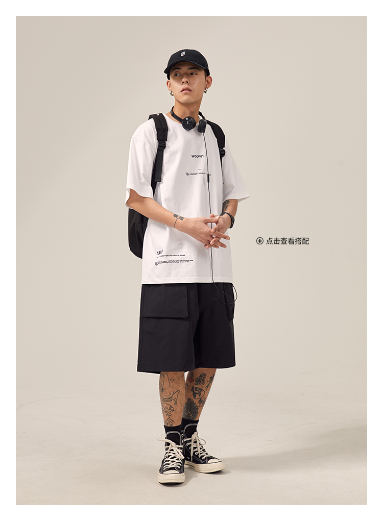 男道日系夏季新款小山峯刺繡工裝短褲男薄款速乾五分休閒運動五分褲