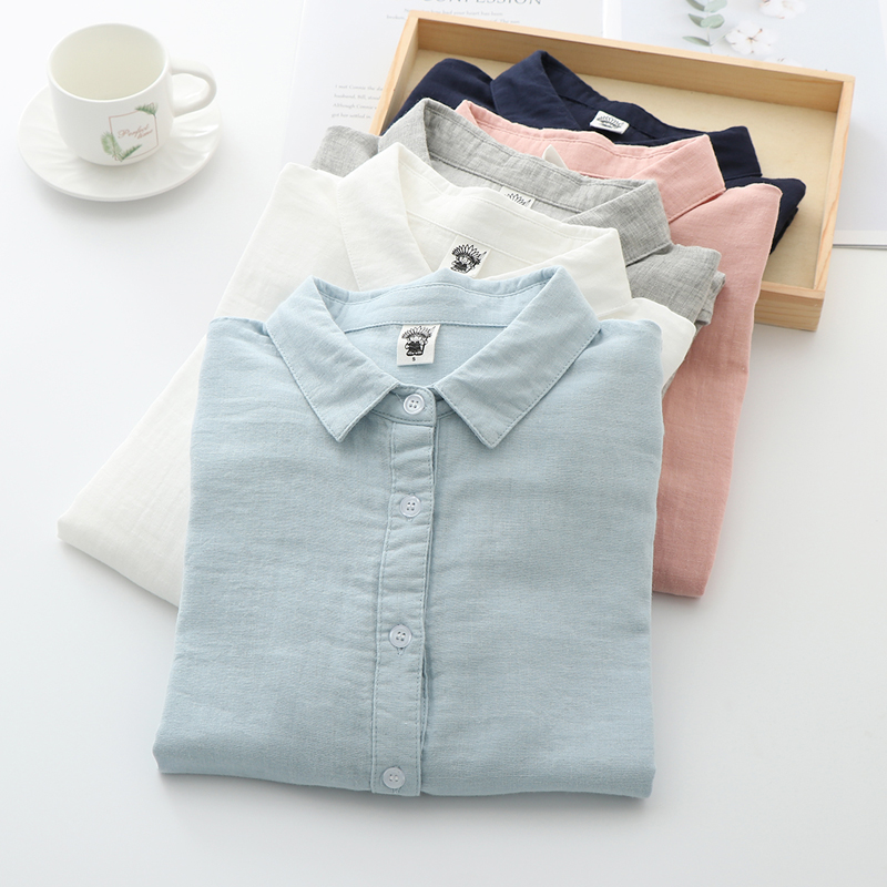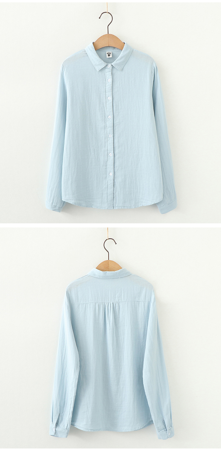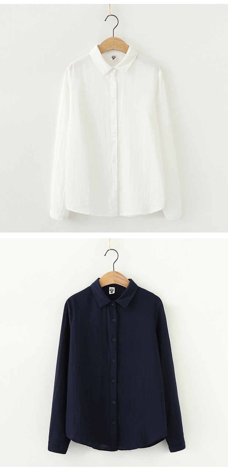 雙層棉紗襯衫女長袖寬鬆2023秋裝韓版文藝百搭純棉女士柔軟襯衫