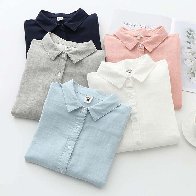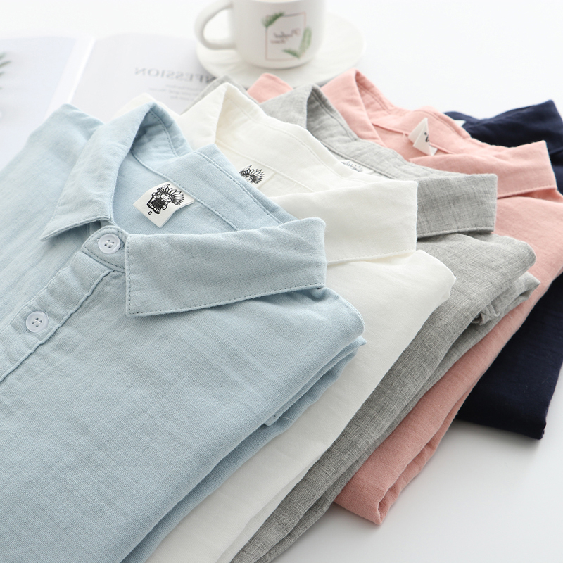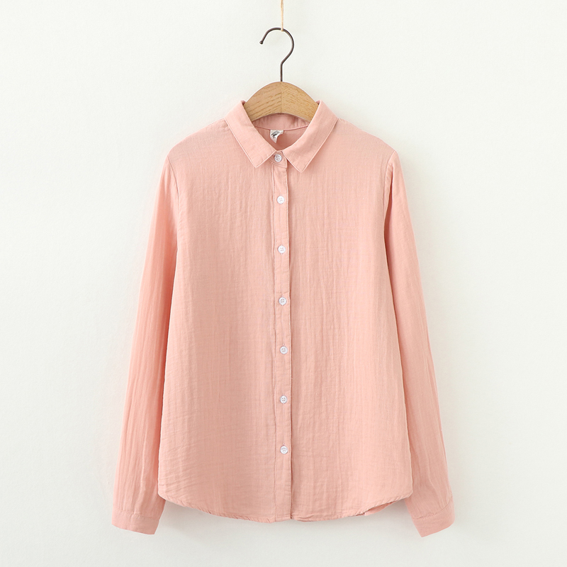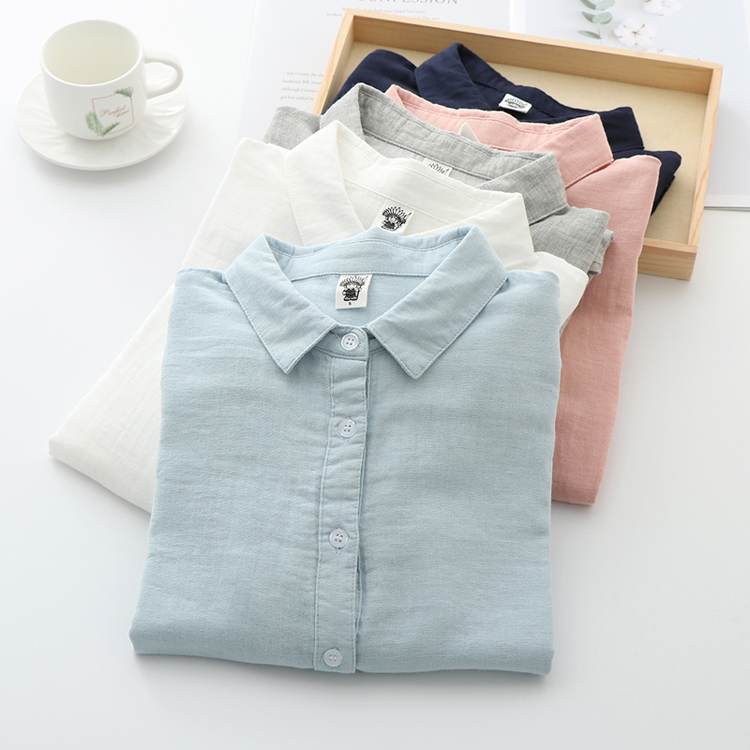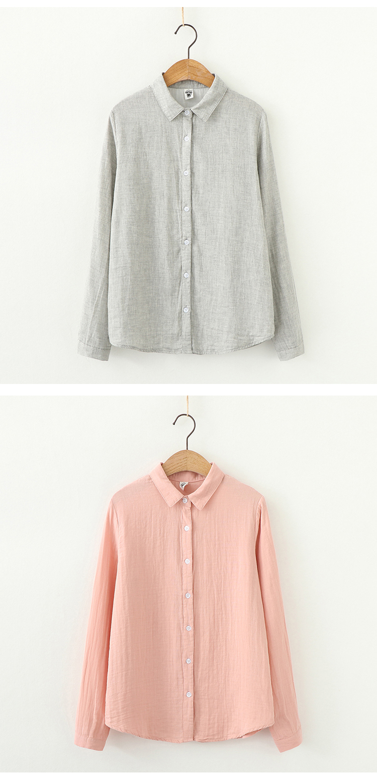 雙層棉紗襯衫女長袖寬鬆2023秋裝韓版文藝百搭純棉女士柔軟襯衫