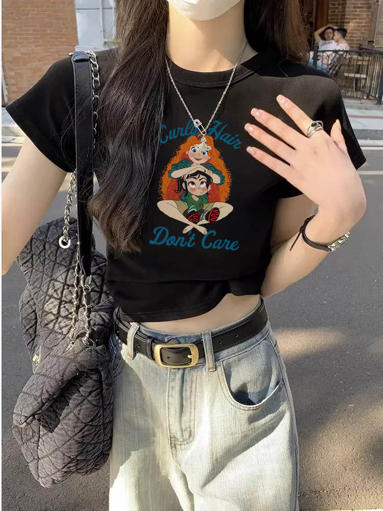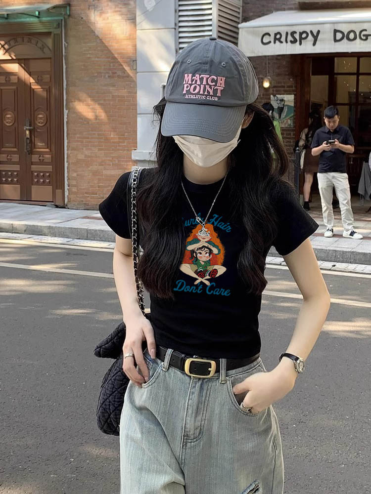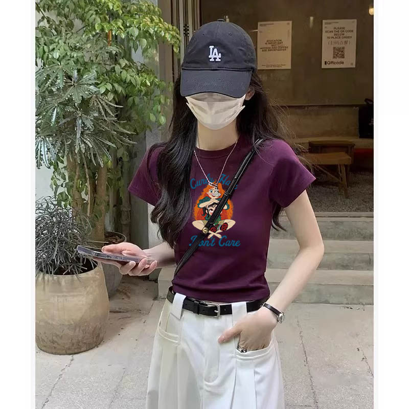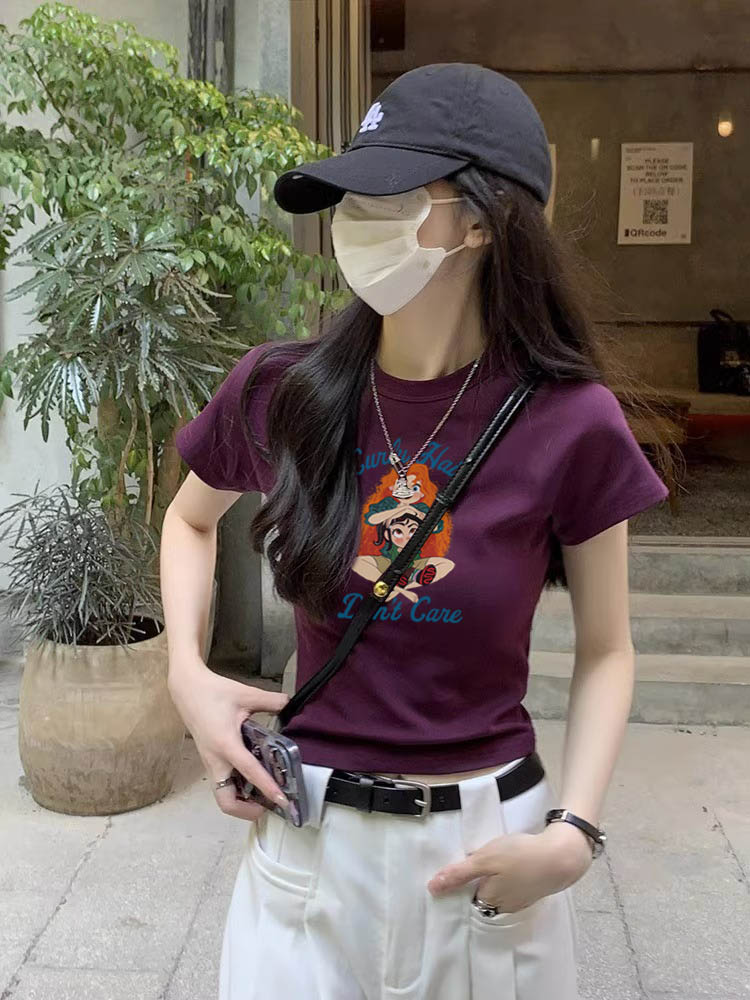 2023新款別致漂亮短款辣妹上衣設計感小眾女夏季短袖正肩紫色T恤
