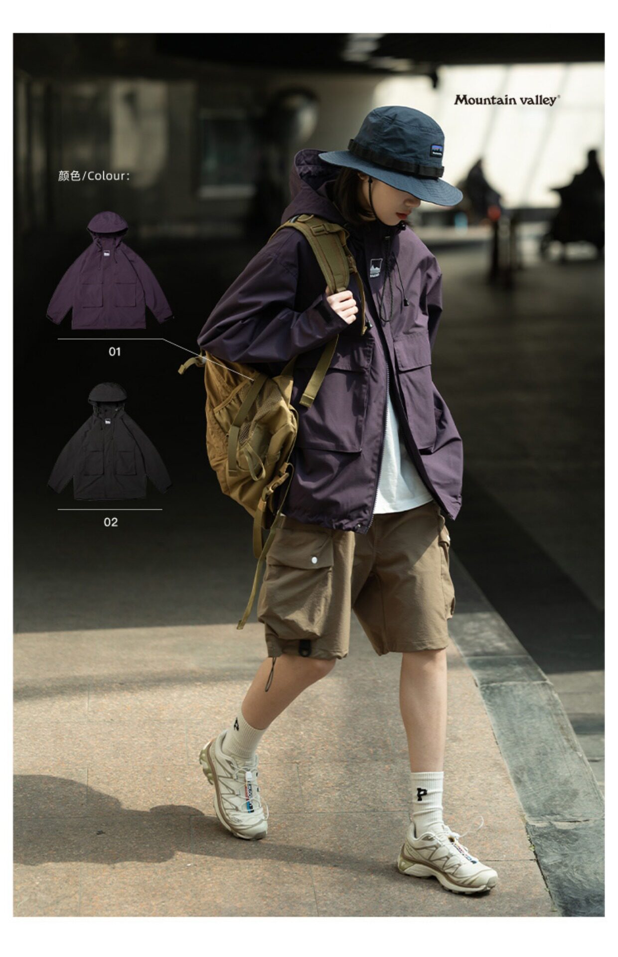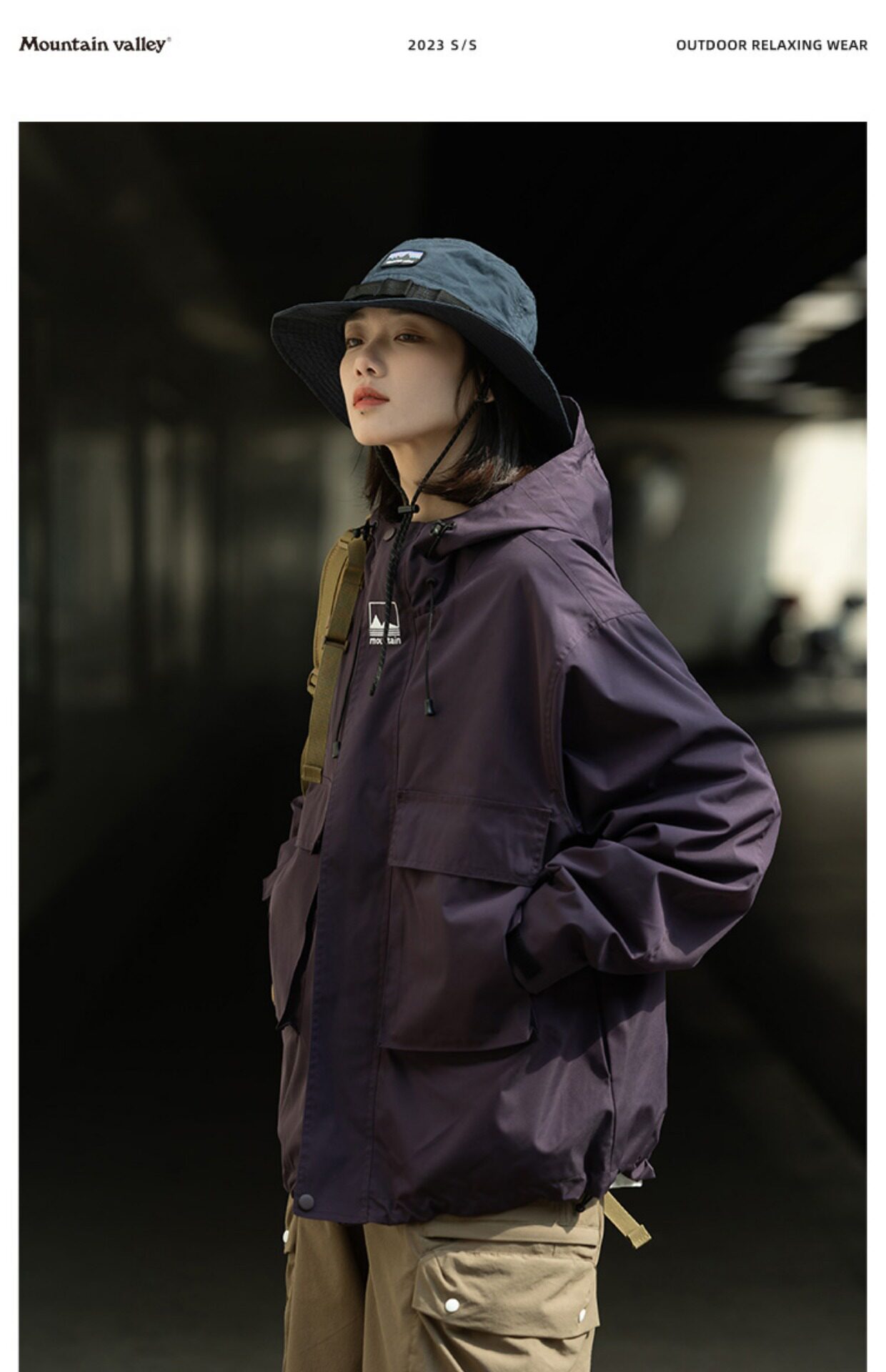 Mountain valley23SS戶外山系刺繡防潑水連帽衝鋒衣夾克外套男女