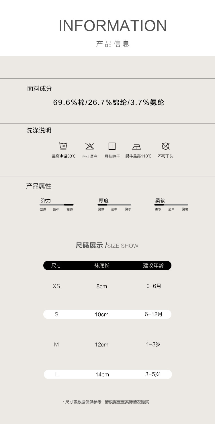 童袜尺码 XS码0-6个月,S码6-12个月,M码1-3岁,L码3-5岁