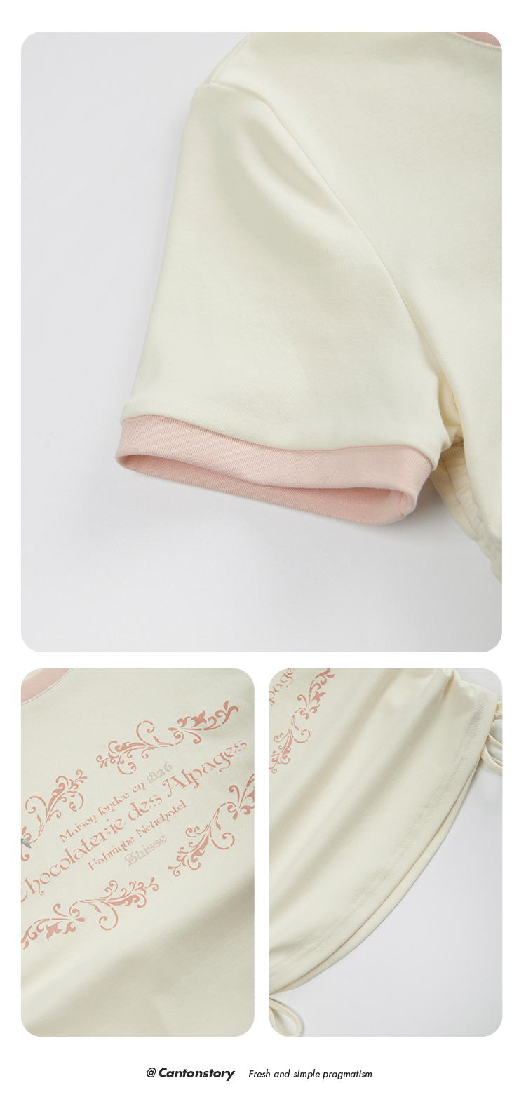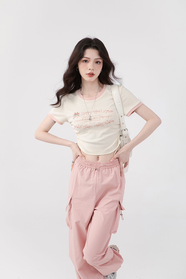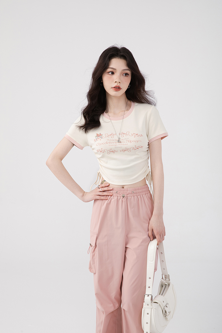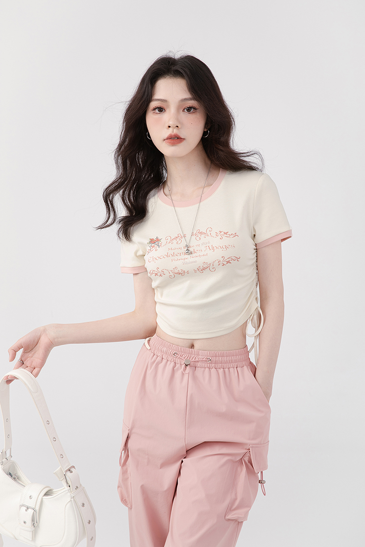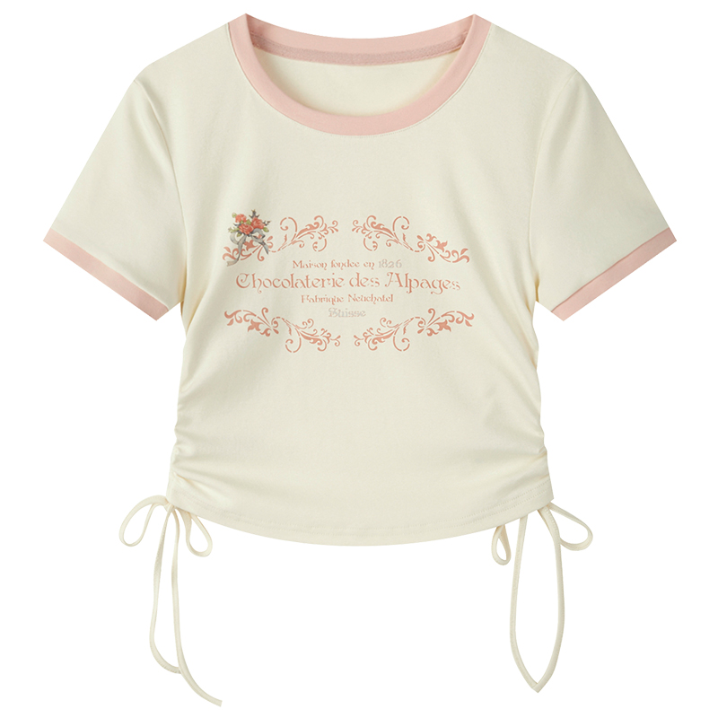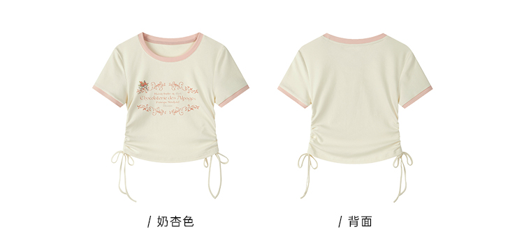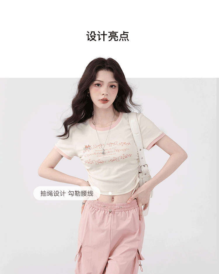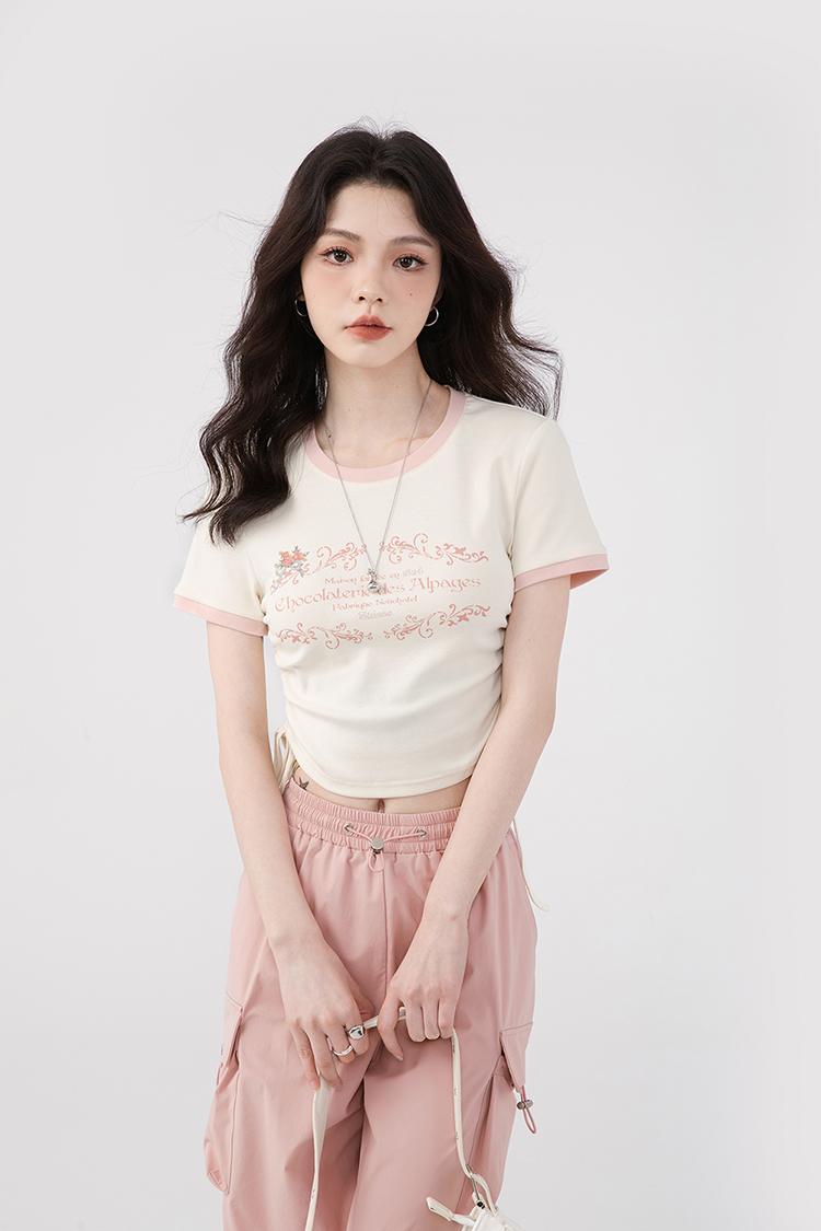 羊城故事圓領正肩短袖t恤女美式甜辣純欲小眾設計感短款顯瘦上衣