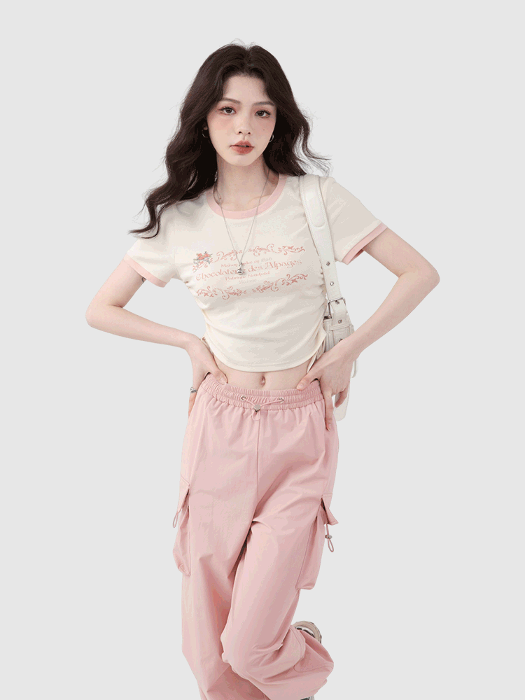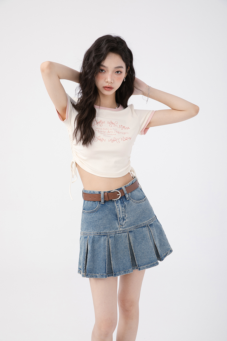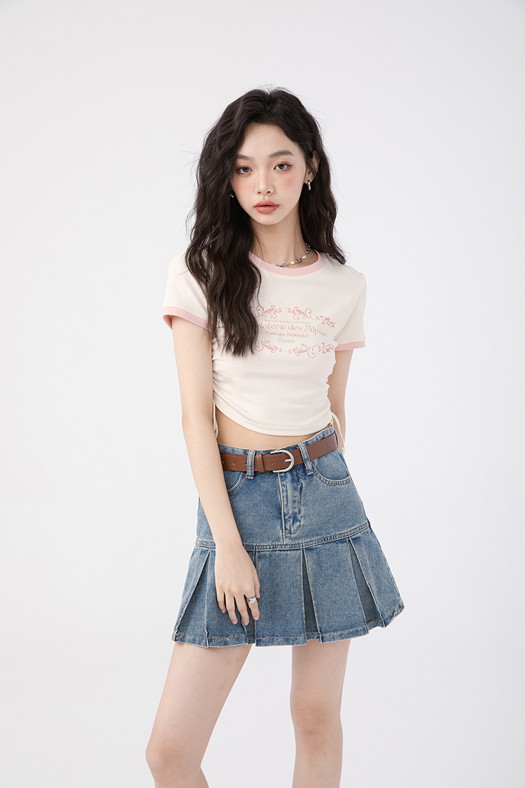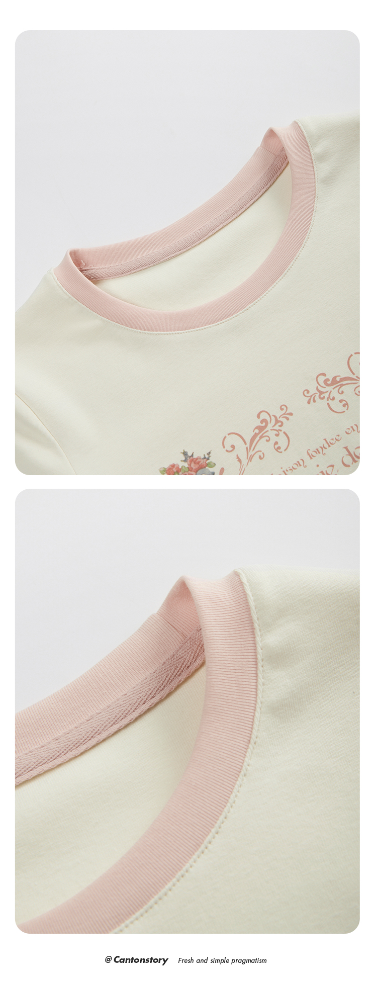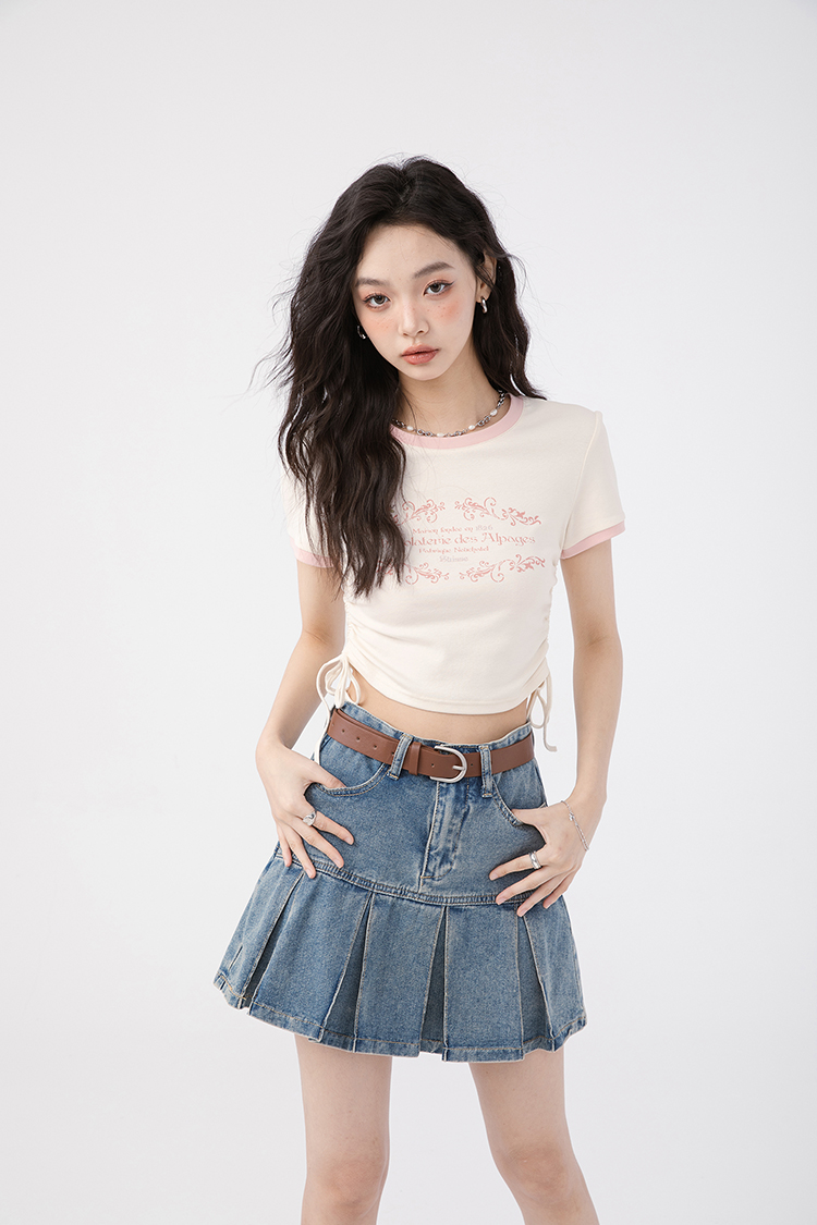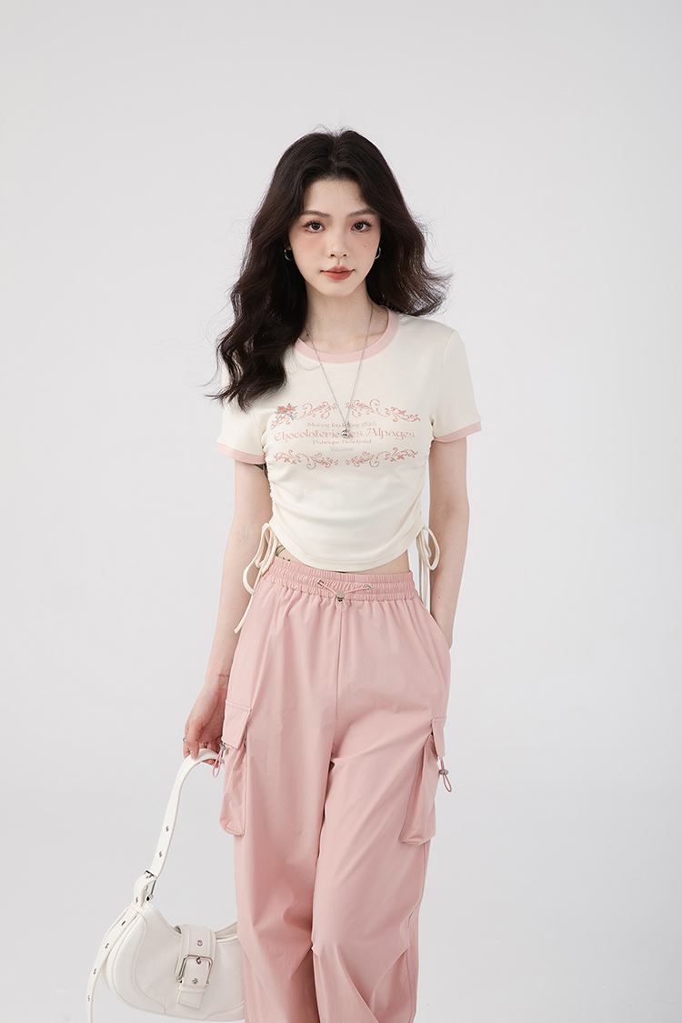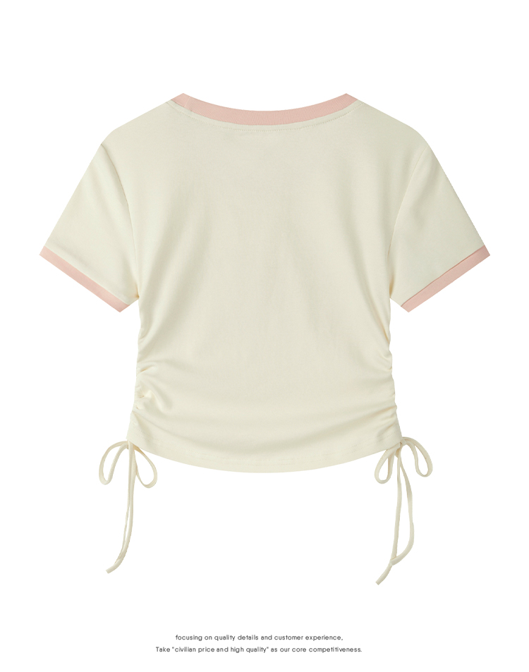 羊城故事圓領正肩短袖t恤女美式甜辣純欲小眾設計感短款顯瘦上衣