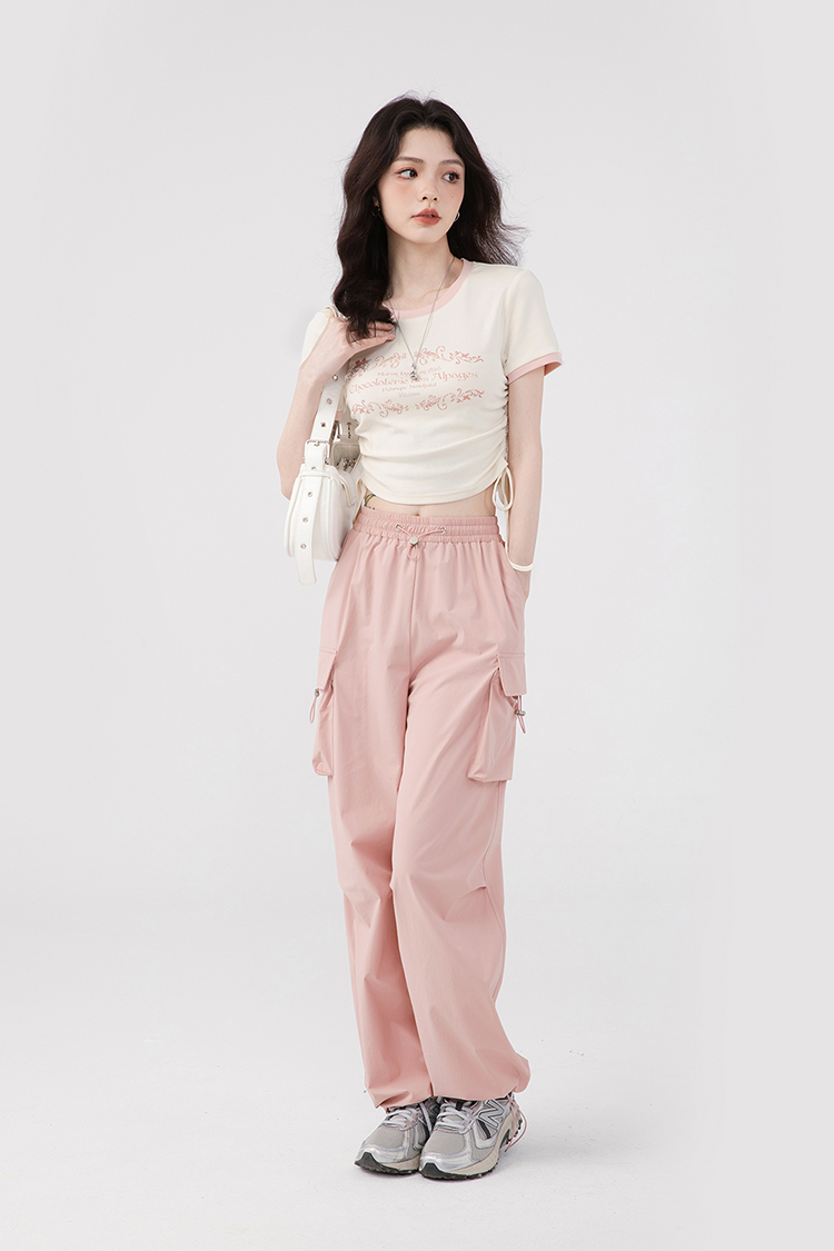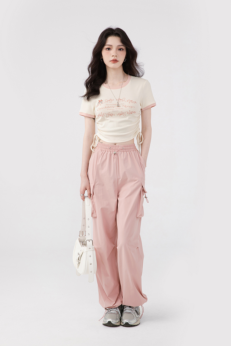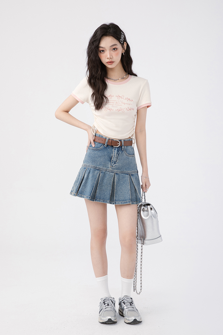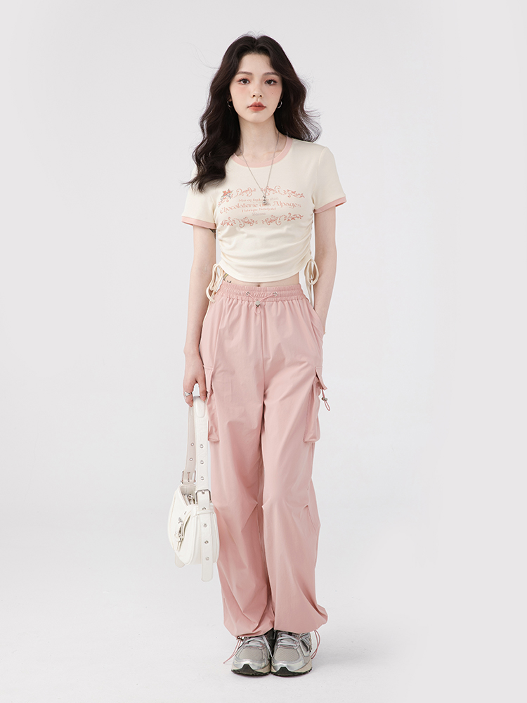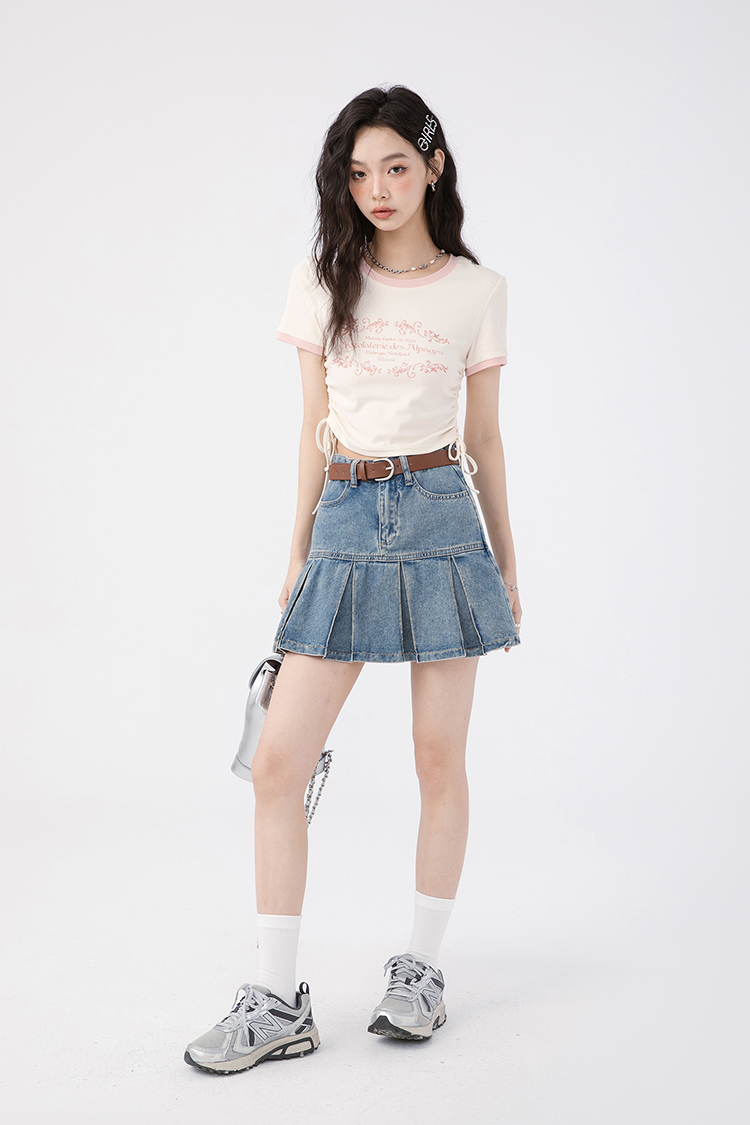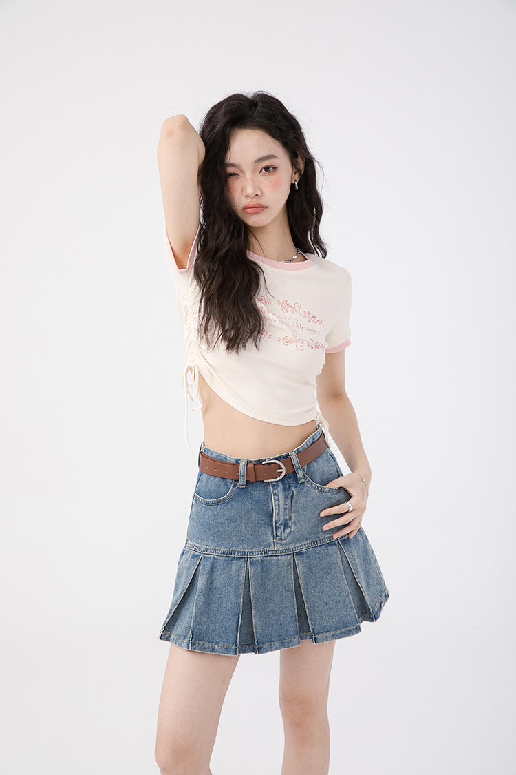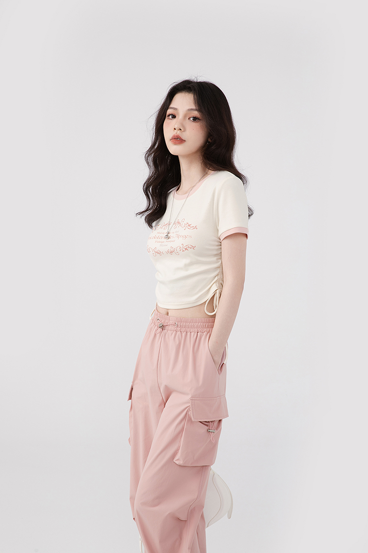 羊城故事圓領正肩短袖t恤女美式甜辣純欲小眾設計感短款顯瘦上衣
