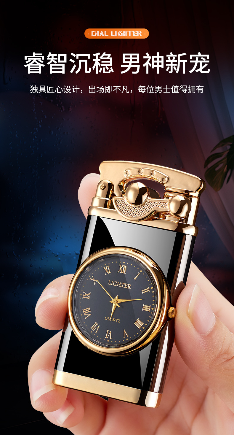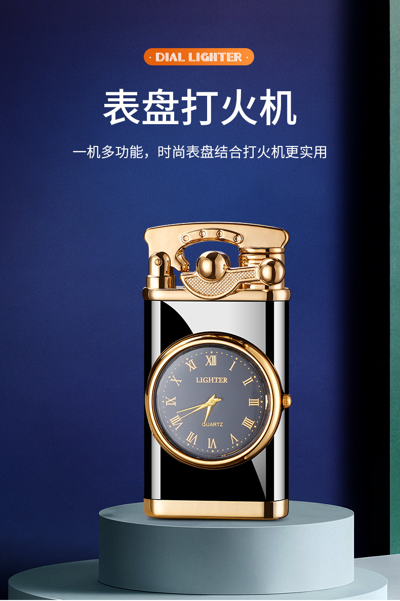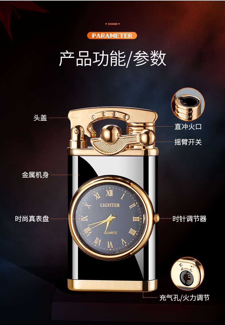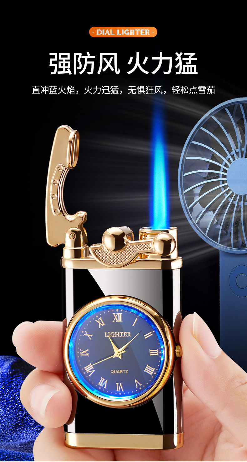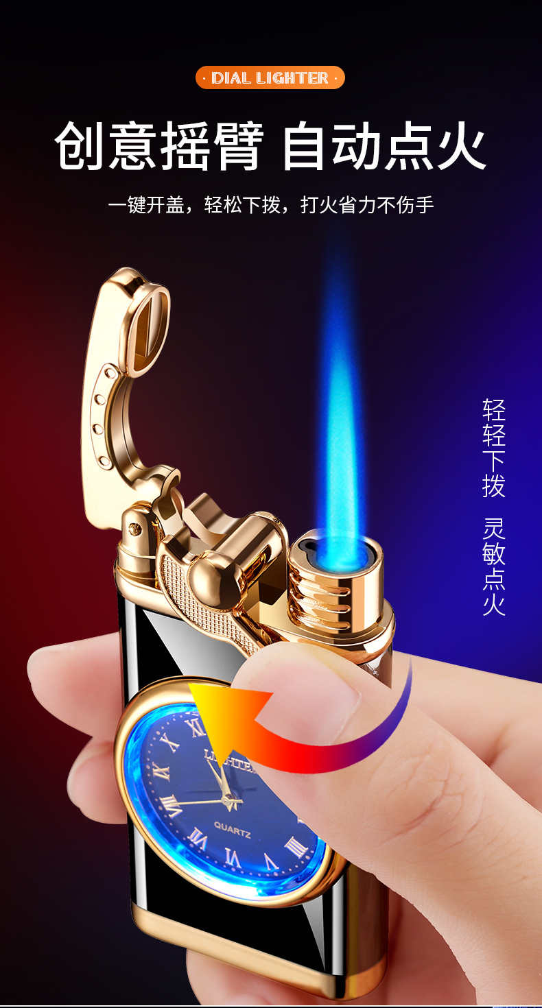 HF606摇臂直冲蓝焰创意真表盘充气打火机广告LOGO制作礼品打火机
