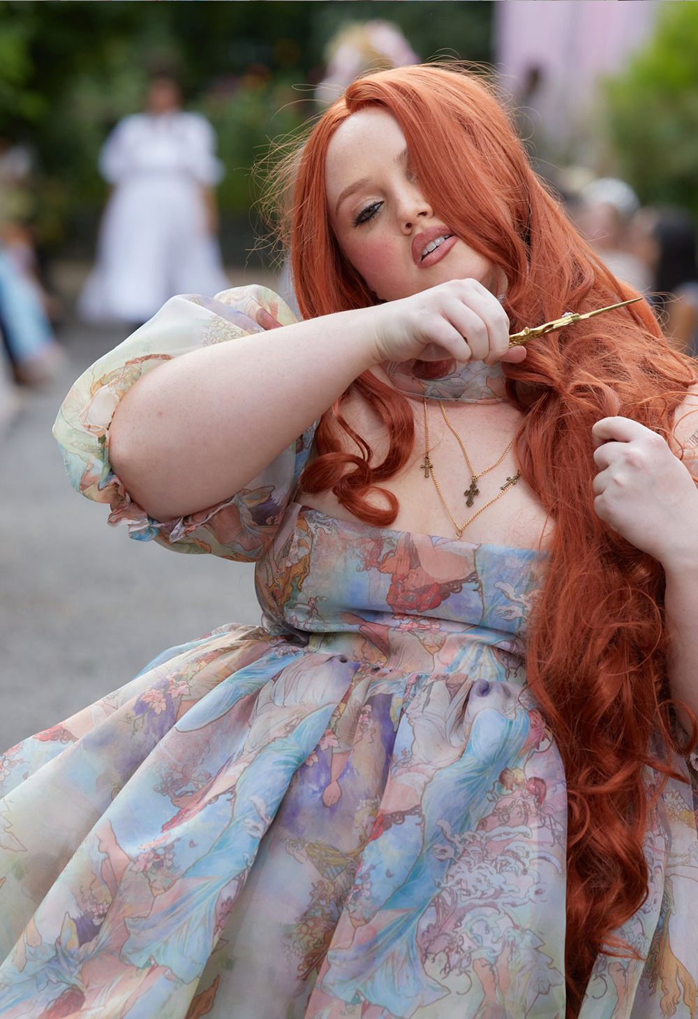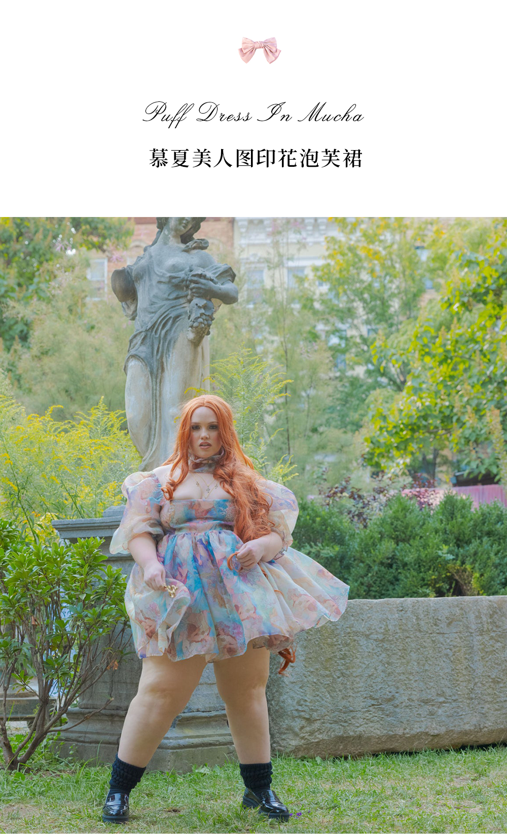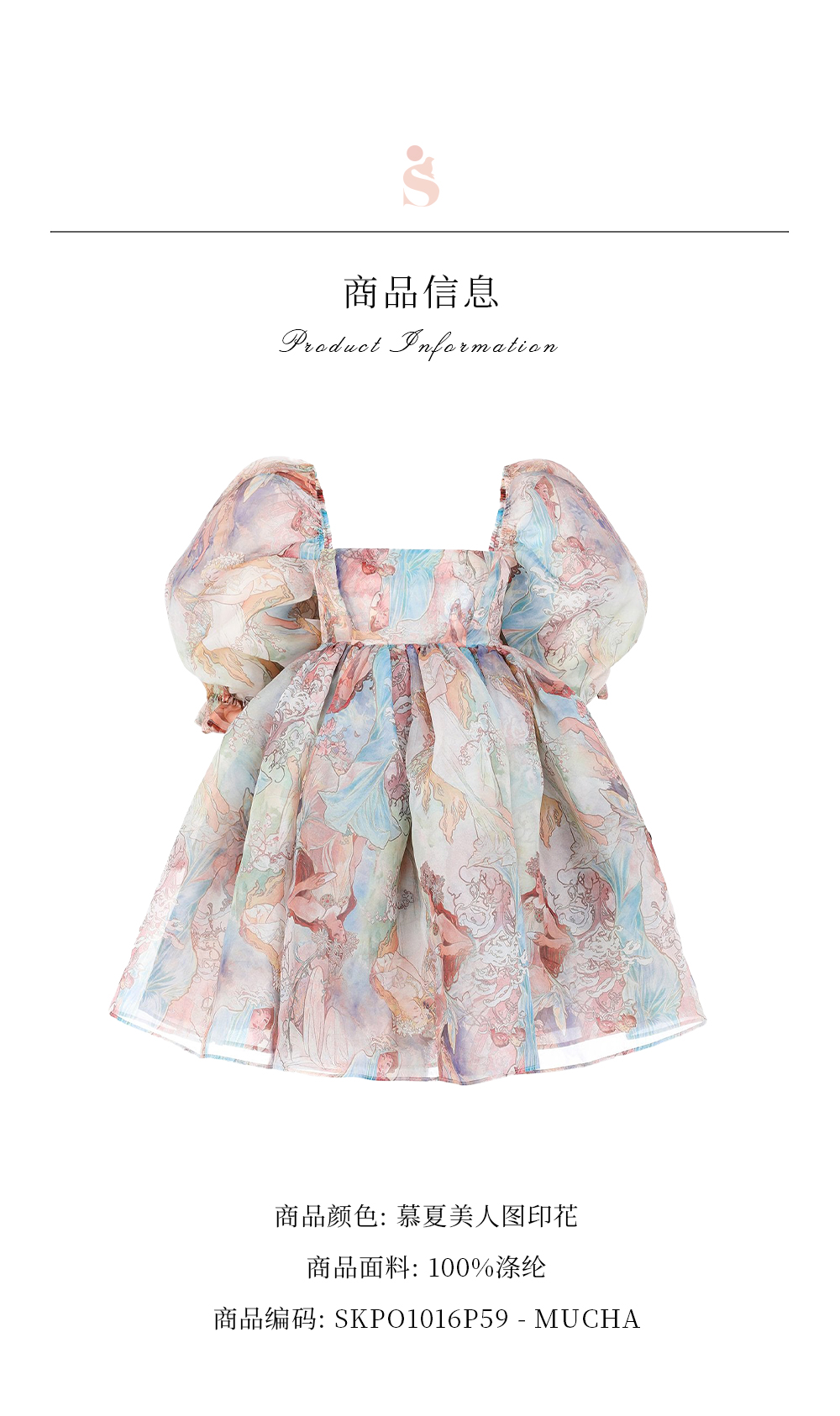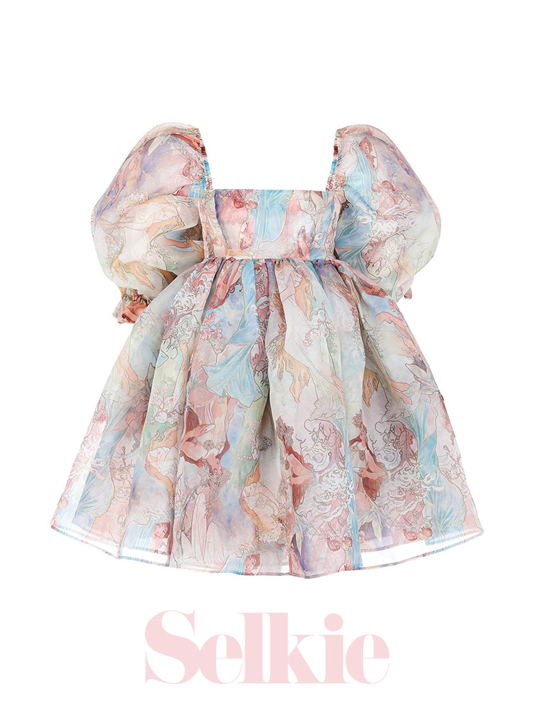Selkie慕夏美人印花2022新款洋裝氣質名媛風法式碎花經典泡芙裙